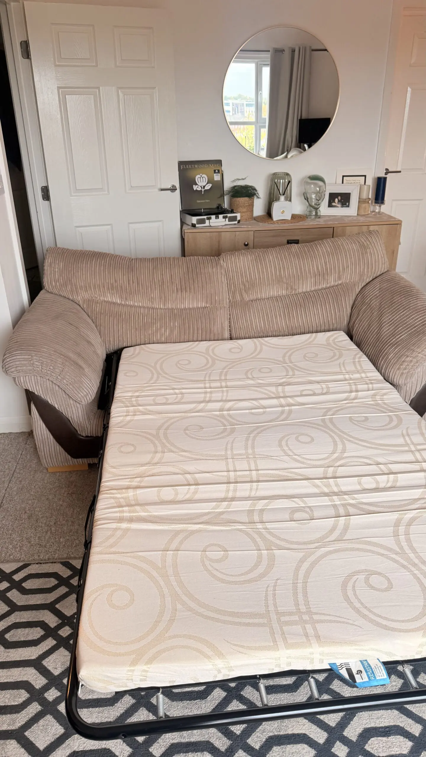 DFS sofa set bought brand new in 2022. Both in very good condition and sofa bed barely used. Incredibly comfortable and come with corduroy looking finish. Beige with leather accents. Original RRP £1367