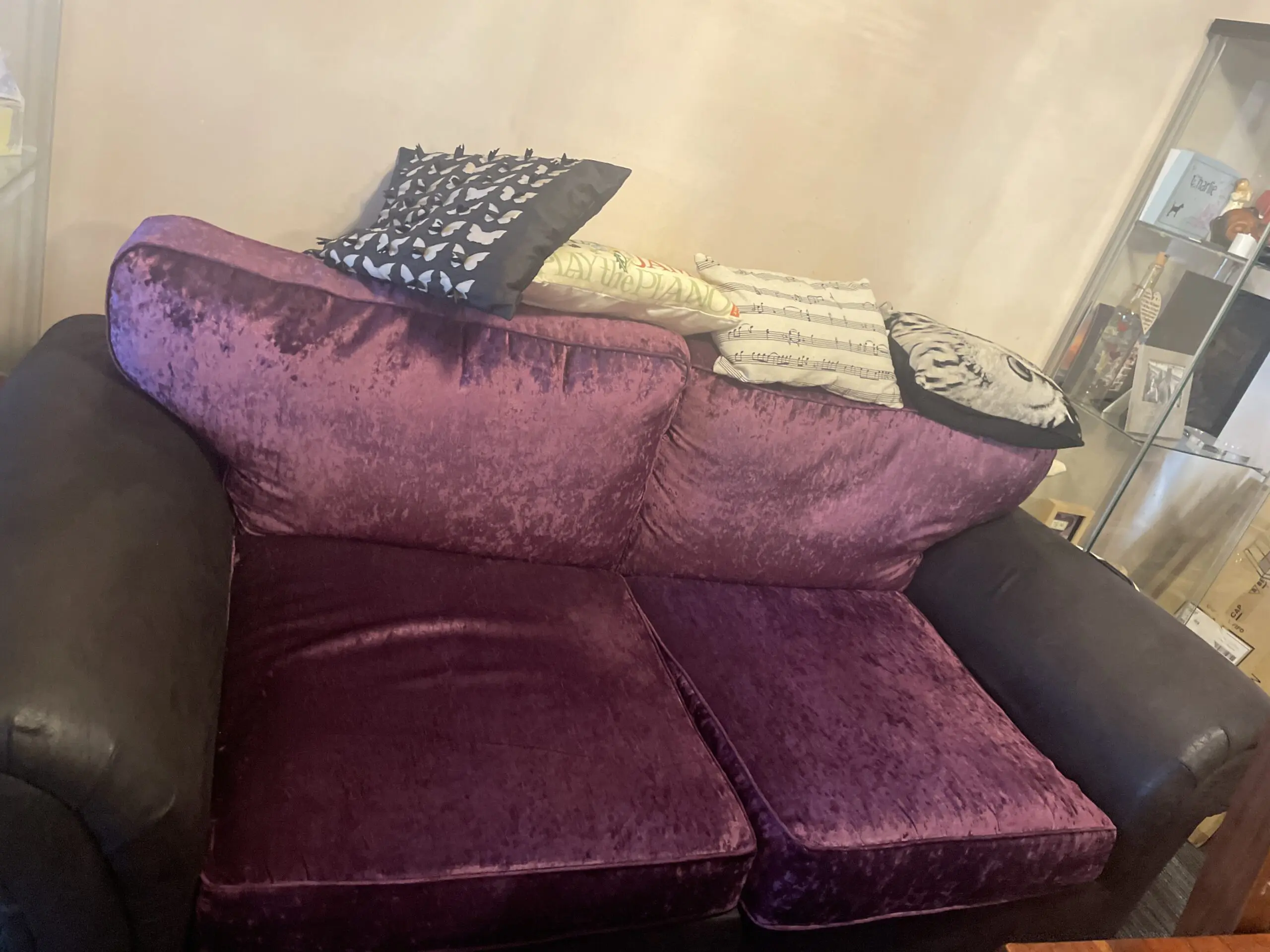 Both sofas are the same. 2 large 2 seaters but actually seat 3. Both have a metal frame underneath that pulls out as a sofa with a thin mattress. Sleeps 2 adults comfortably.