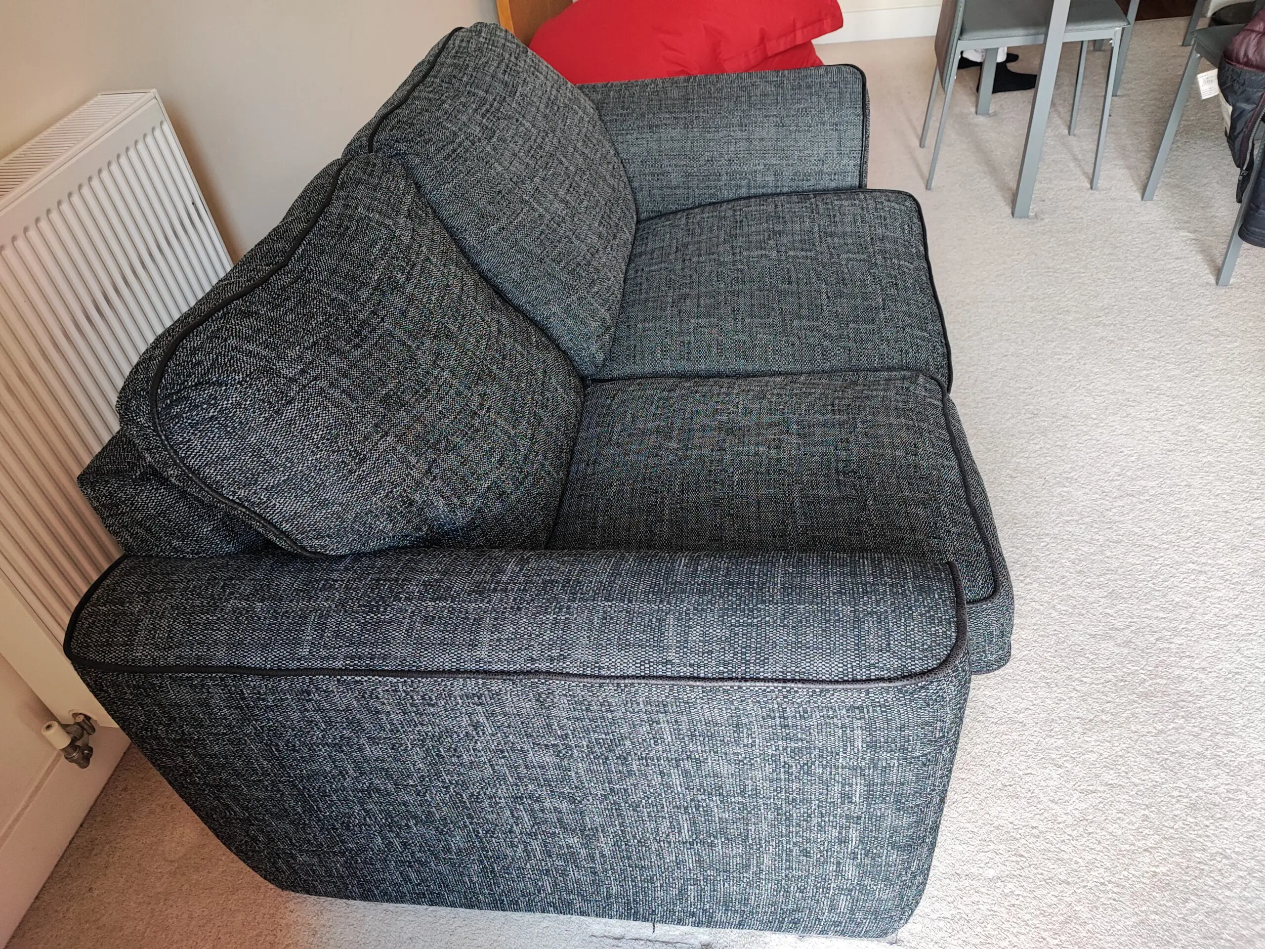 Good condition 2 seated sofa , no stains or marks , fabric still intact, not scratches, no holes.