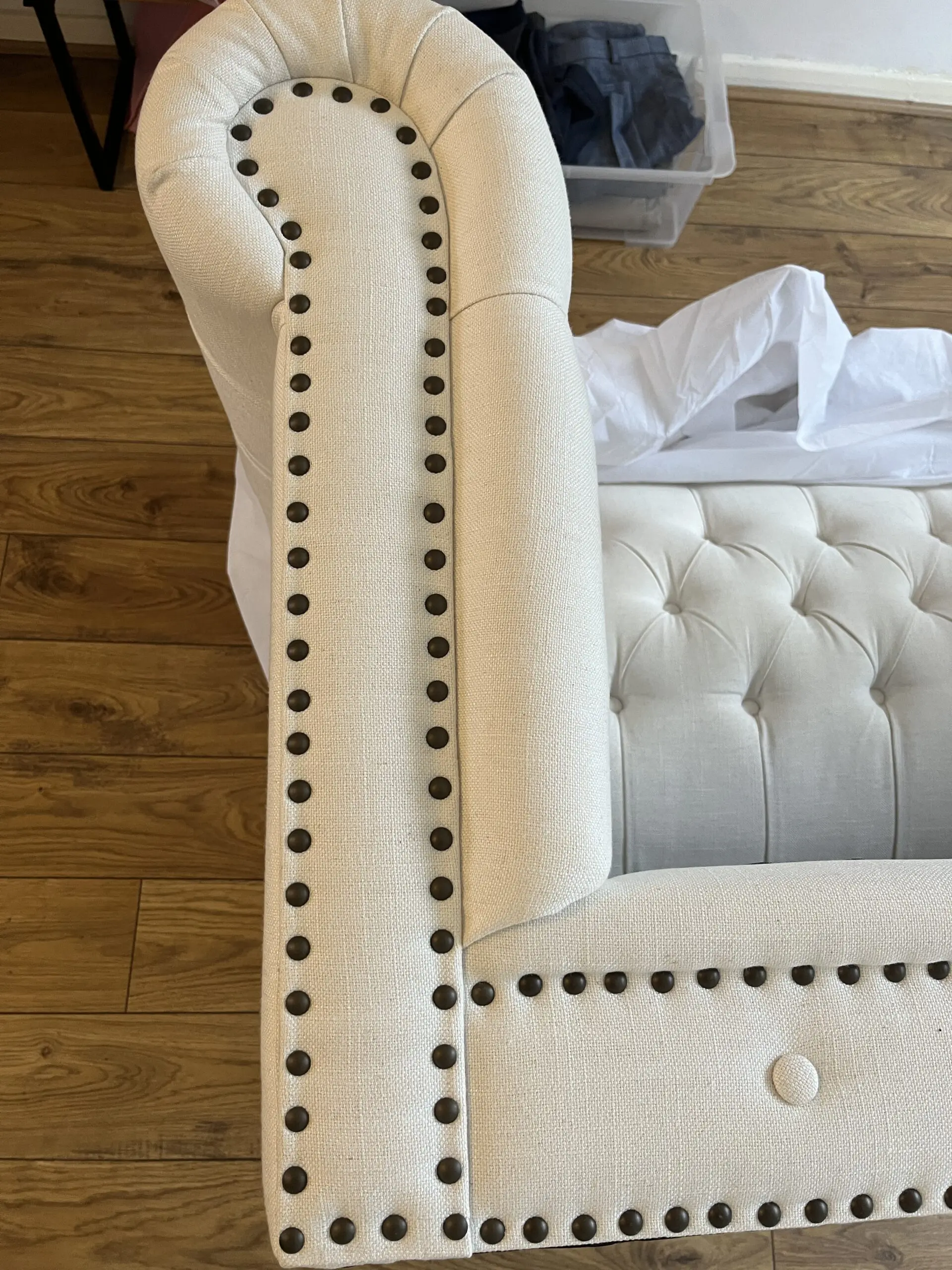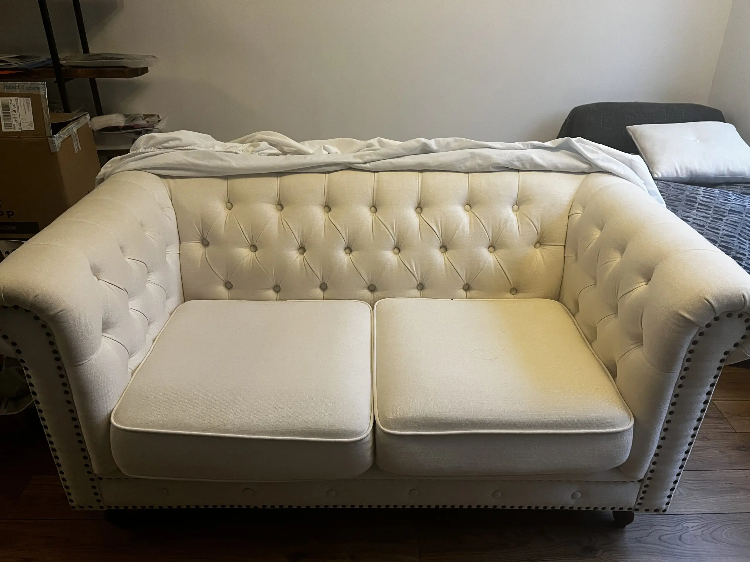 • Sofa is in excellent condition overall — just a few minor faint stains.