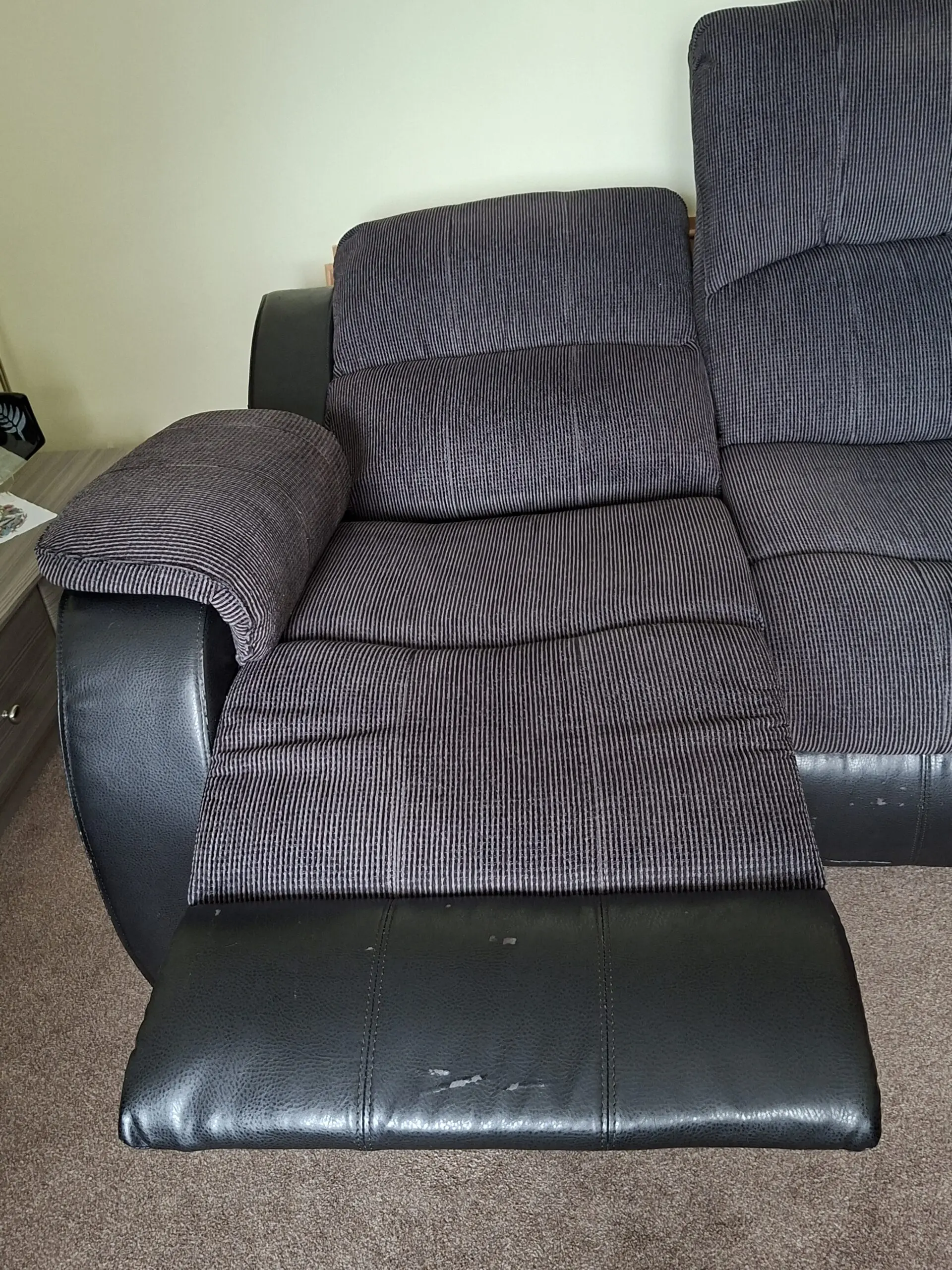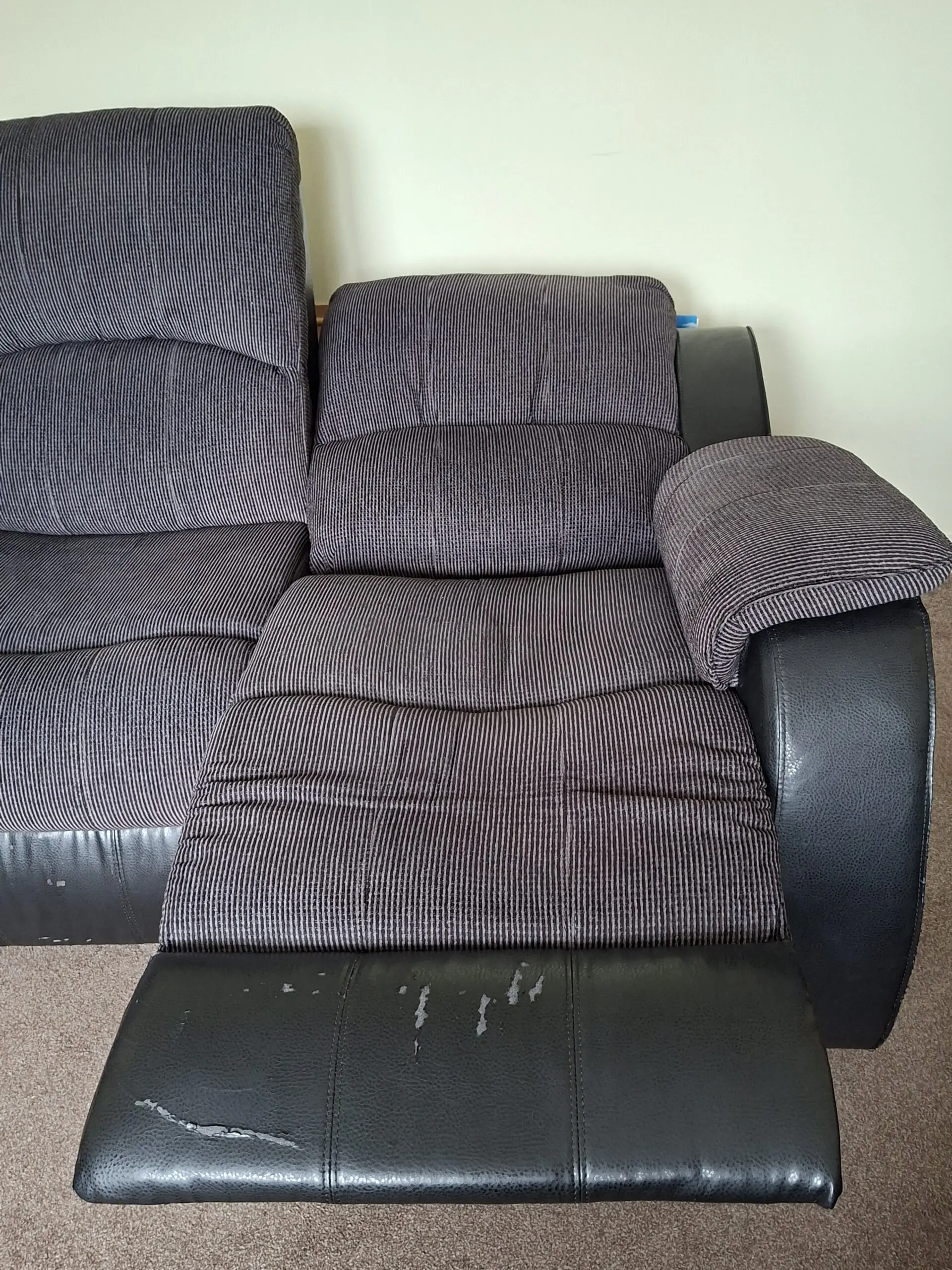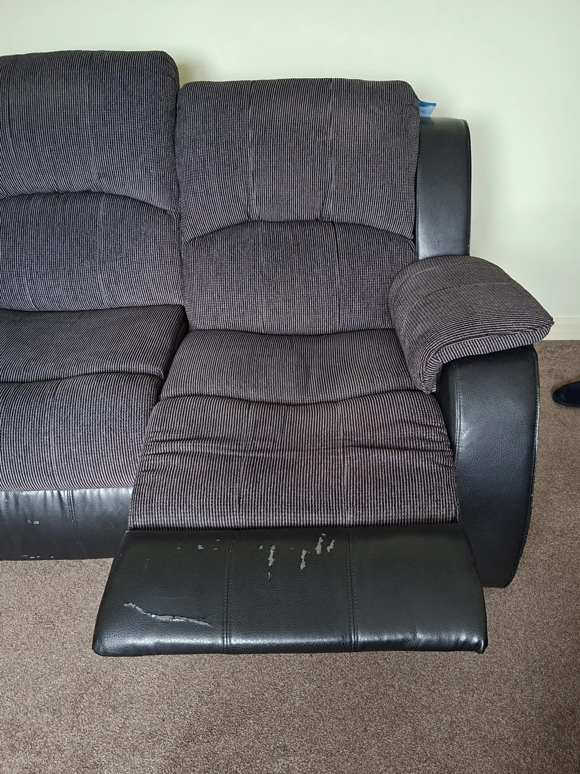 The ONLY thing “wrong” with it is slight wear on footrests/ front of sofa. See pictures. Otherwise in extremely good clean condition.
