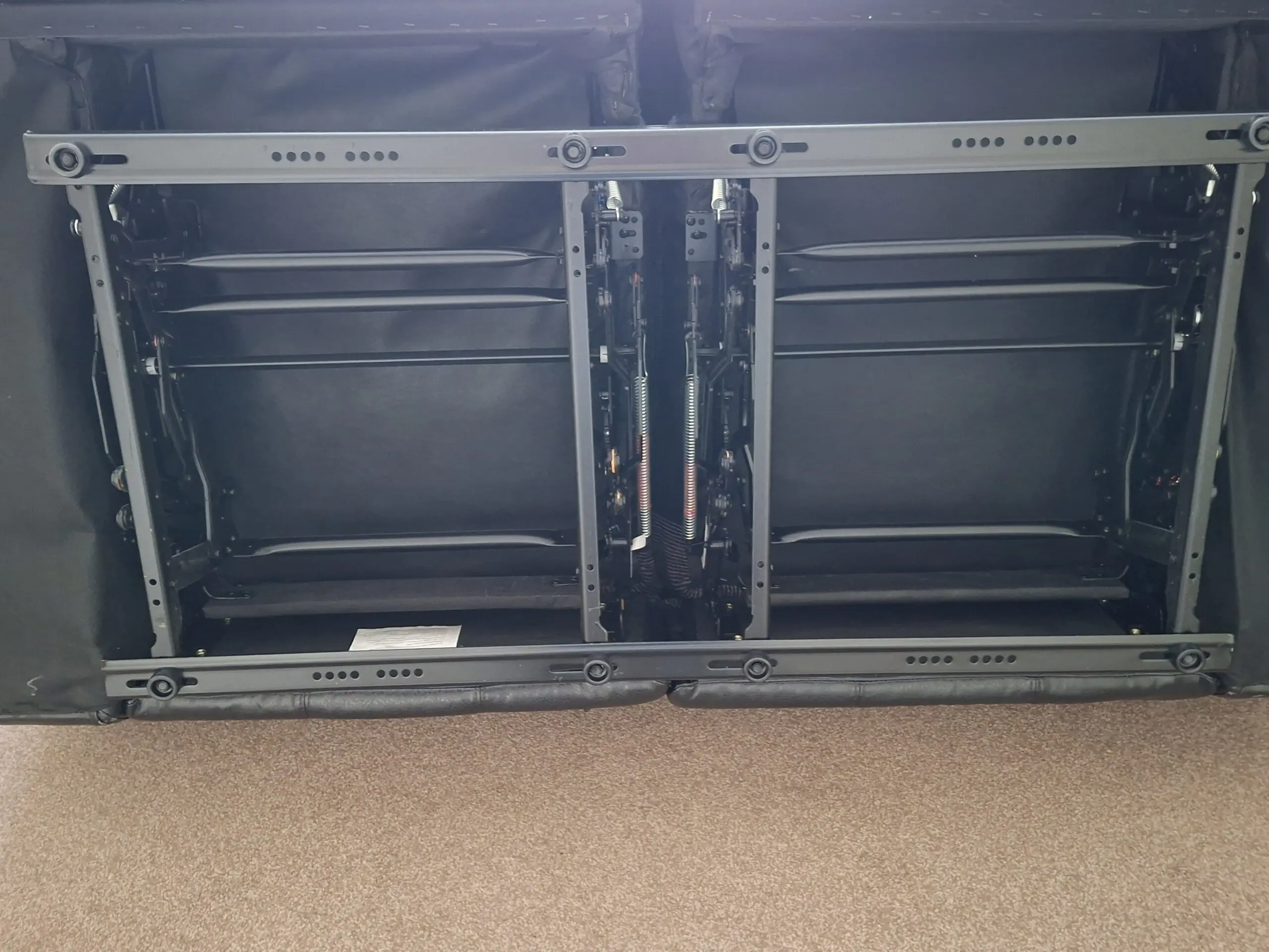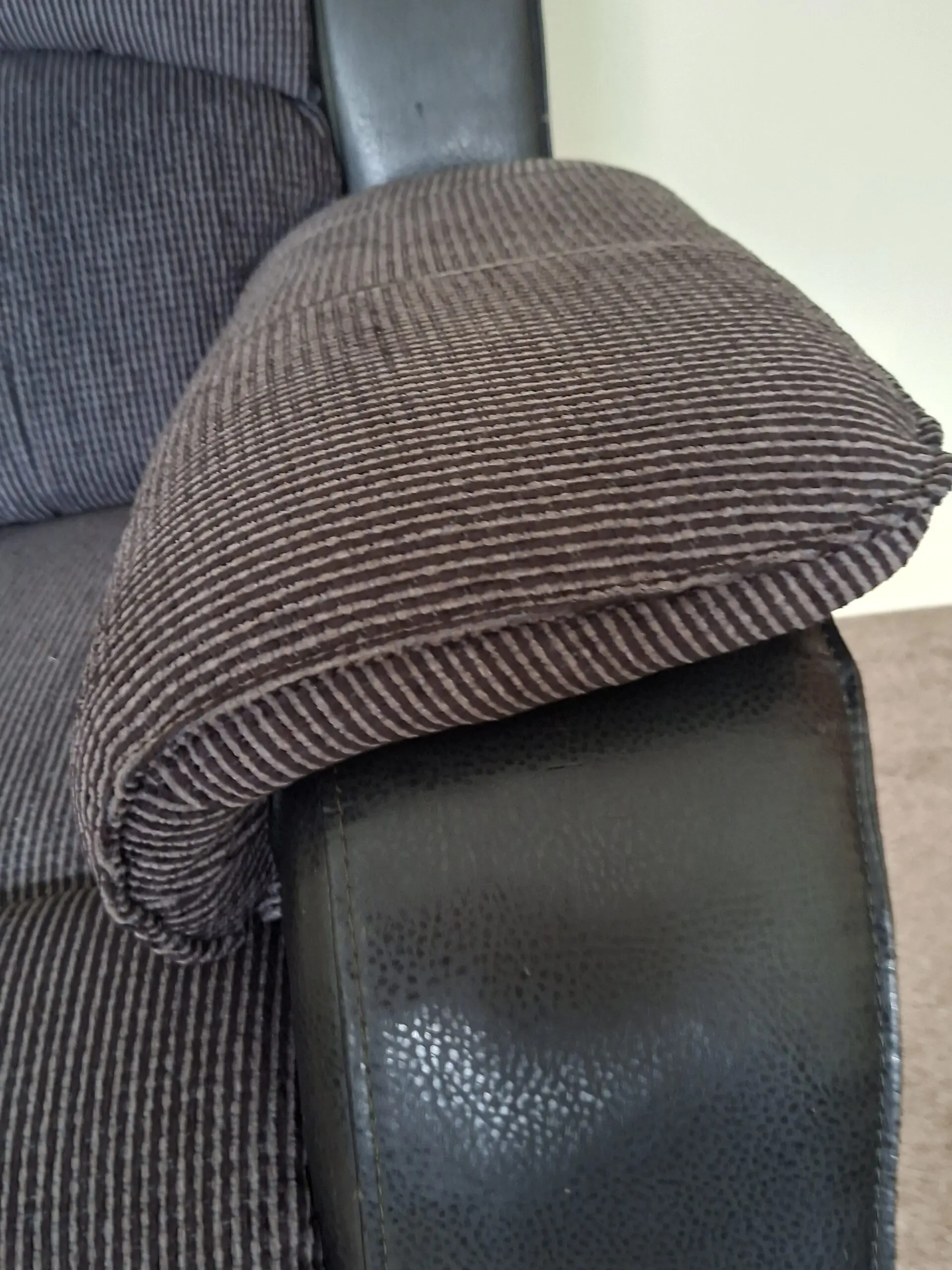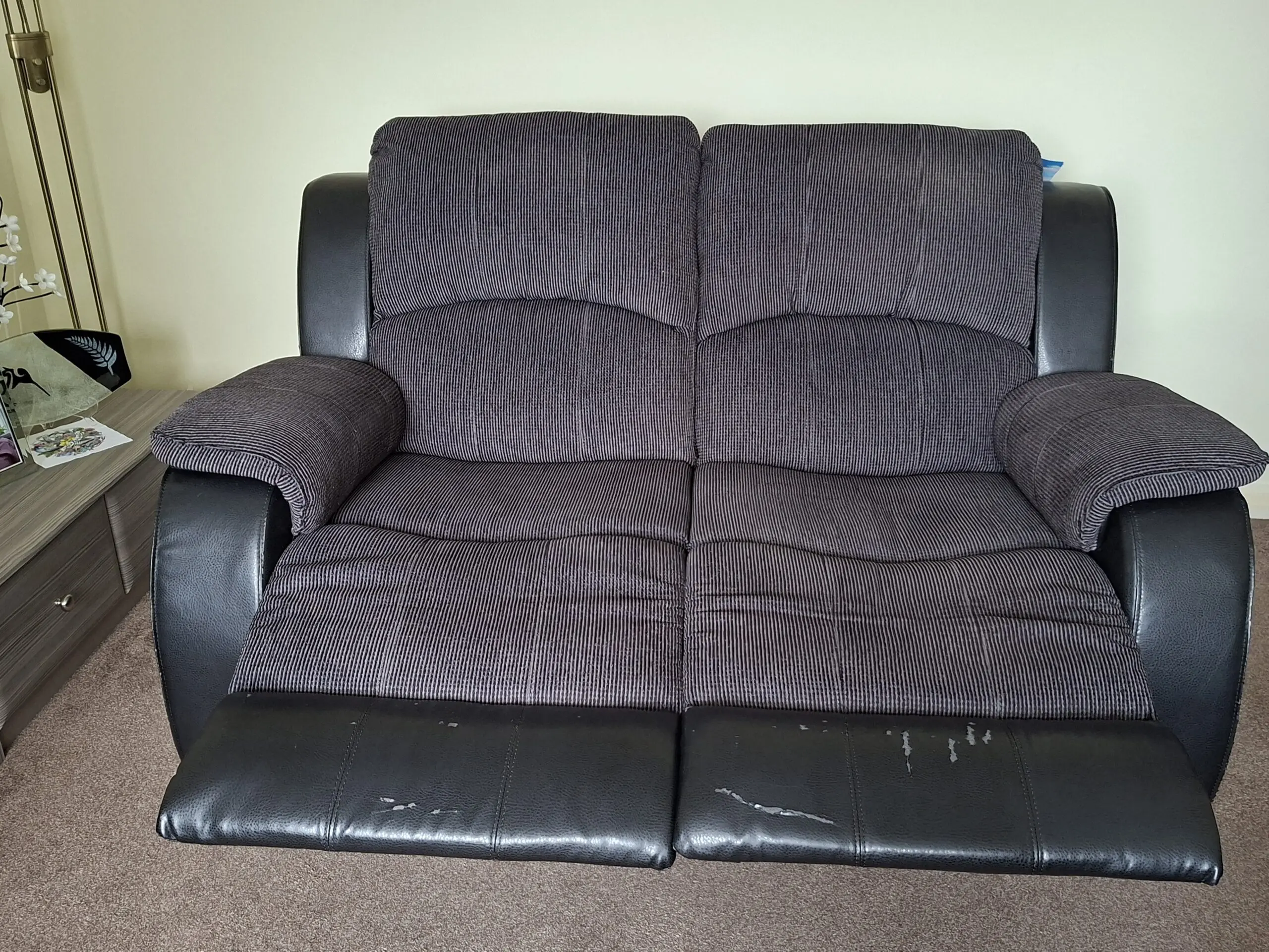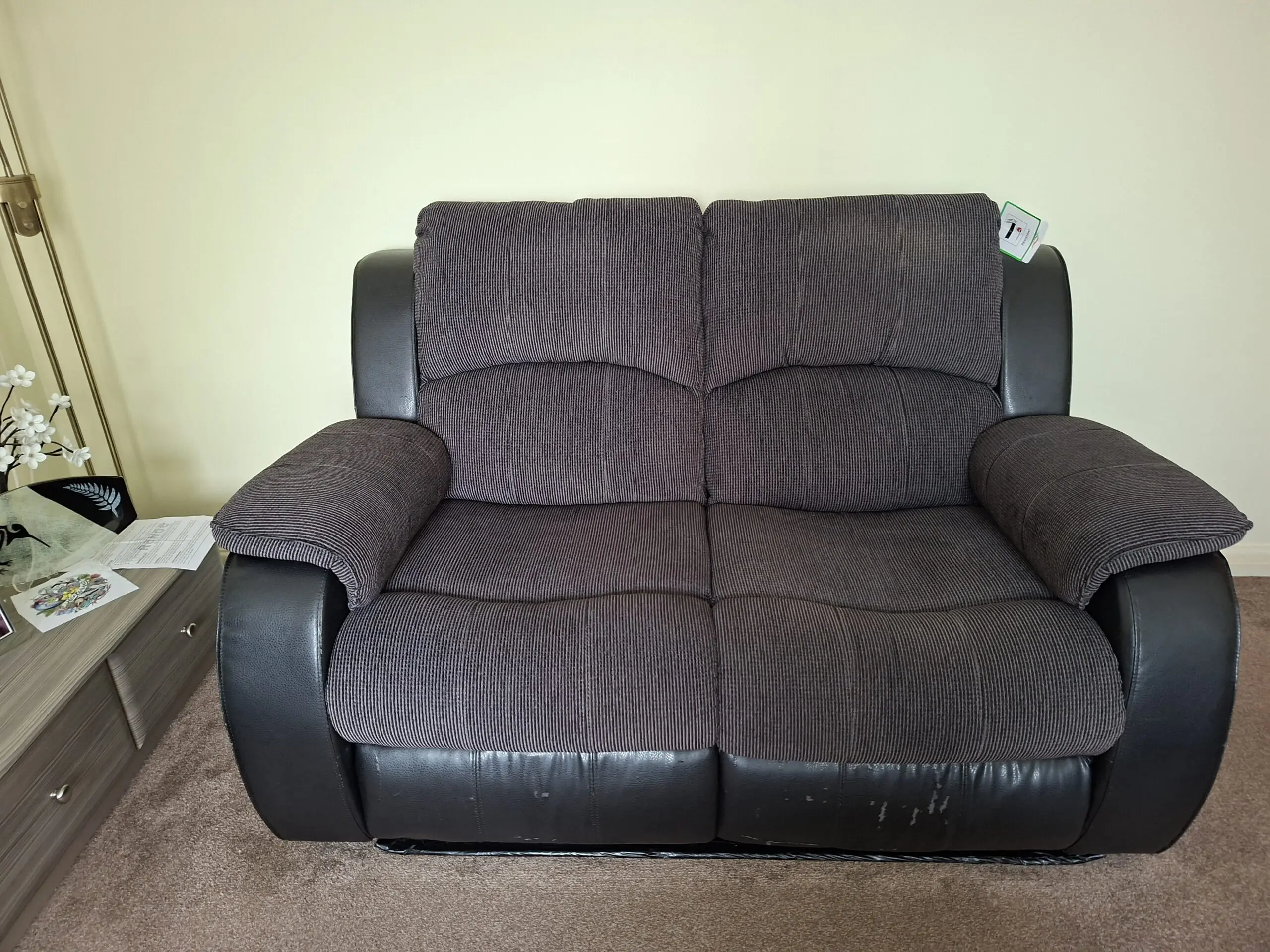2 seater double reclining sofa. High back and very comfortable. Each side reclines individually in 2 positions. Nice wide arms.