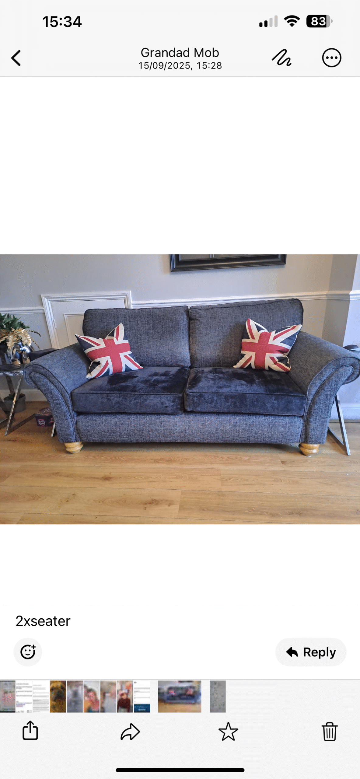 The sofa and chair I bought was as described by the seller - excellent condition. Delivery was quickly arranged and without any incidents. I was kept well informed of the delivery time on the day. Highly recommended.