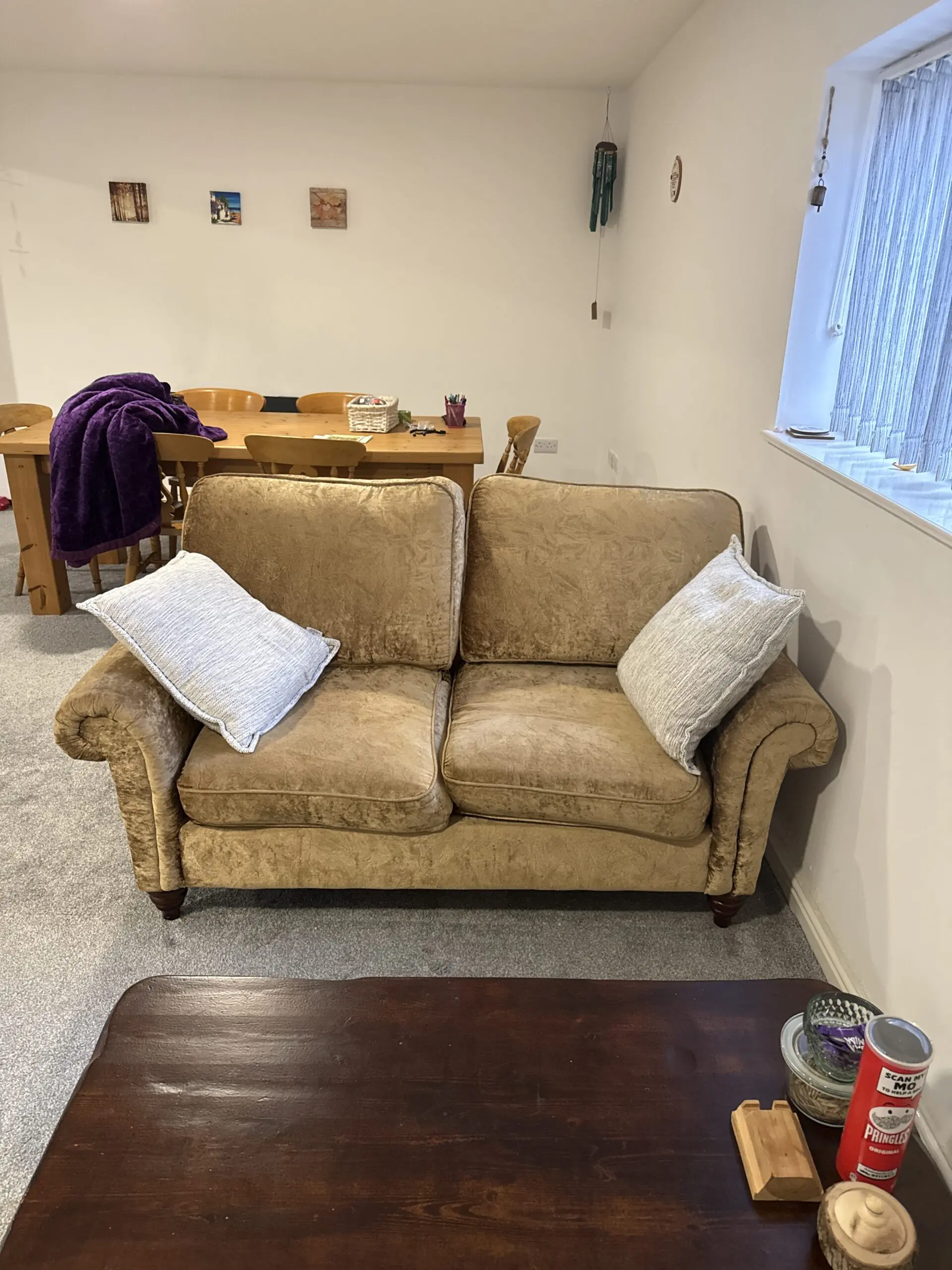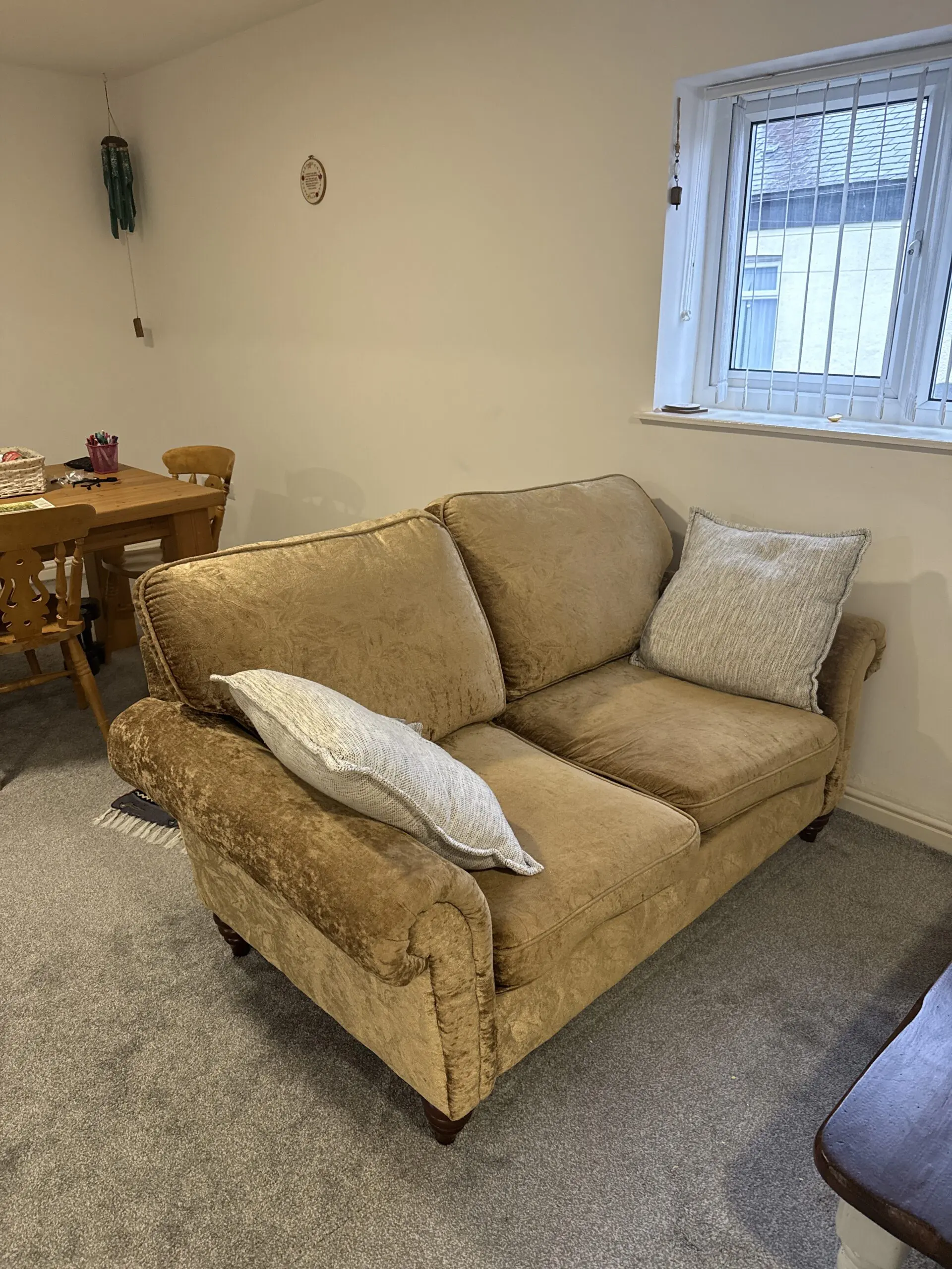 Beautiful elegant and very comfortable 2 seater sofa. I’ve had it for 2 years. It is from a smoke and pet free house. I’m only selling it because I’ve moved house and I need bigger sofas and more armchairs all as a set.
