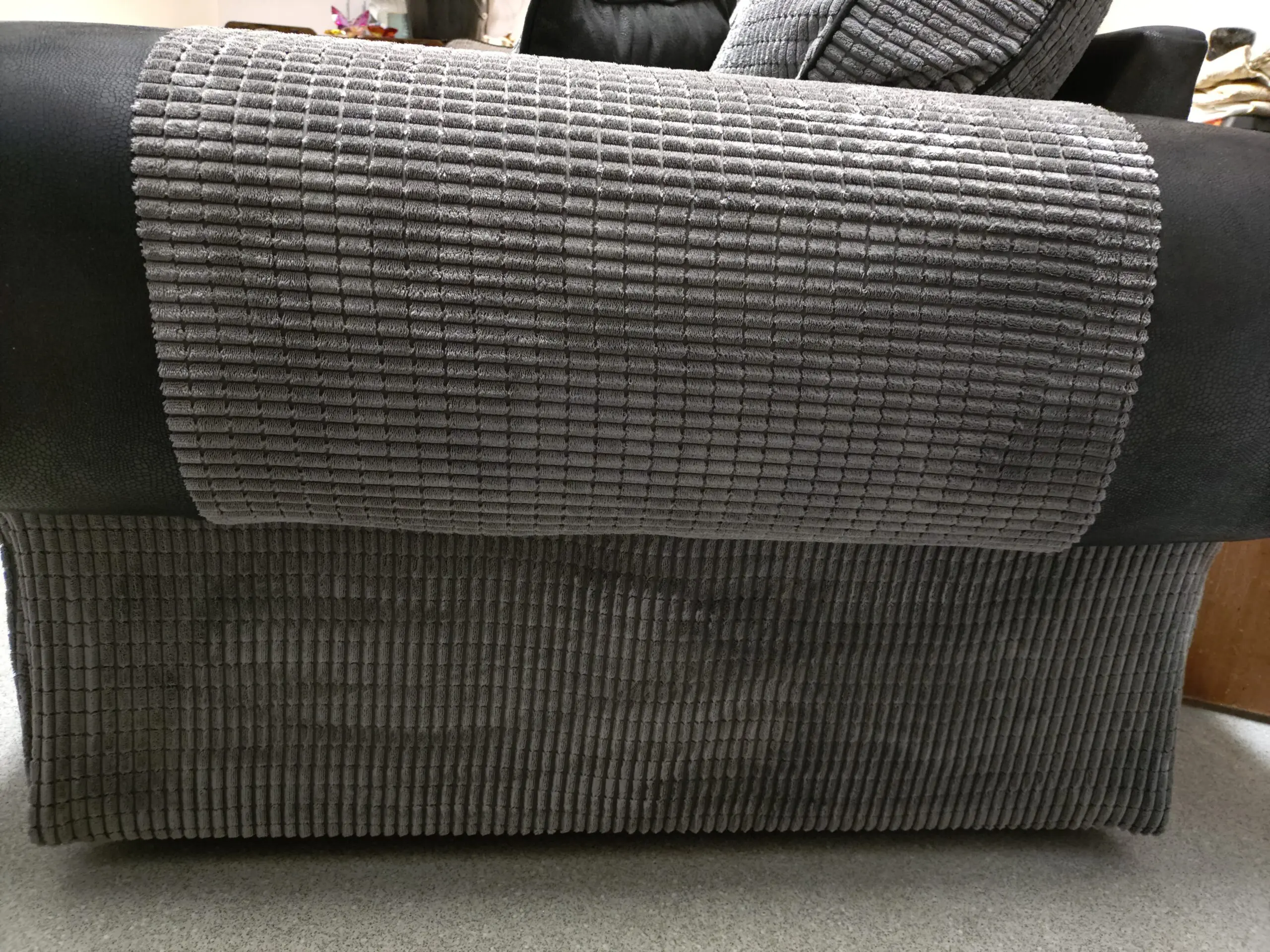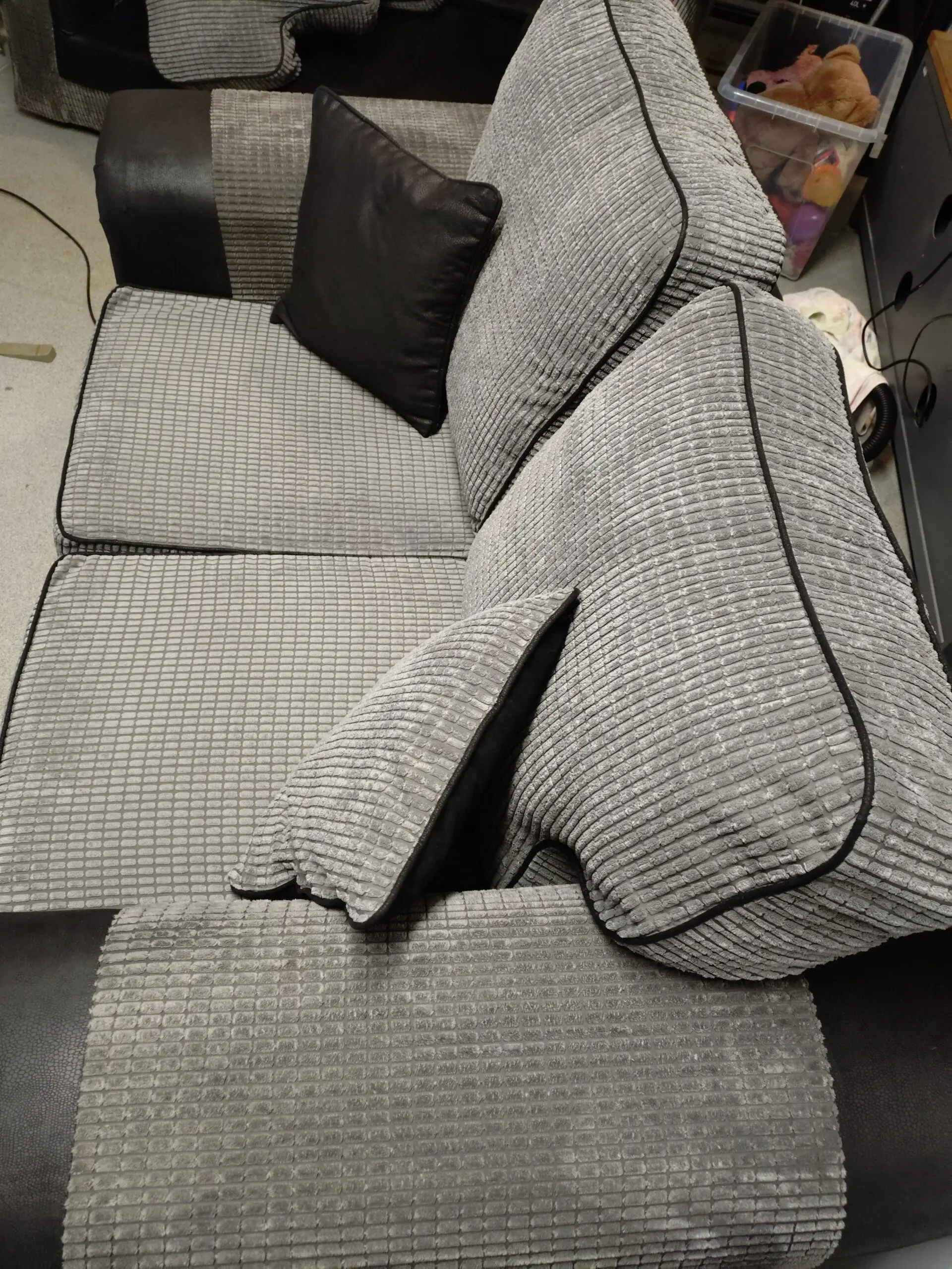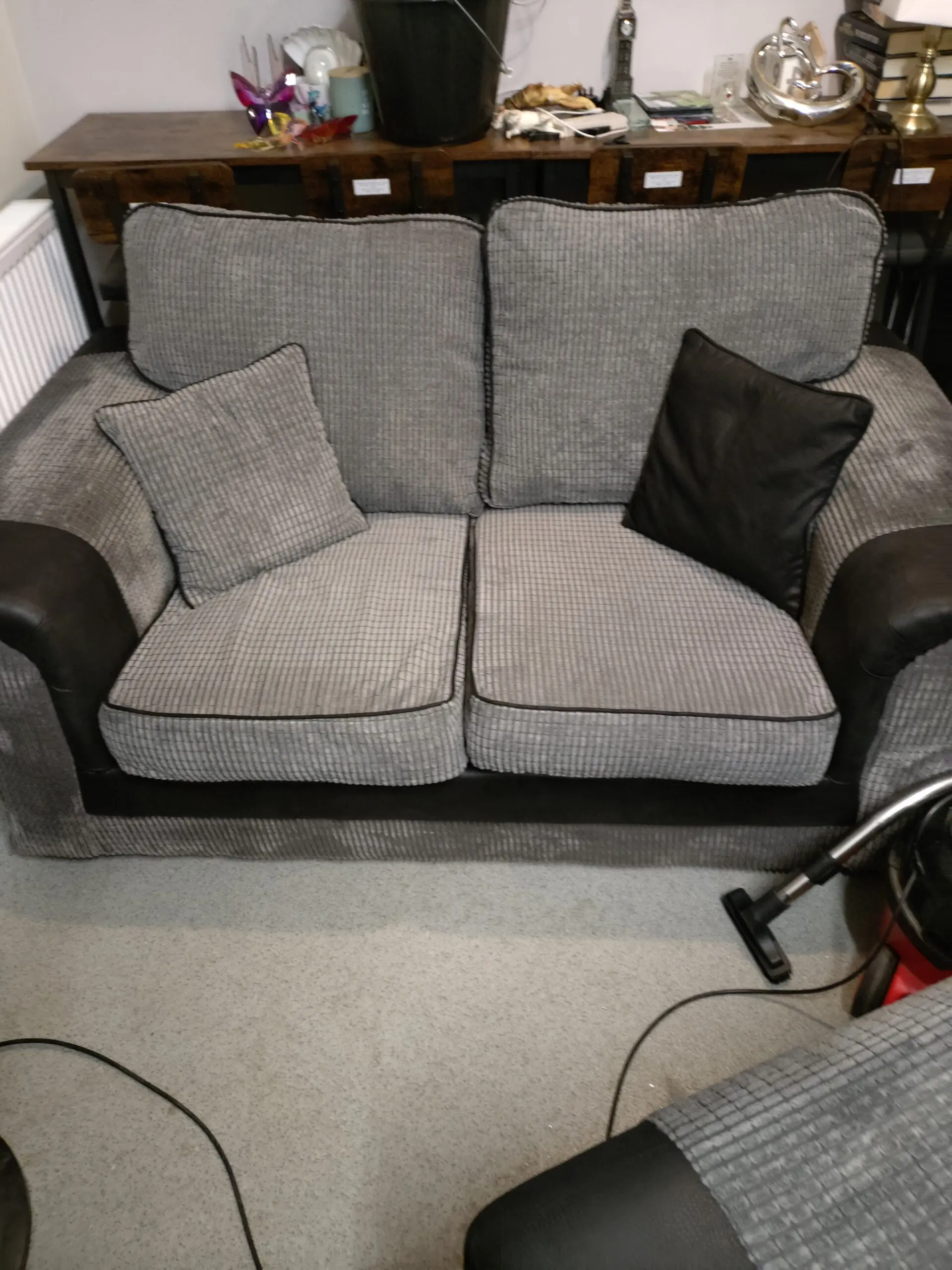 2×2 seater sofas grey and black brought of line from honeypot it’s about 2-3 years old only changing as decorating