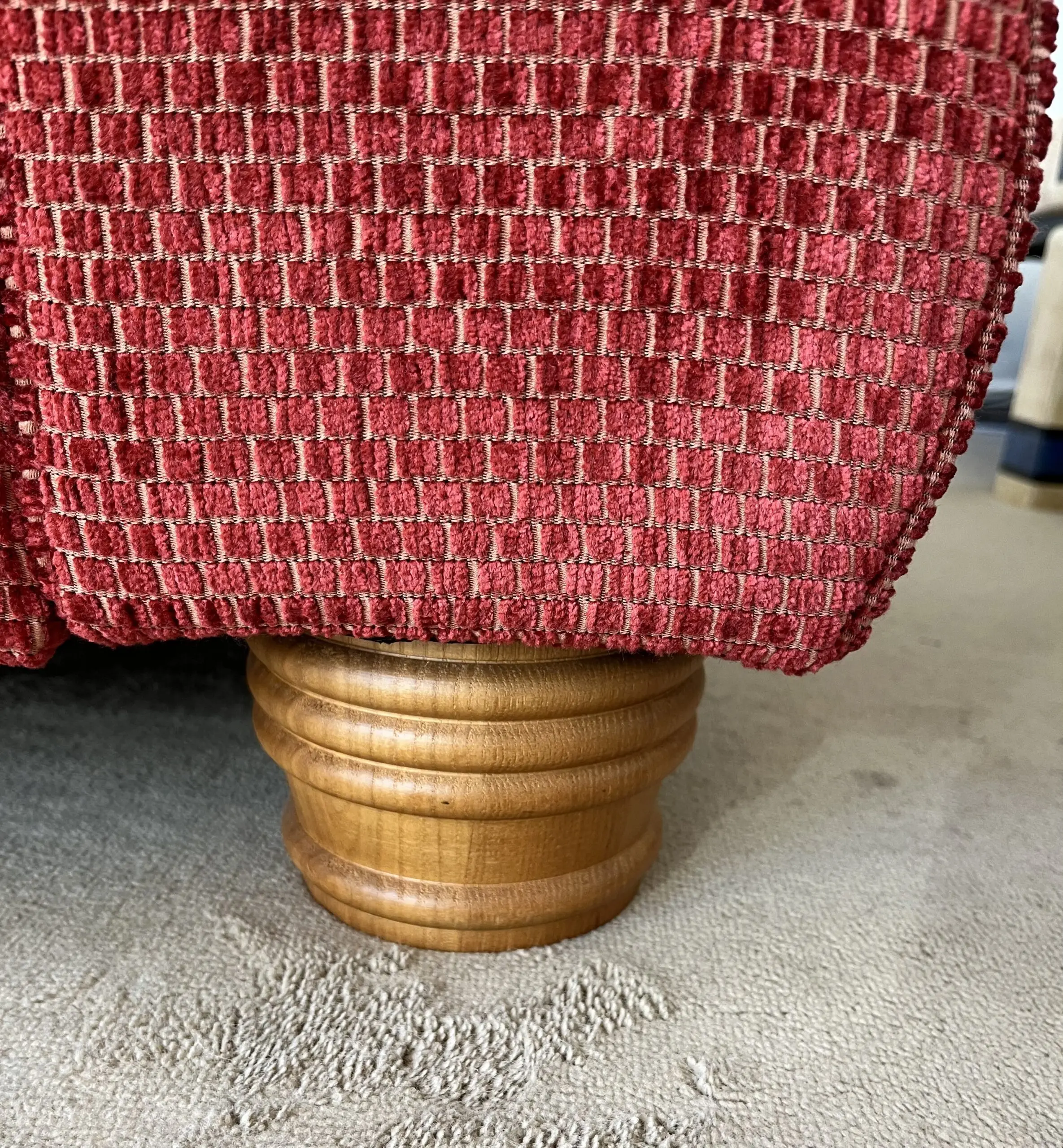 This 2-seater sofa was bought from Harrods in the early 2000’s. It is very well made and the fabric is soft textured velvet and the legs are solid wood.