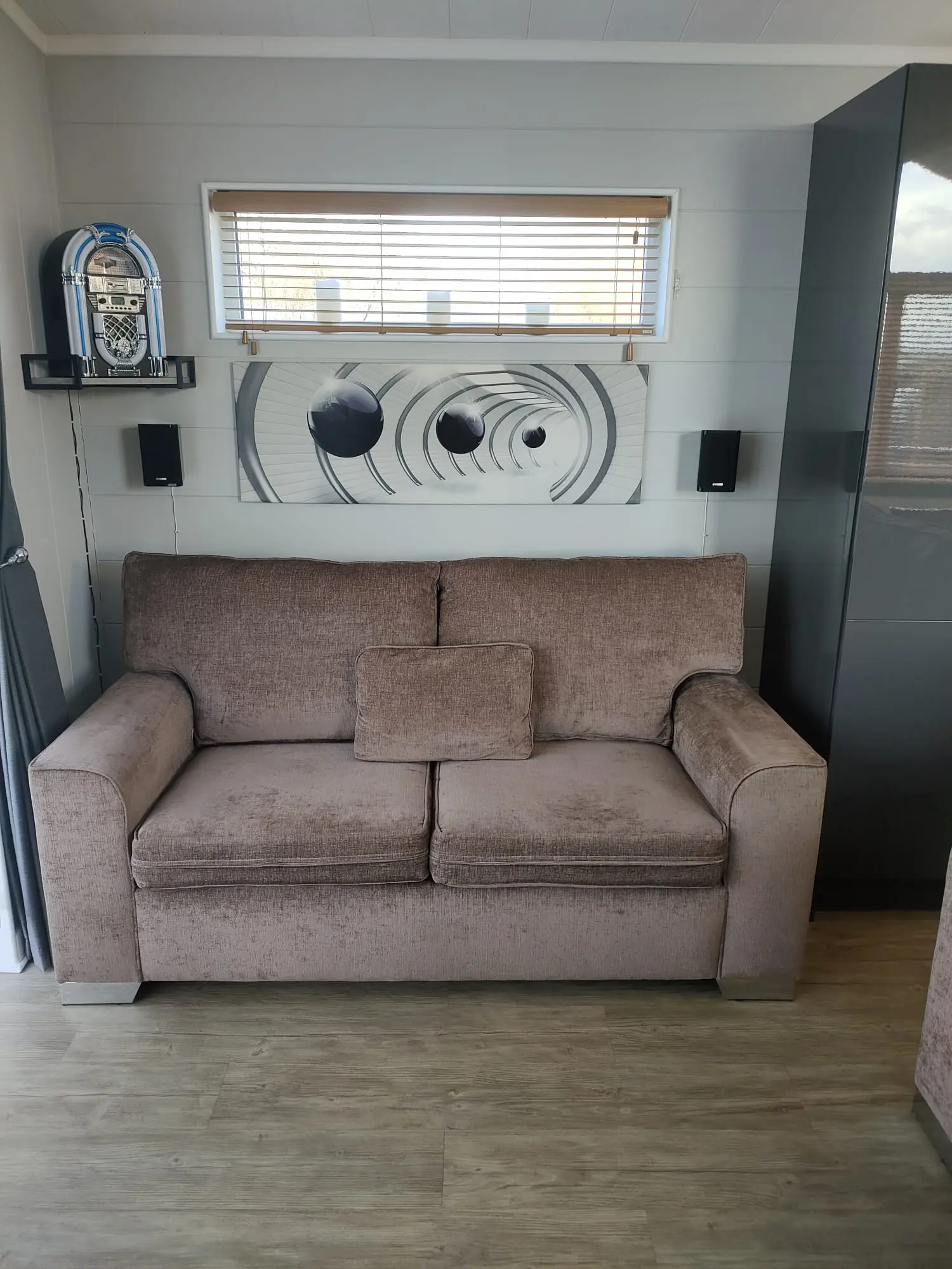 x2 2 seater Mink coloured sofas, one is a sofa bed, can seat 3 people comfortably excellent condition.