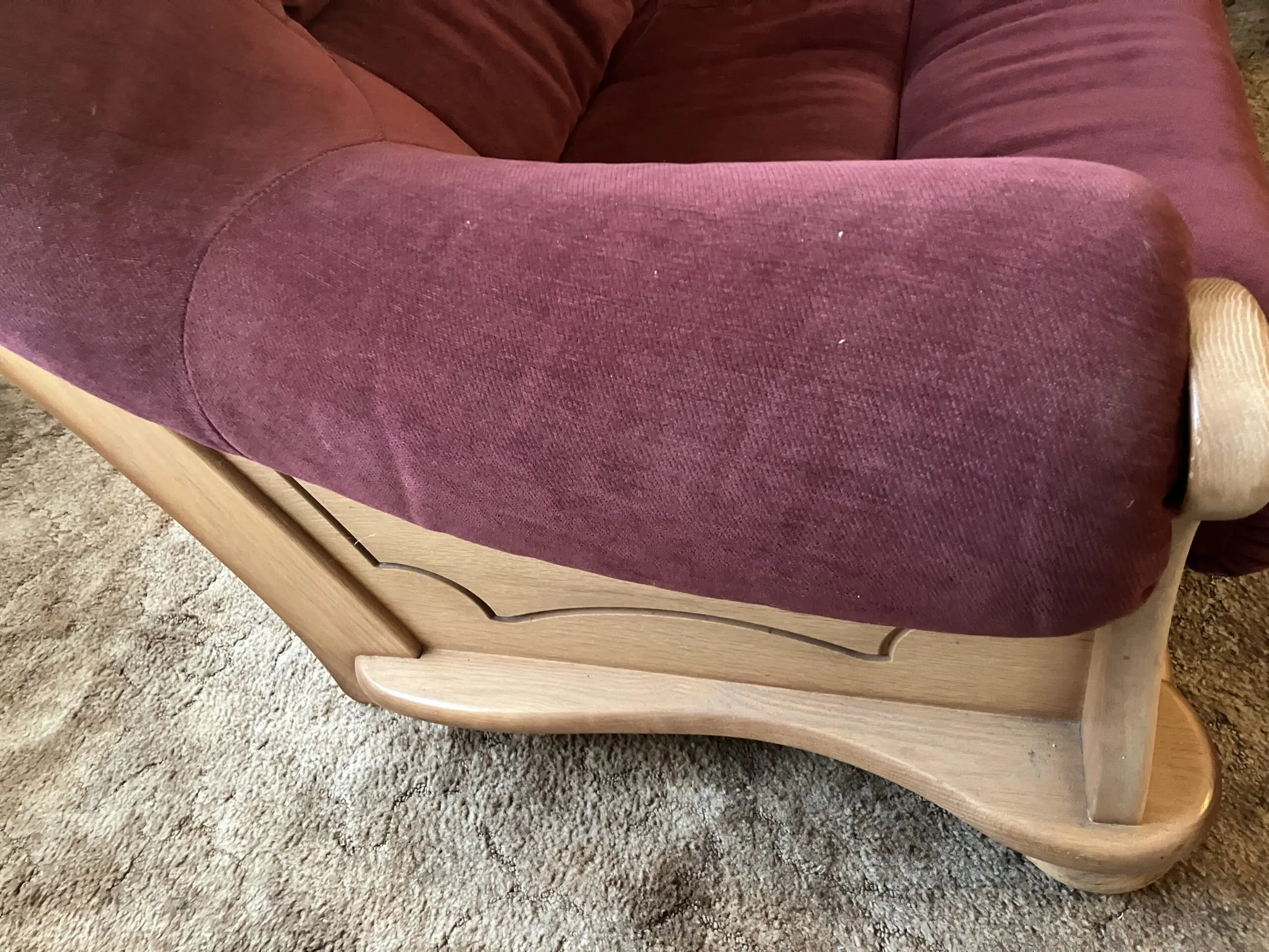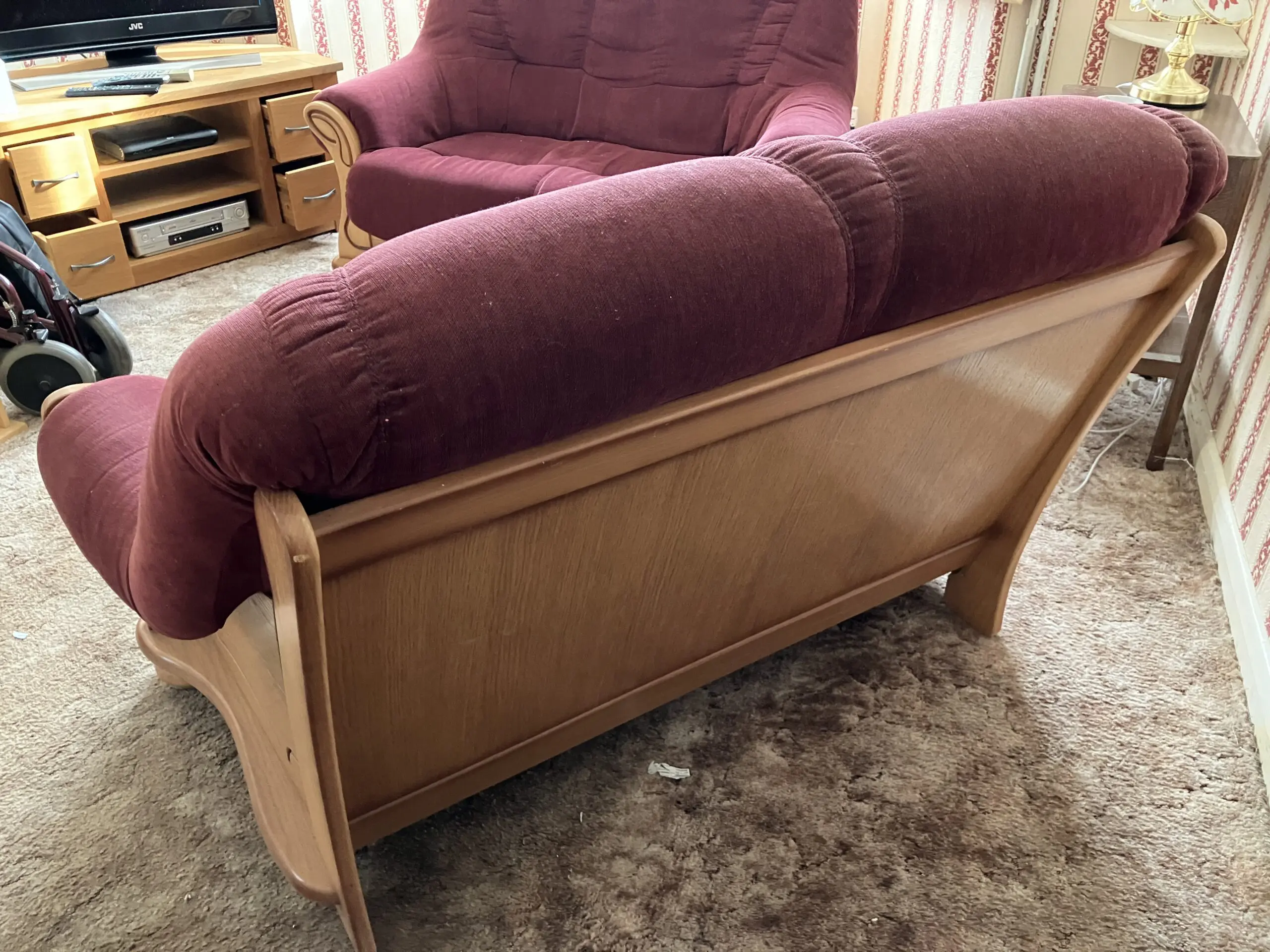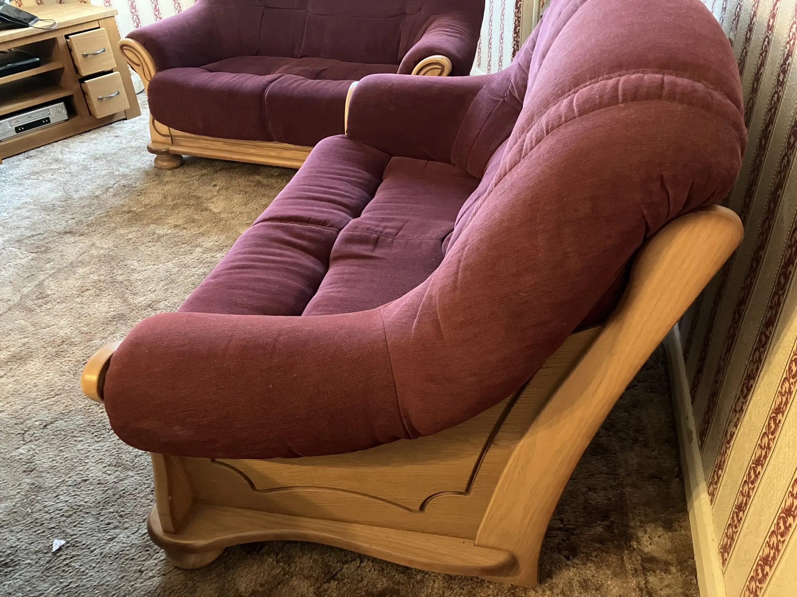 2 seater wooden framed sofa, maroon fabric