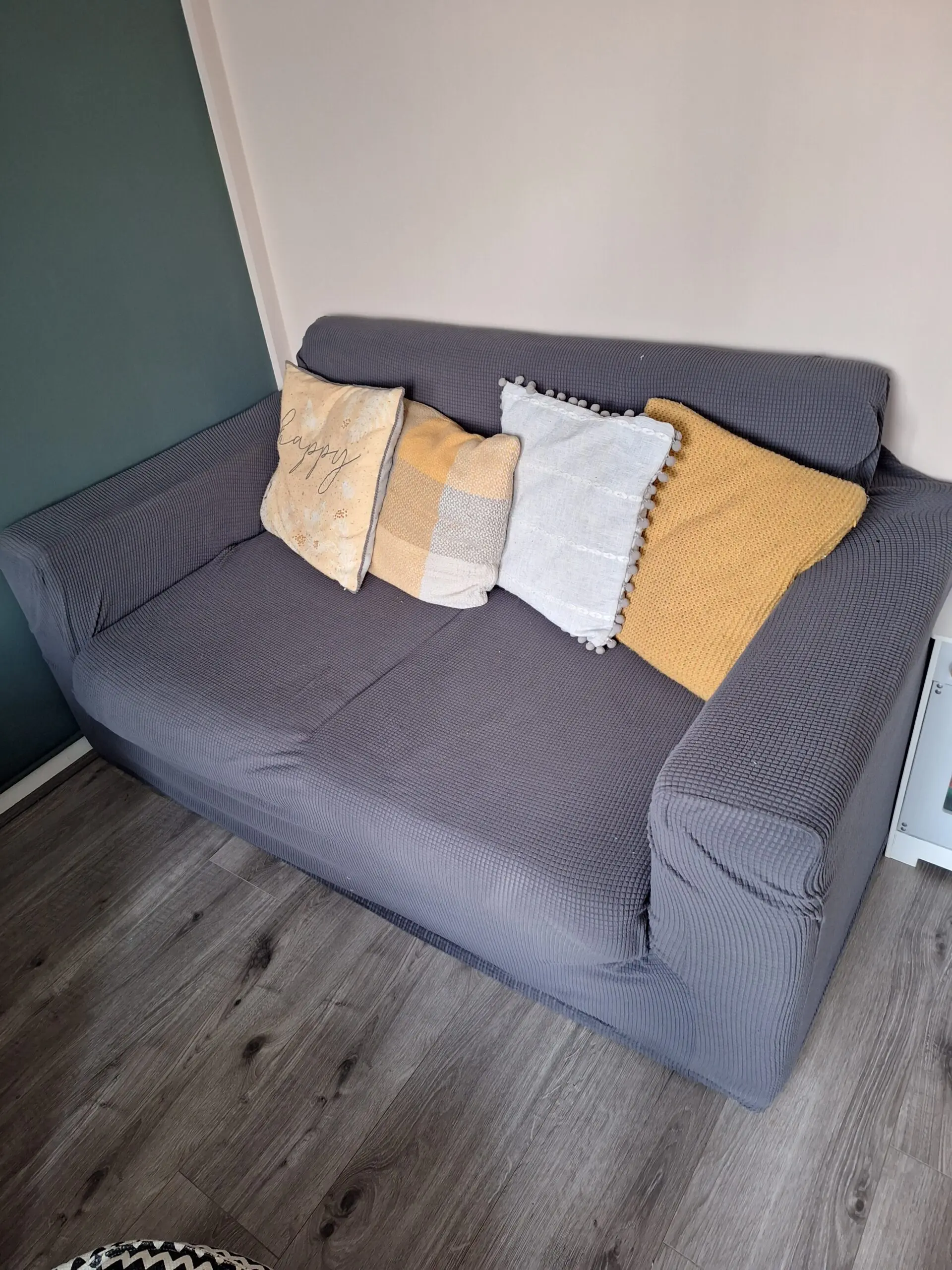 2 x black 2 seater sofas, including grey cover for both if wanted (see pic)