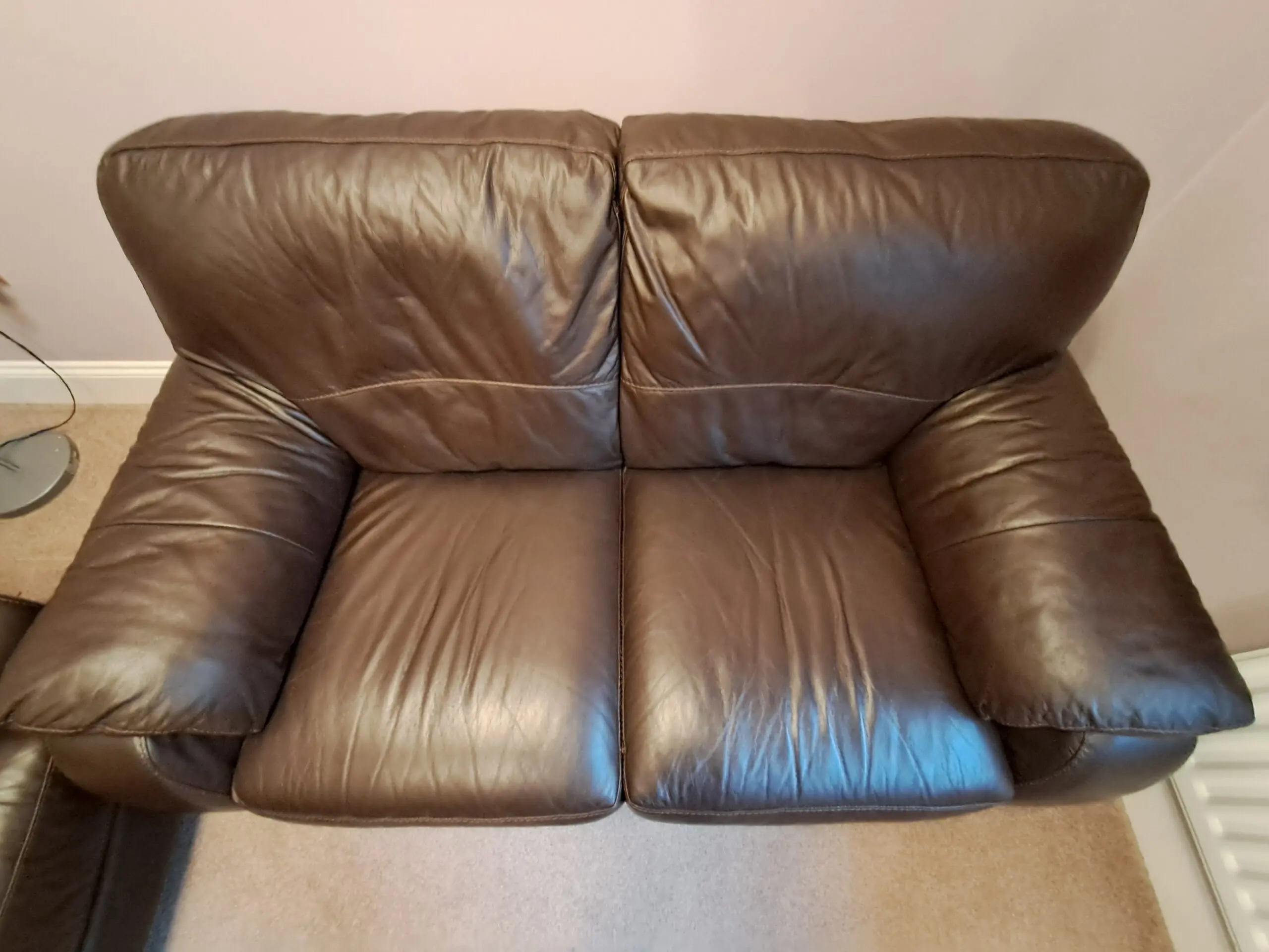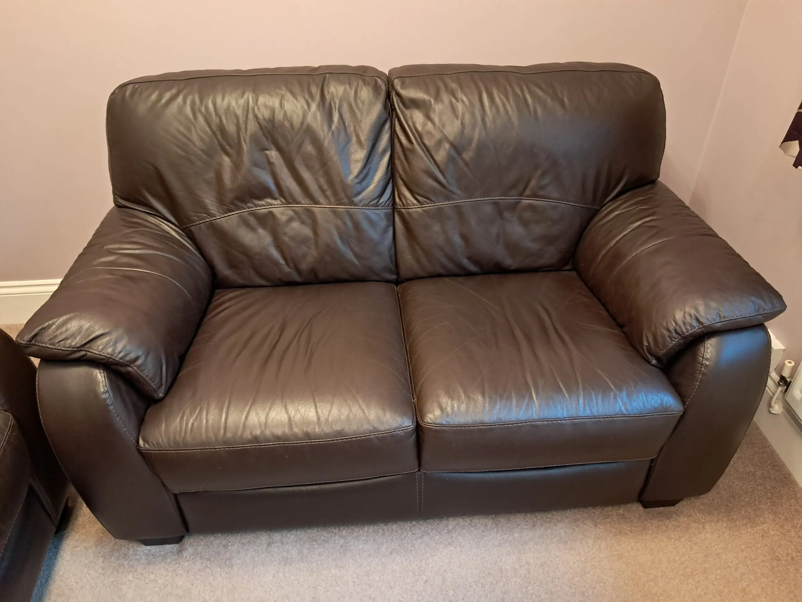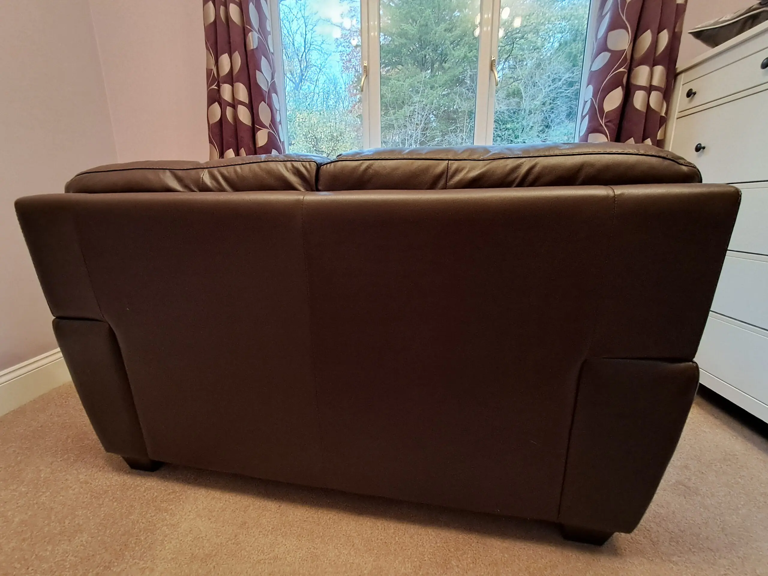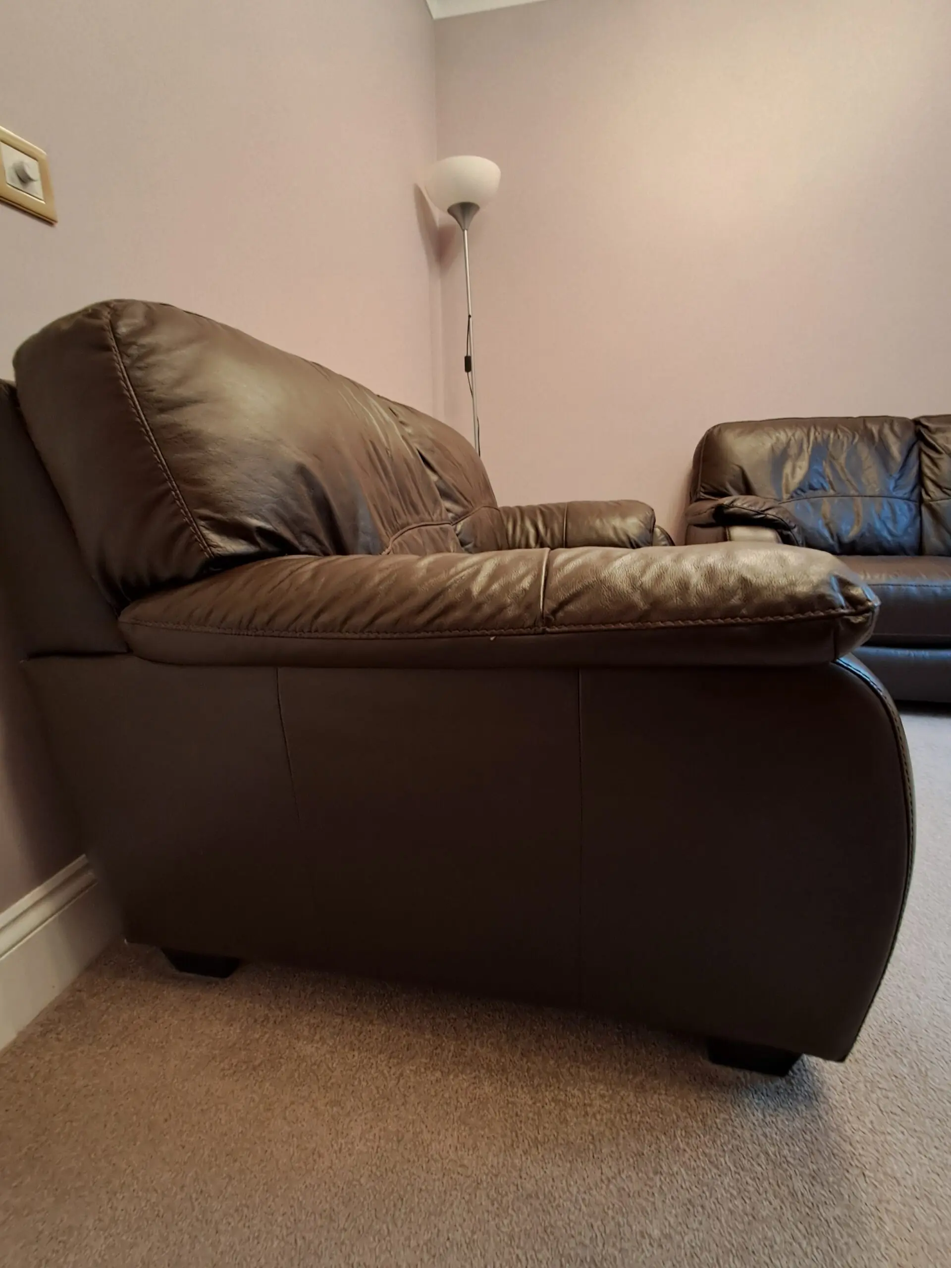 2 x Brown leather 2 seater settees. Rarely used so in excellent condition. Willing to sell individually at £225 each.