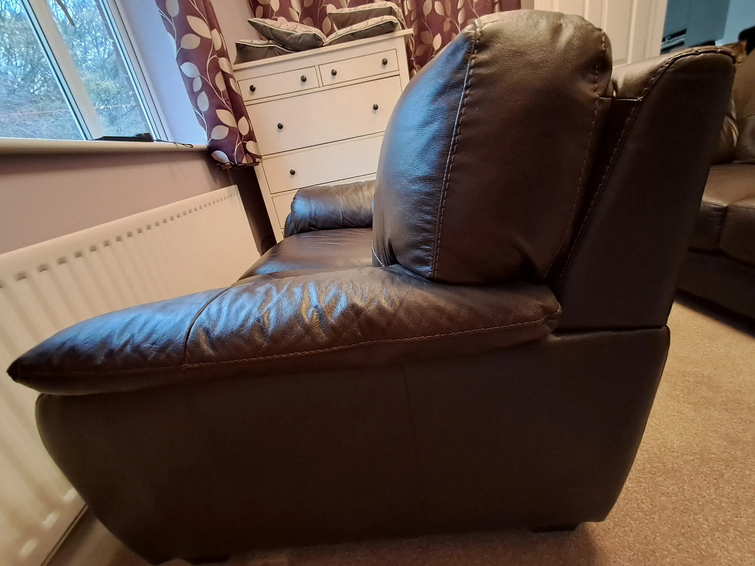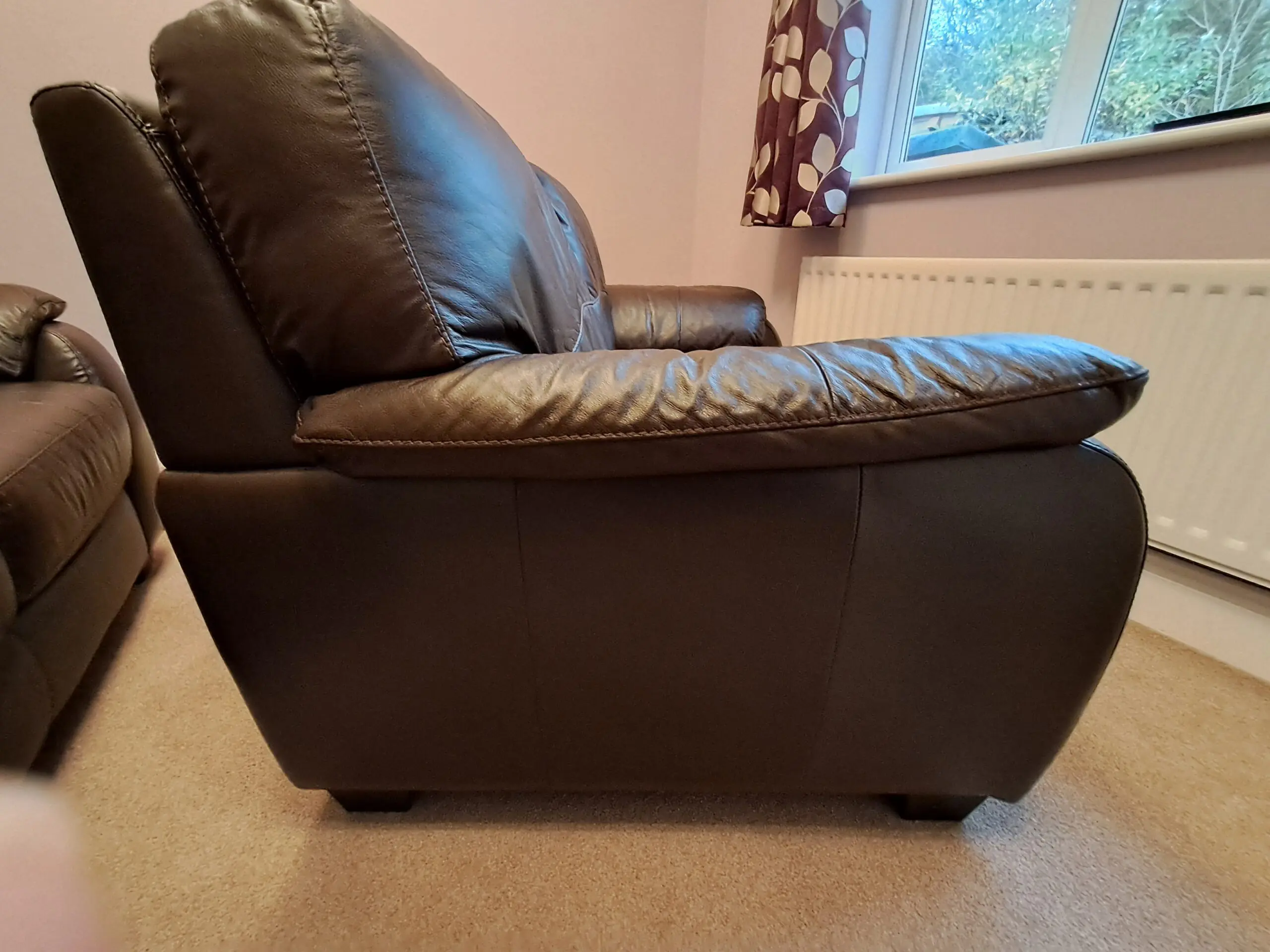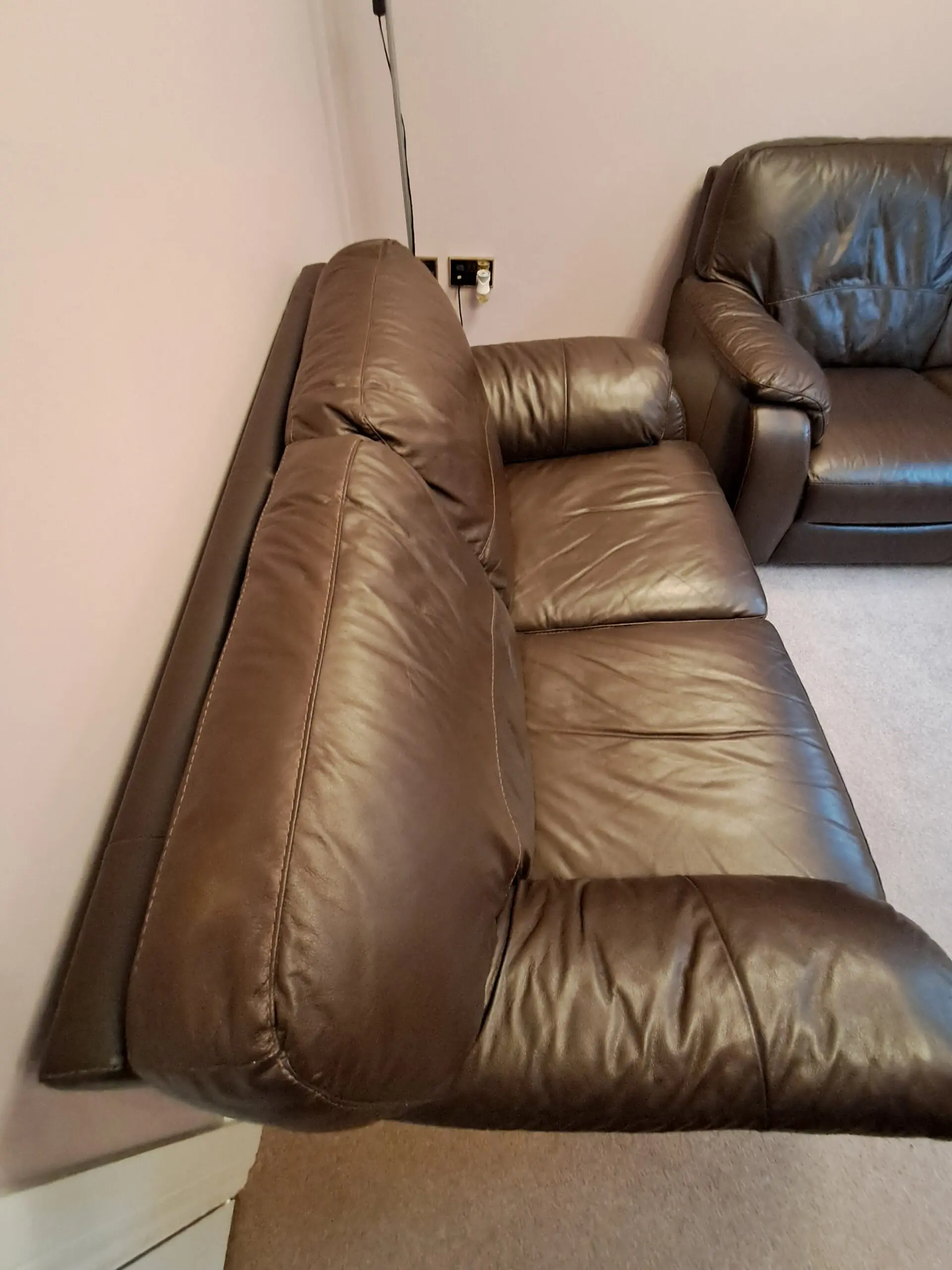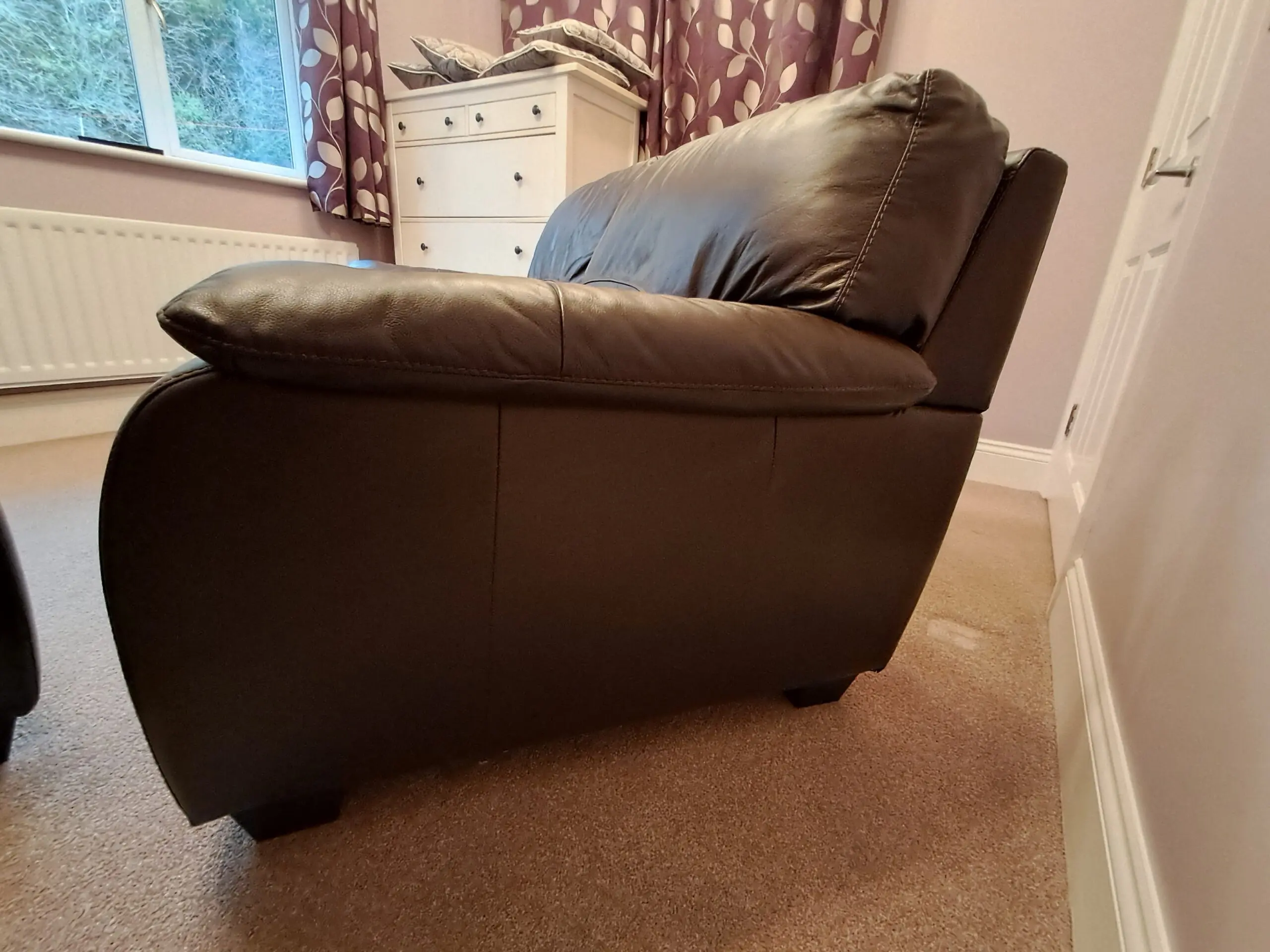 2 x Brown leather 2 seater settees. Rarely used so in excellent condition. Willing to sell individually at £225 each.