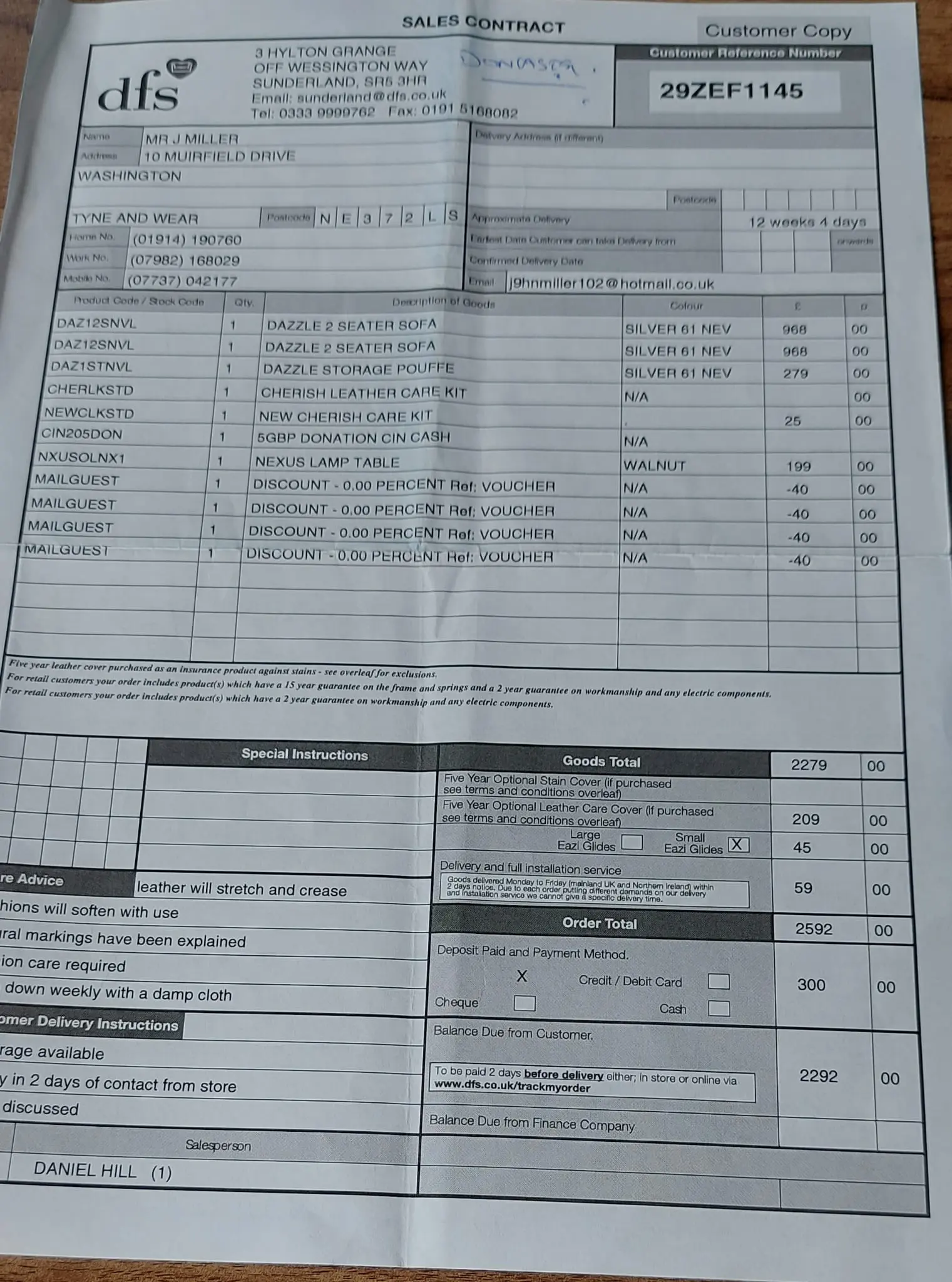 From start to finish this company was amazing. We were unsure about choosing online without trying first so took a chance. We are thrilled with our choice . Delivery was great was in touch with sofalistic all the way. They were fabulous thank you