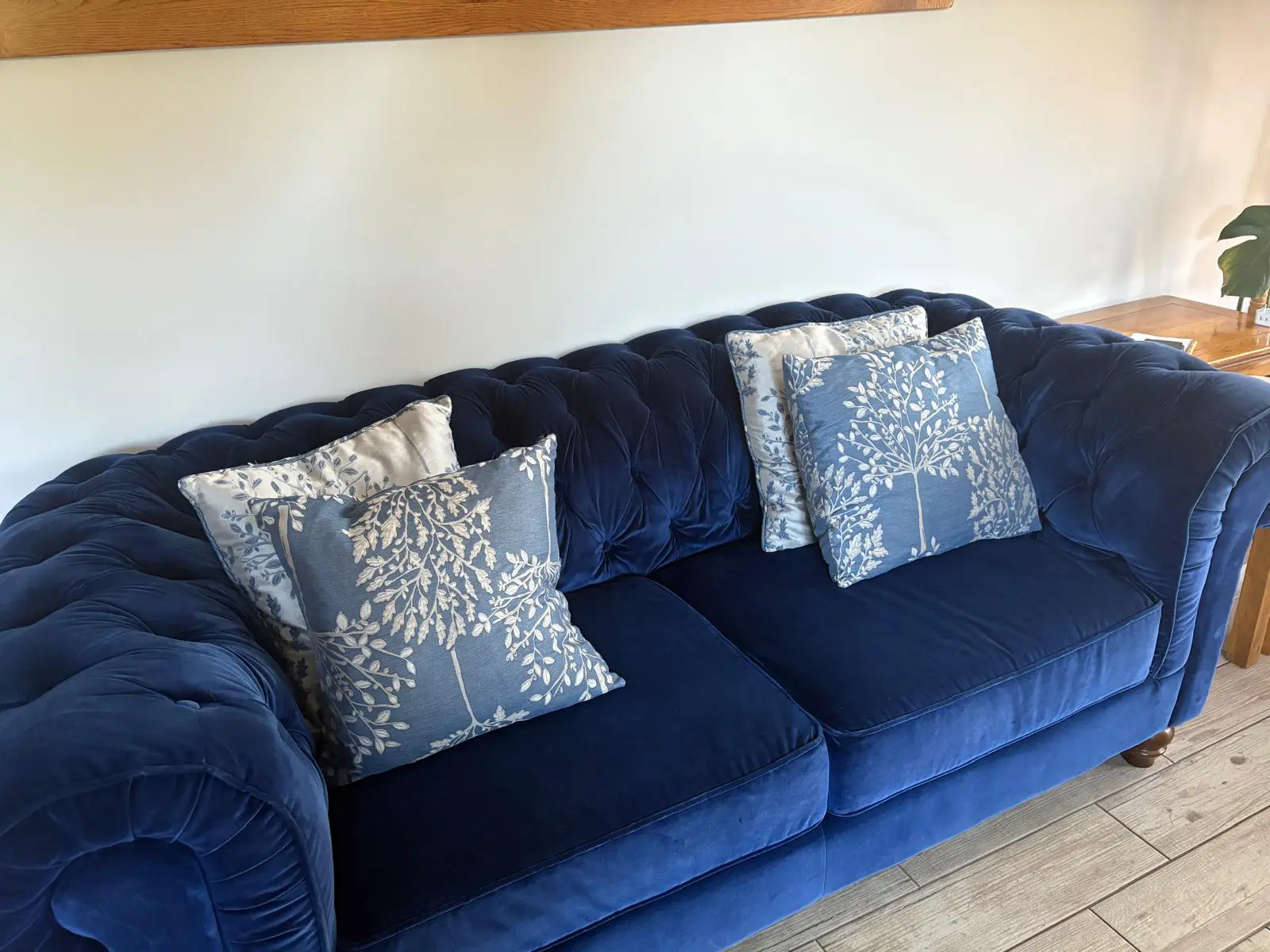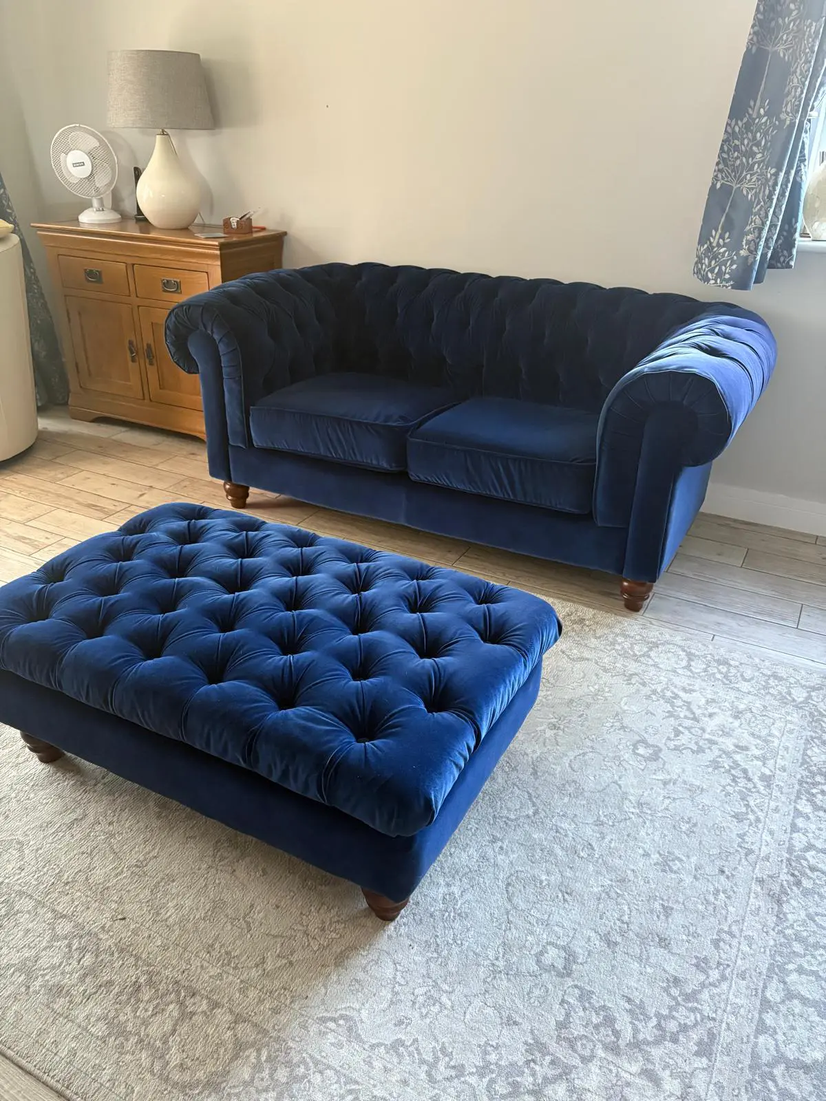 One 3 seater and one 2 seater sofa plus matching footstall.