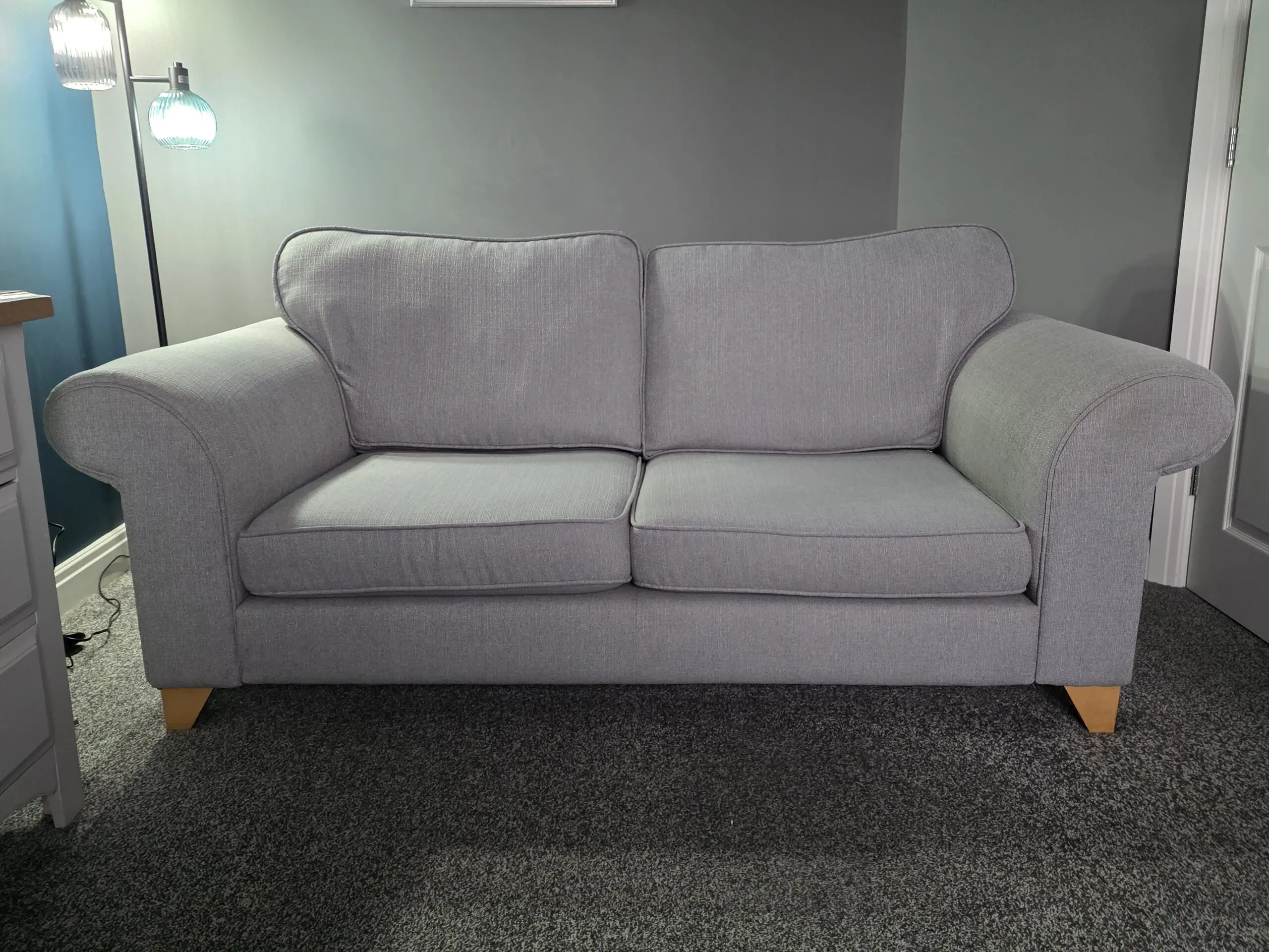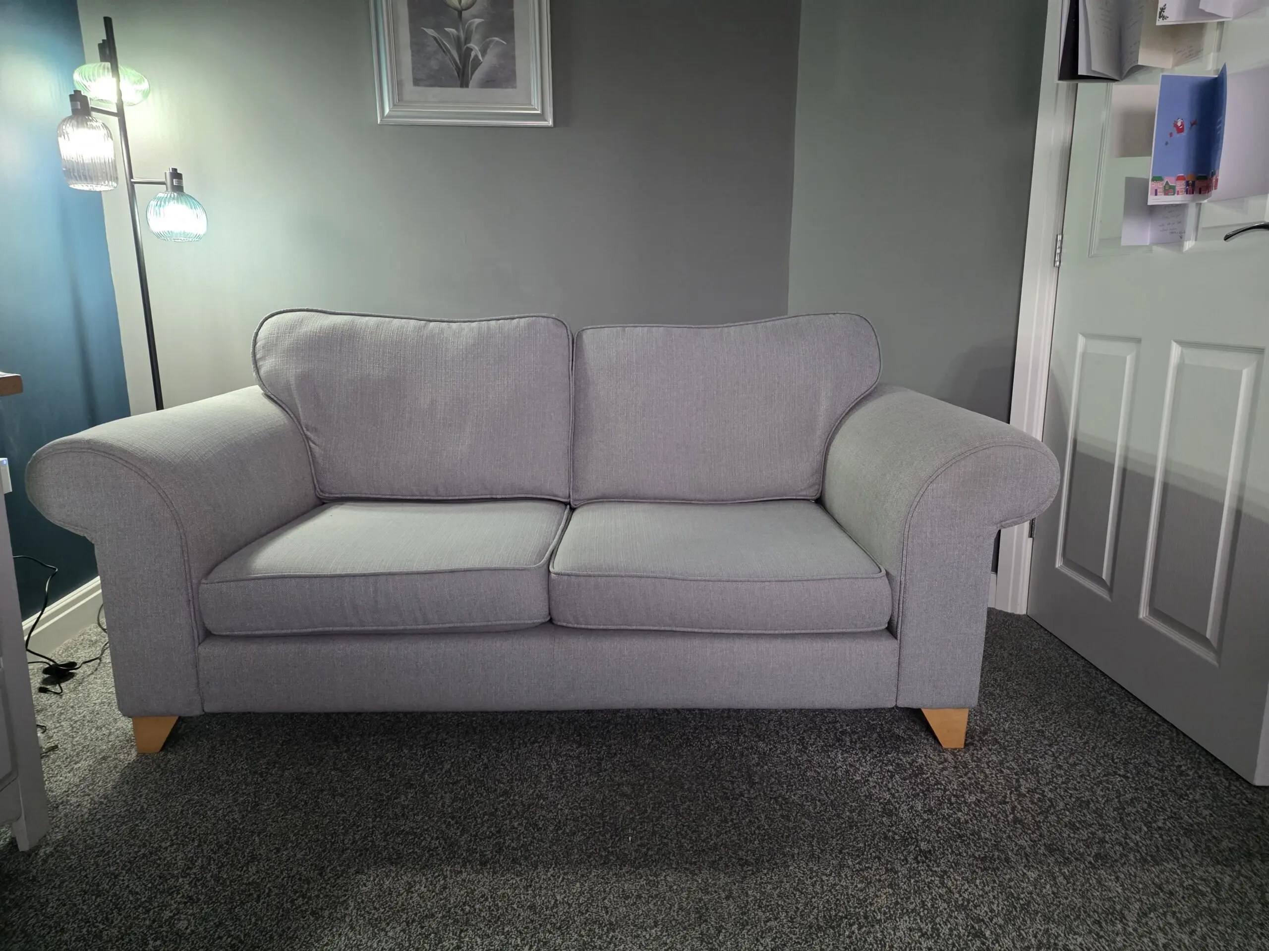 2x 2 seater sofas in ash grey, actually fits 3 people seated, in nice condition.