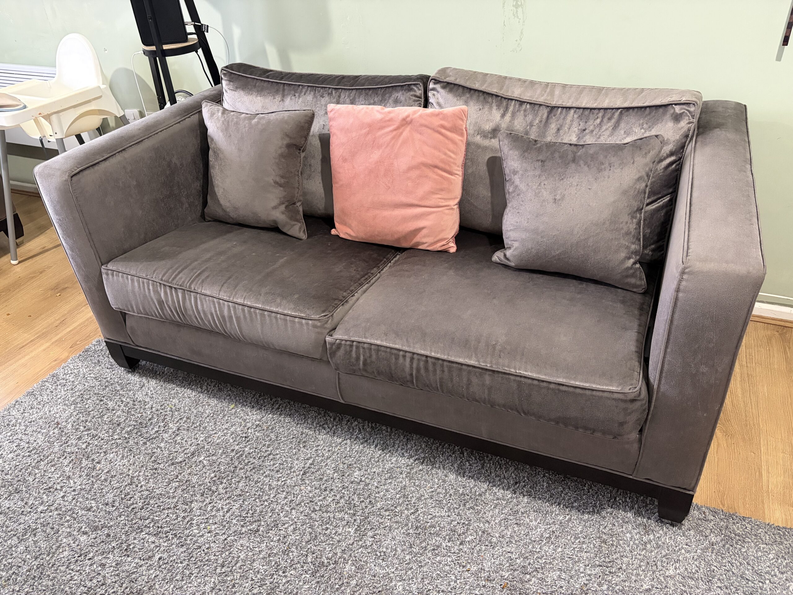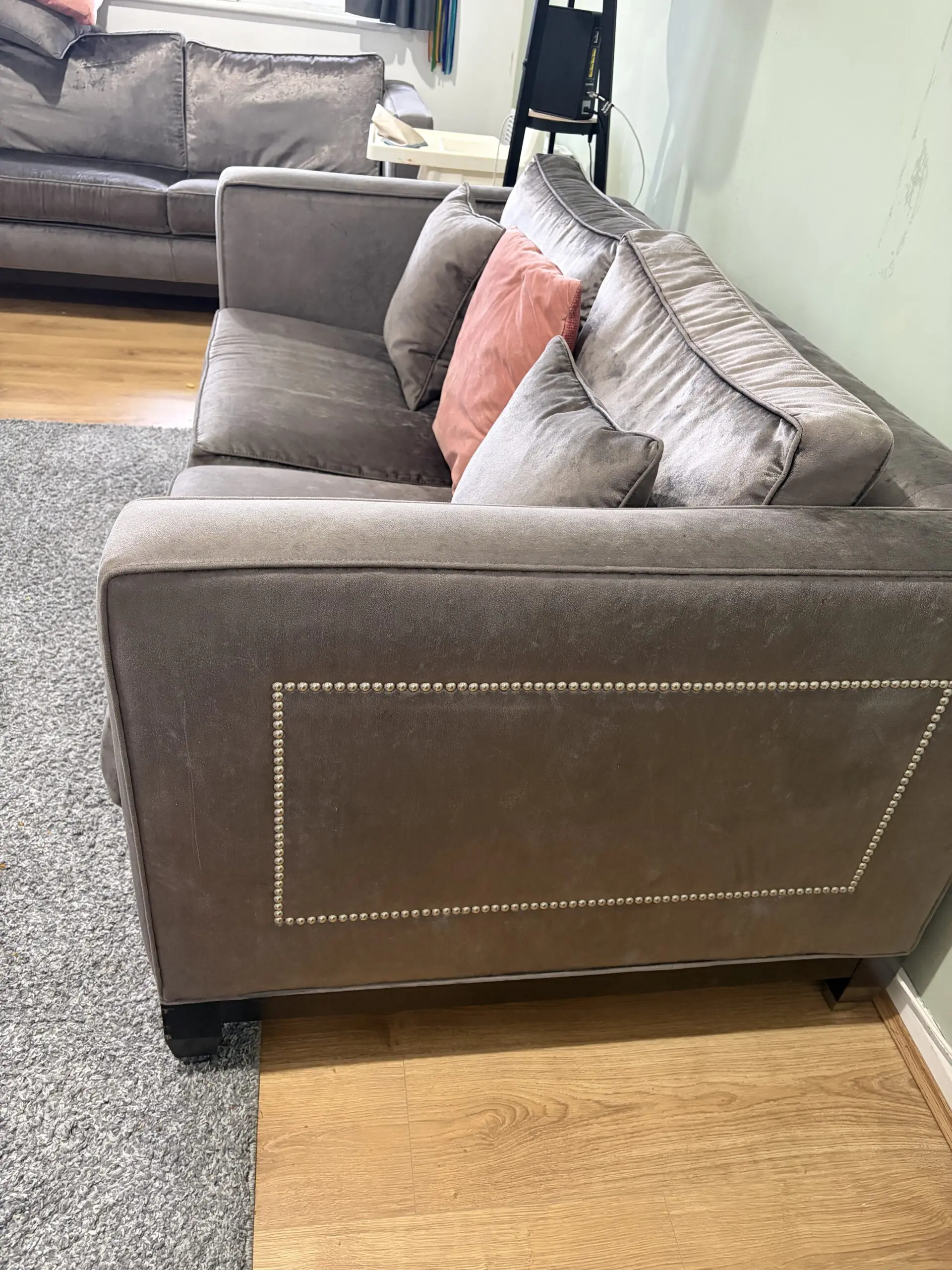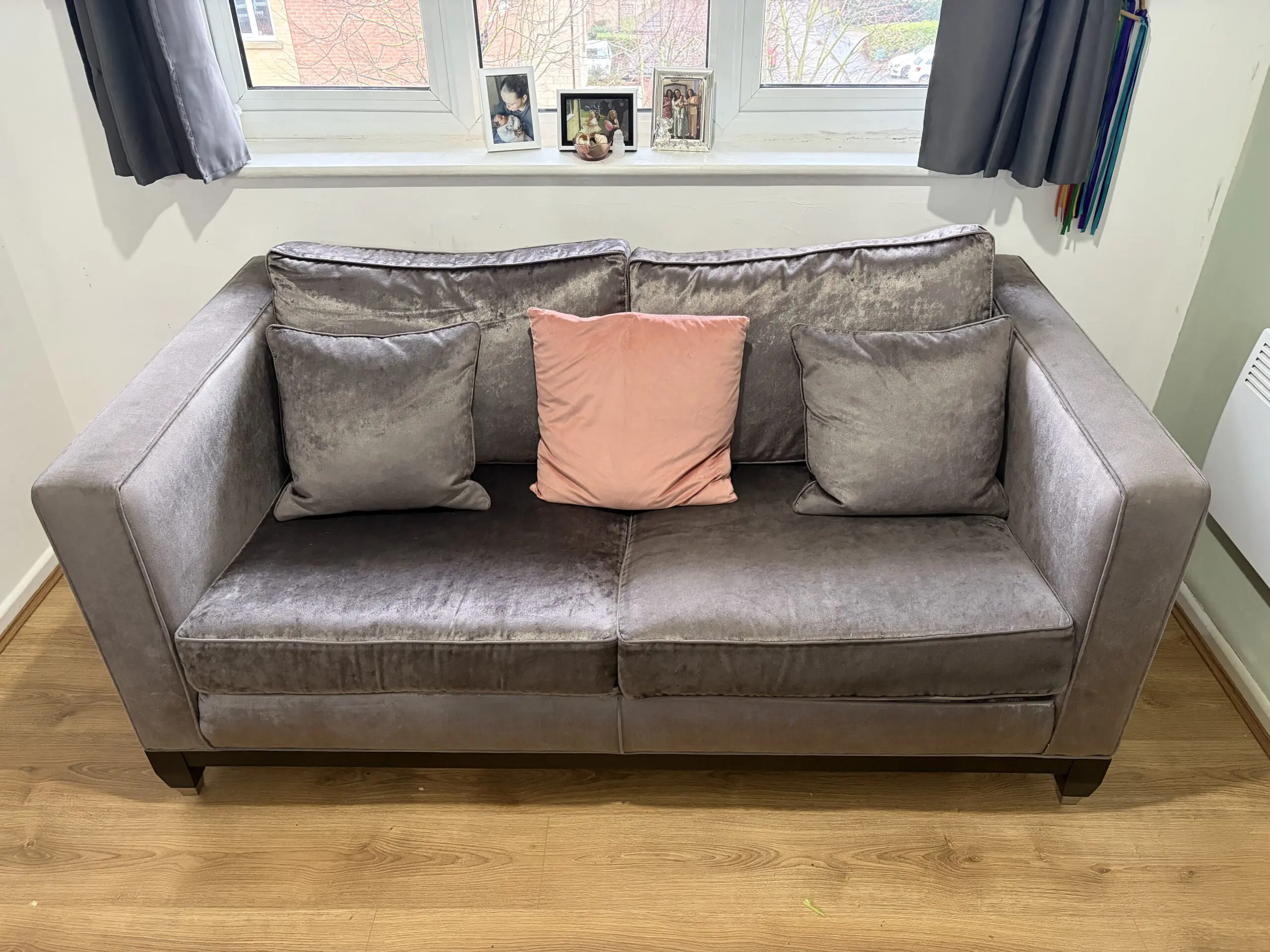 Selling a beautiful, high-quality sofa set consisting of two large 2-seater couches and a matching pouffe footstool. All pieces are in really good condition and have been very well looked after.