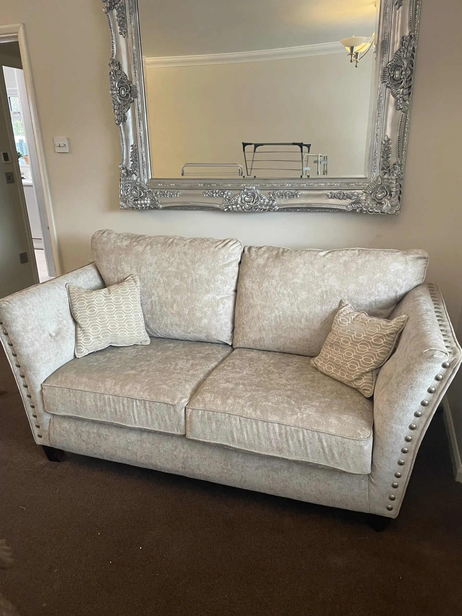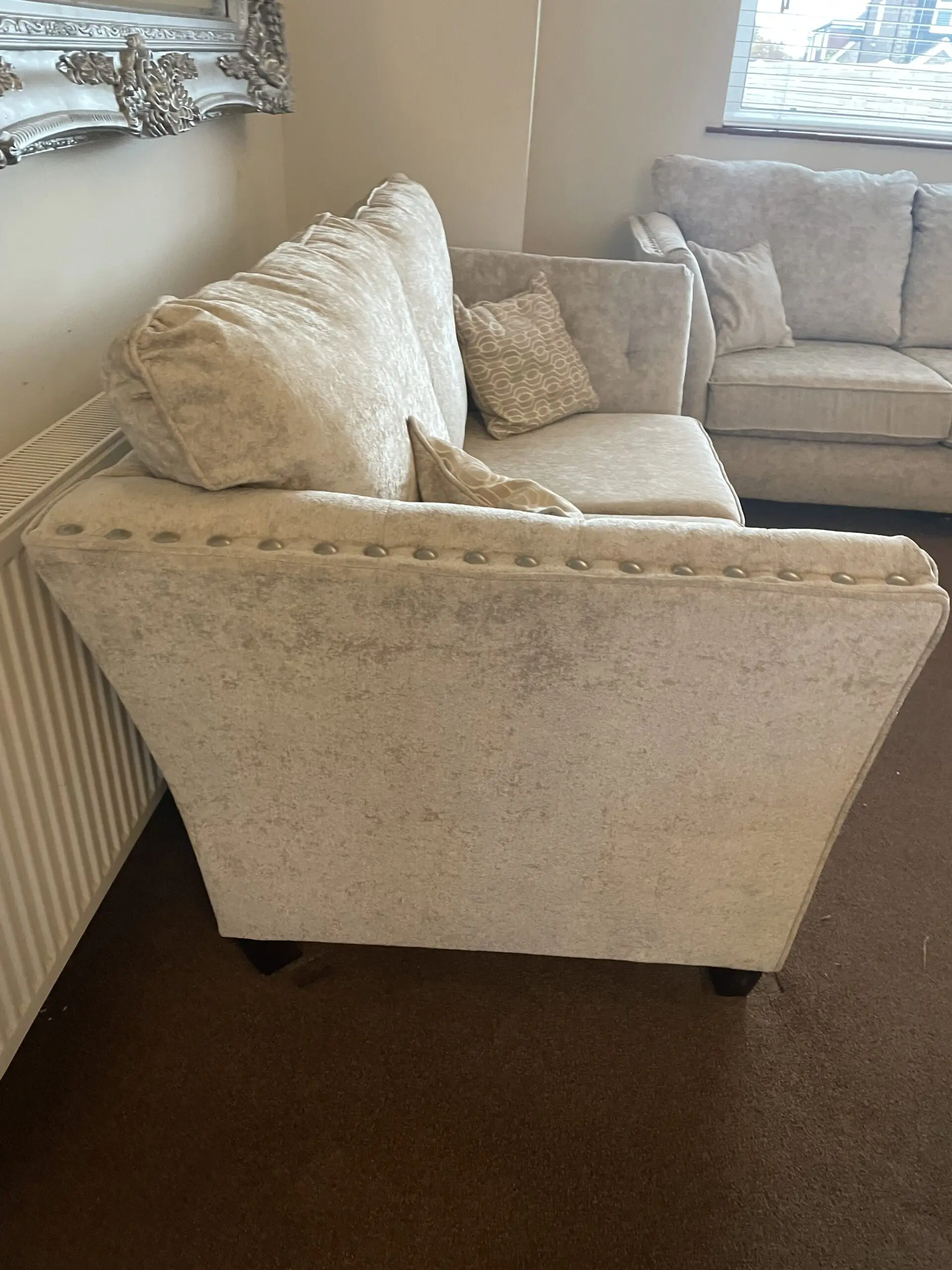 In excellent condition. Was in an occasional room which was never used so only sat on approx. 6 times. Very comfortable. This price is for both sofas