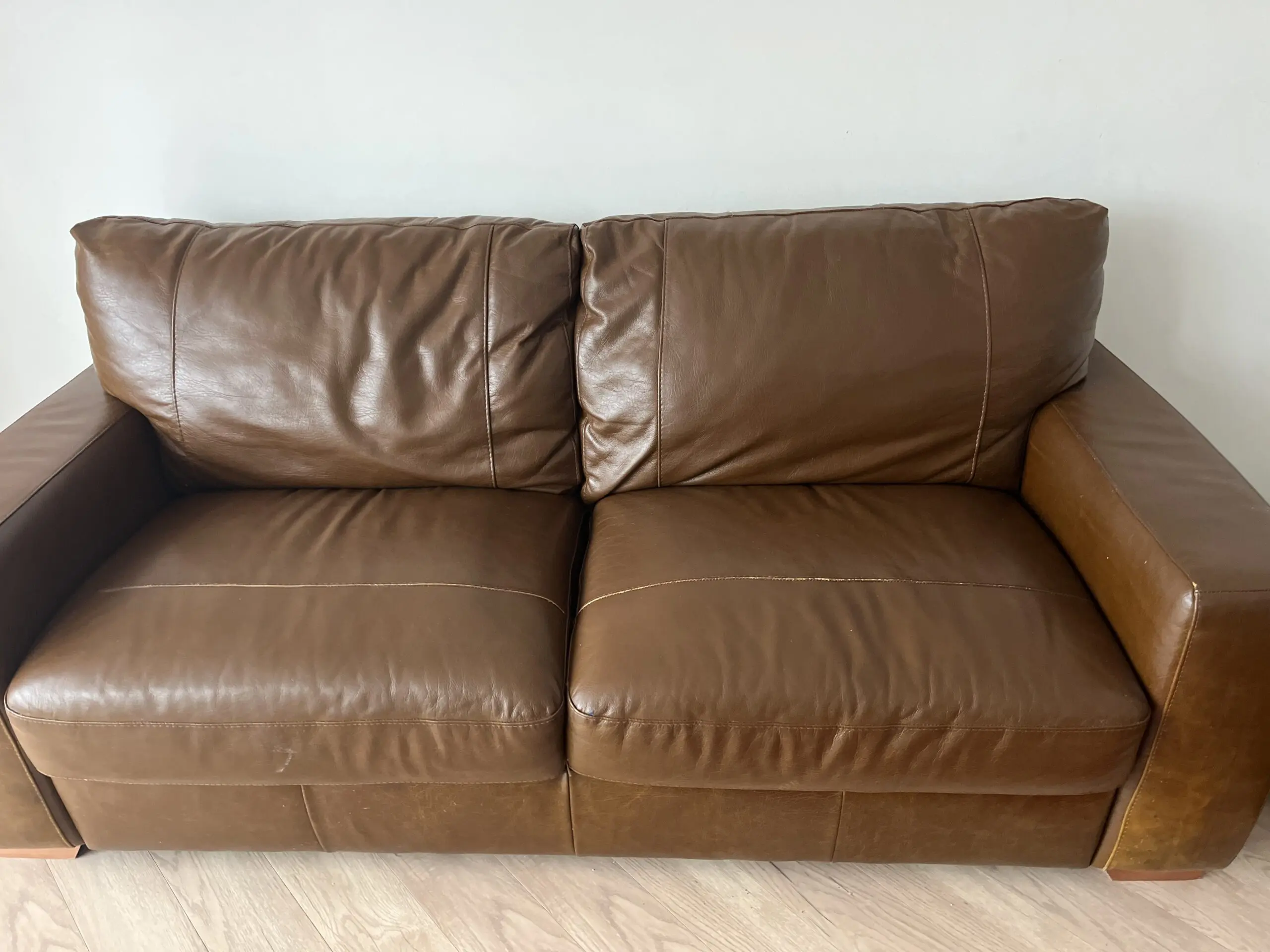 3 seater brown leather sofa. In good condition, with a few minor scuffs.