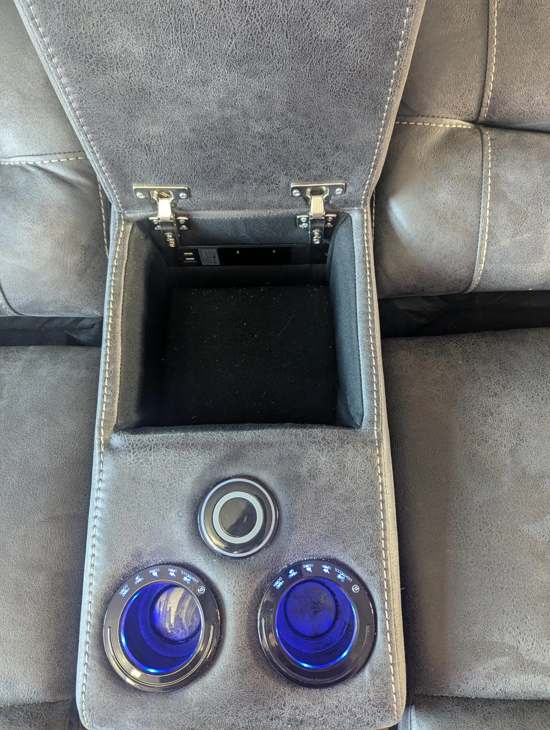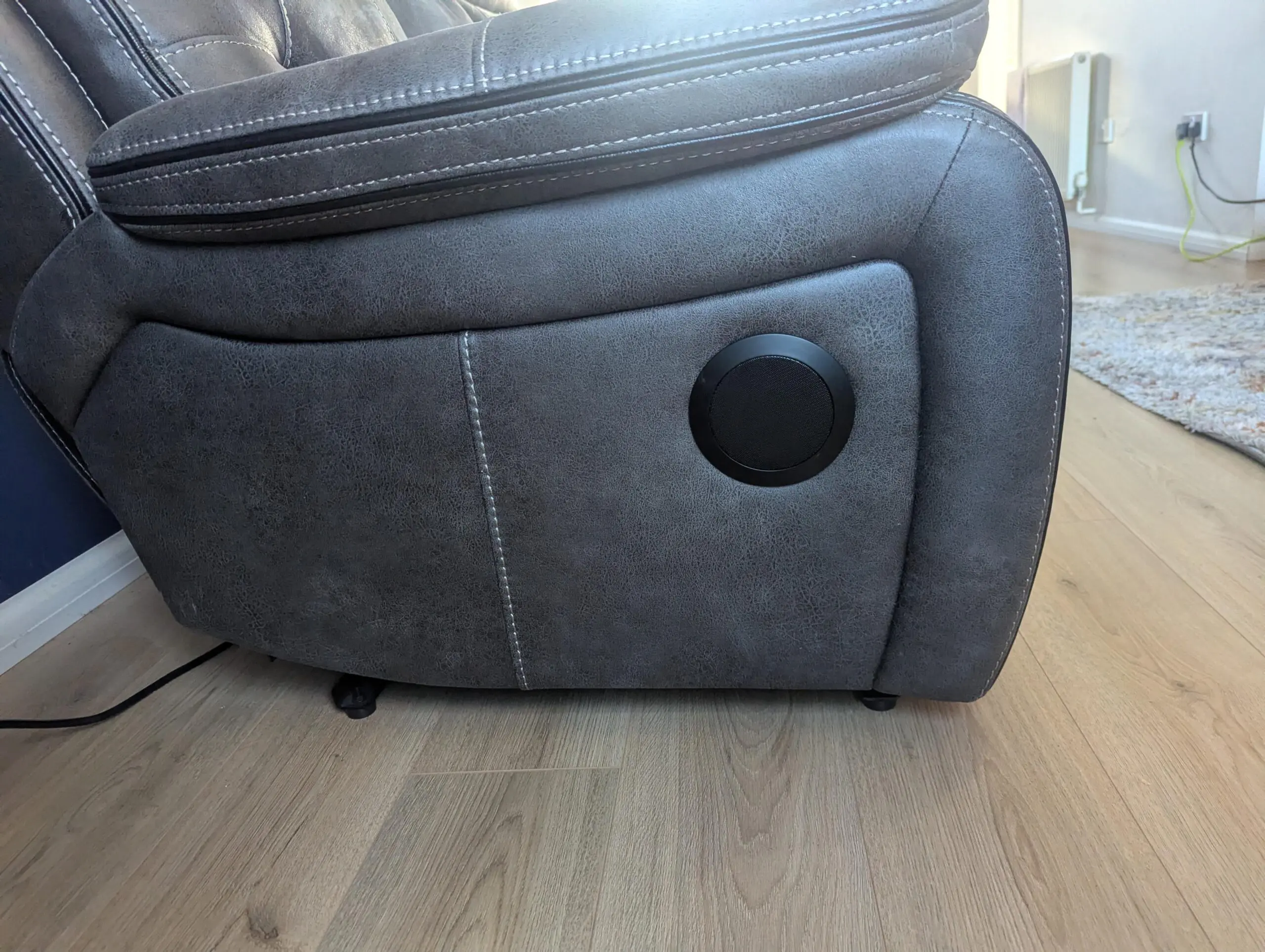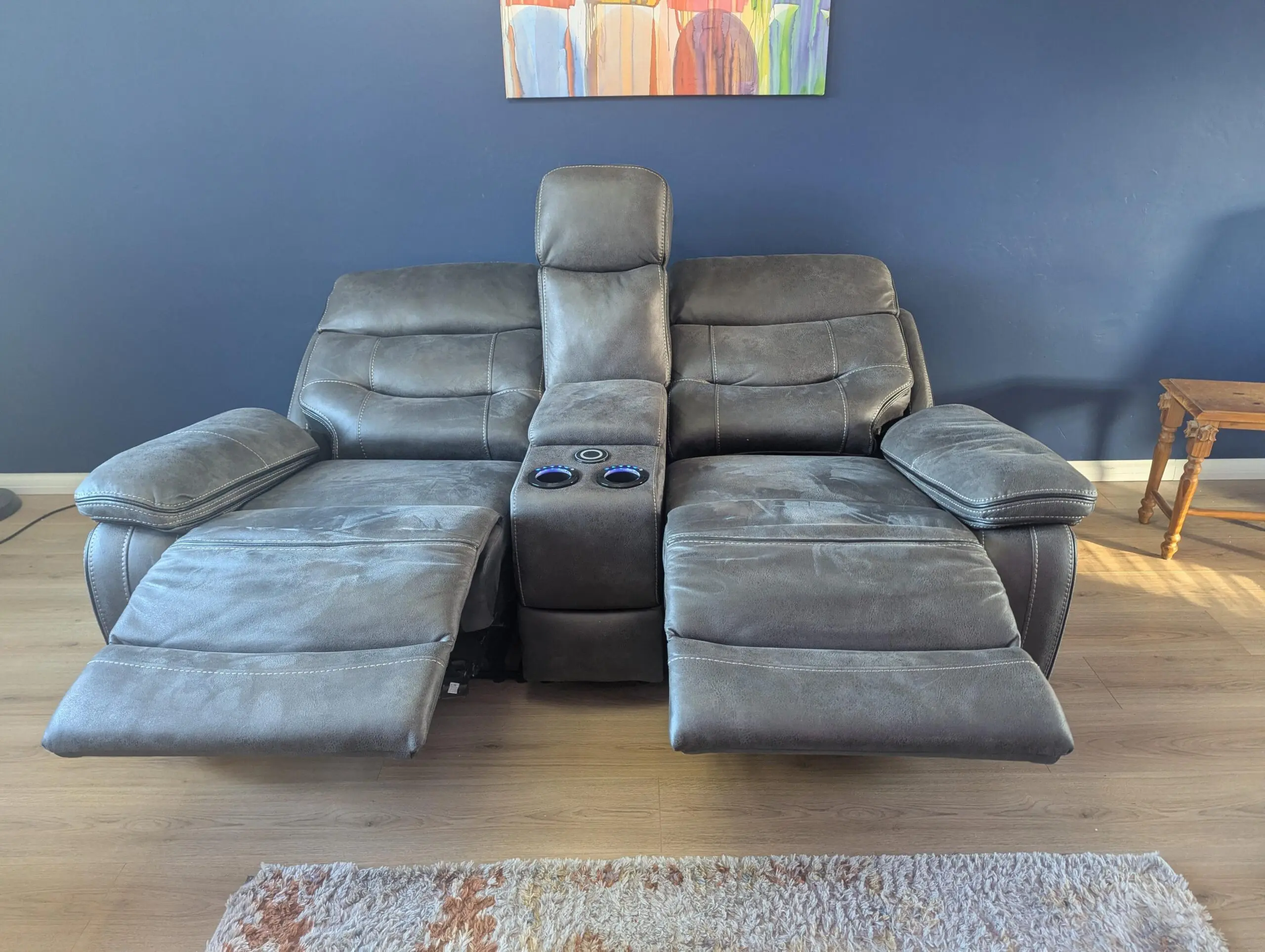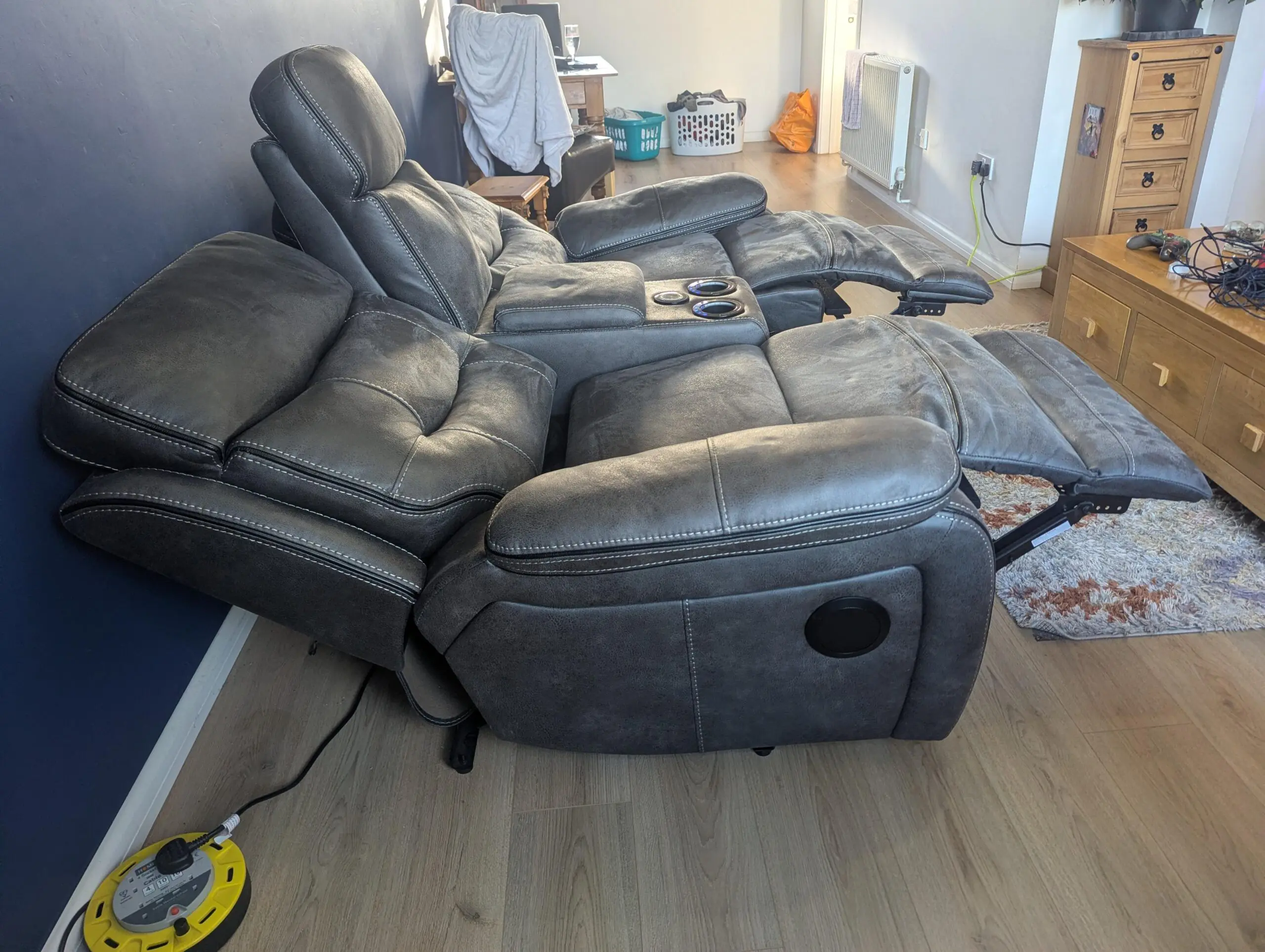 Black fabric reclining cinema sofa – ONLY 6 months old.