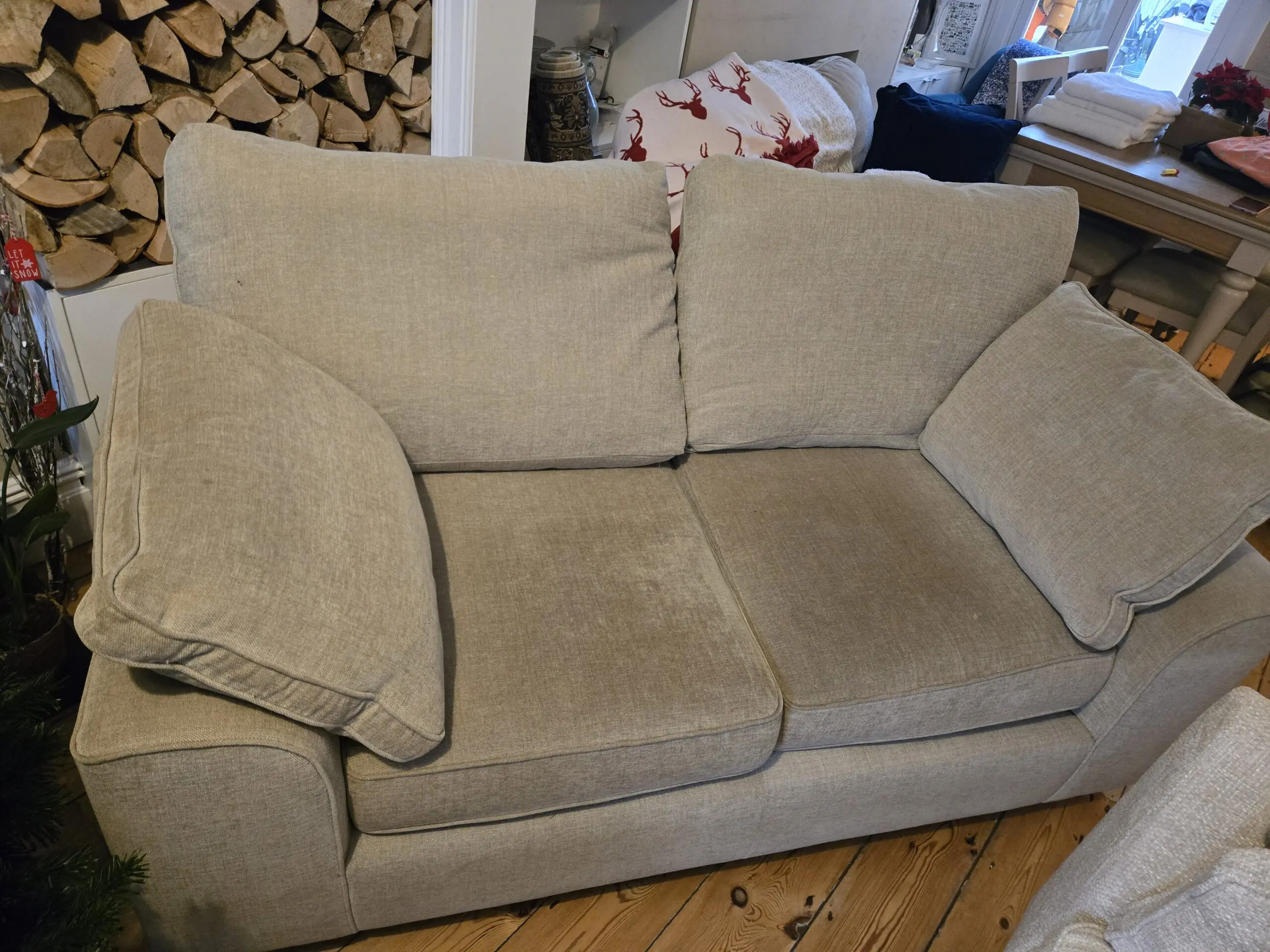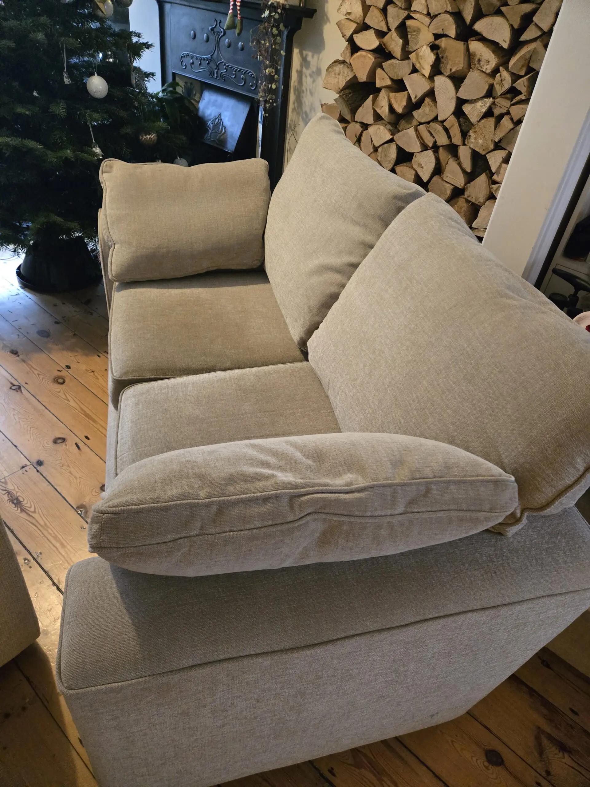 2 seater beige sofa. Good condition, couple of small marks but no tears or anything .