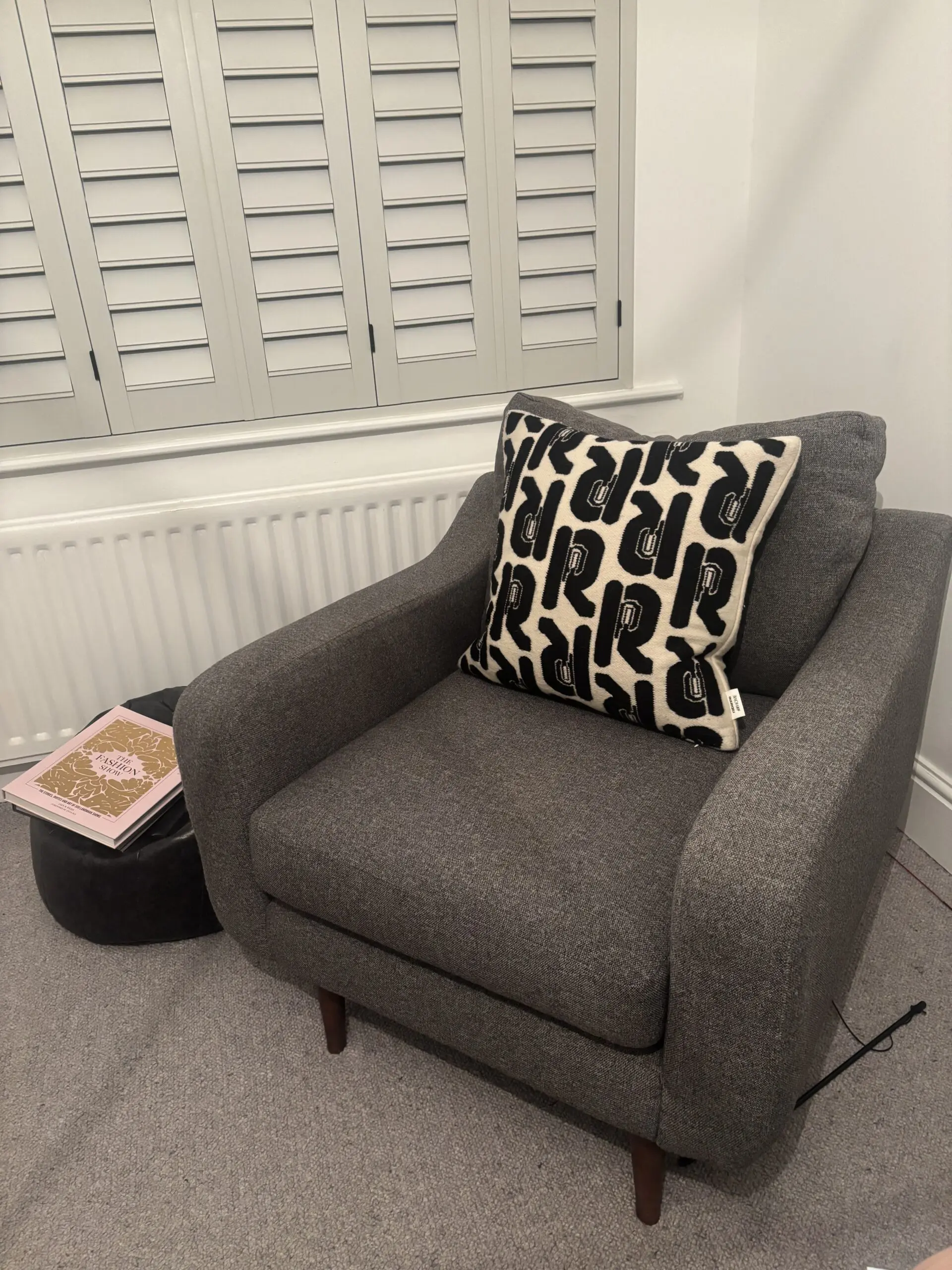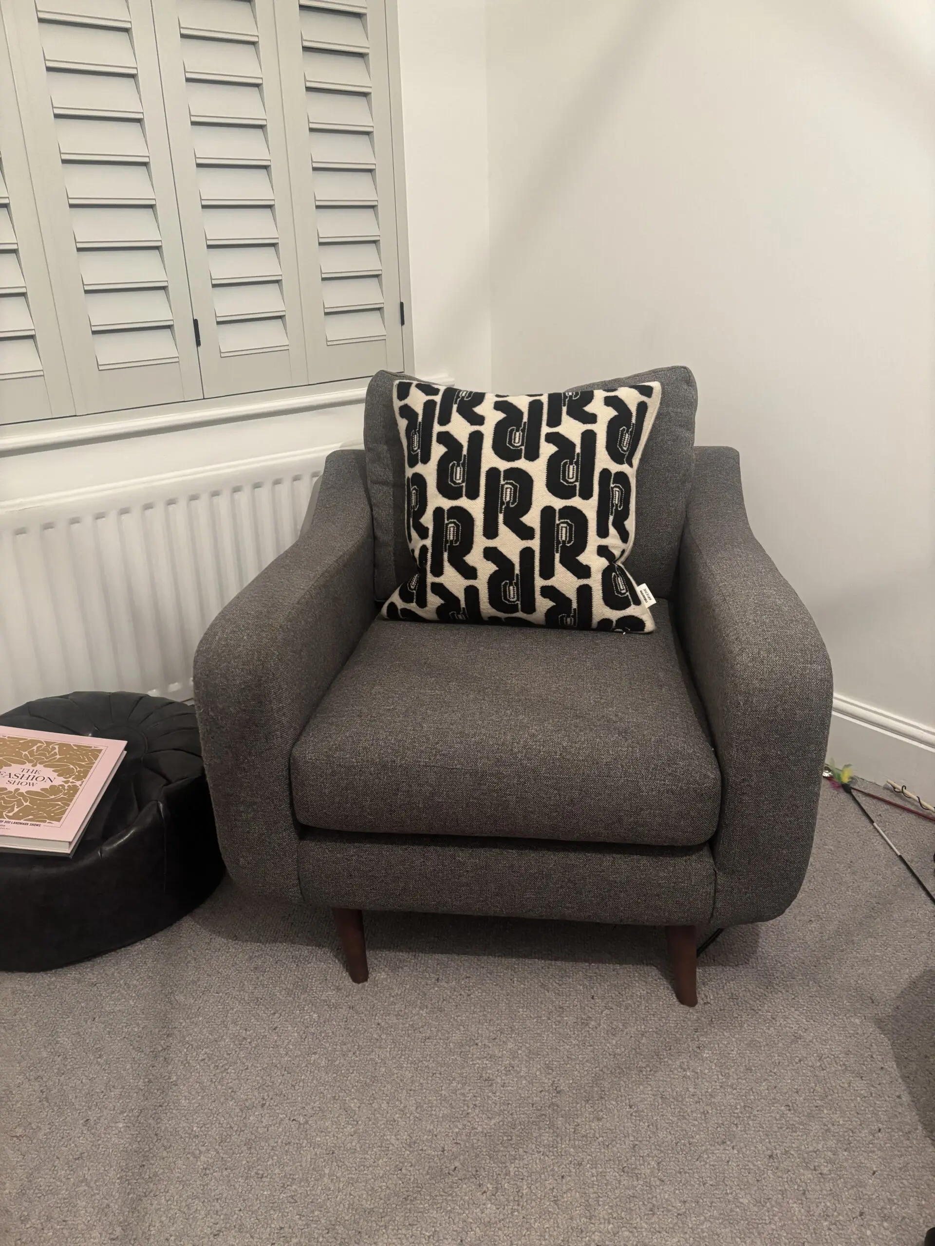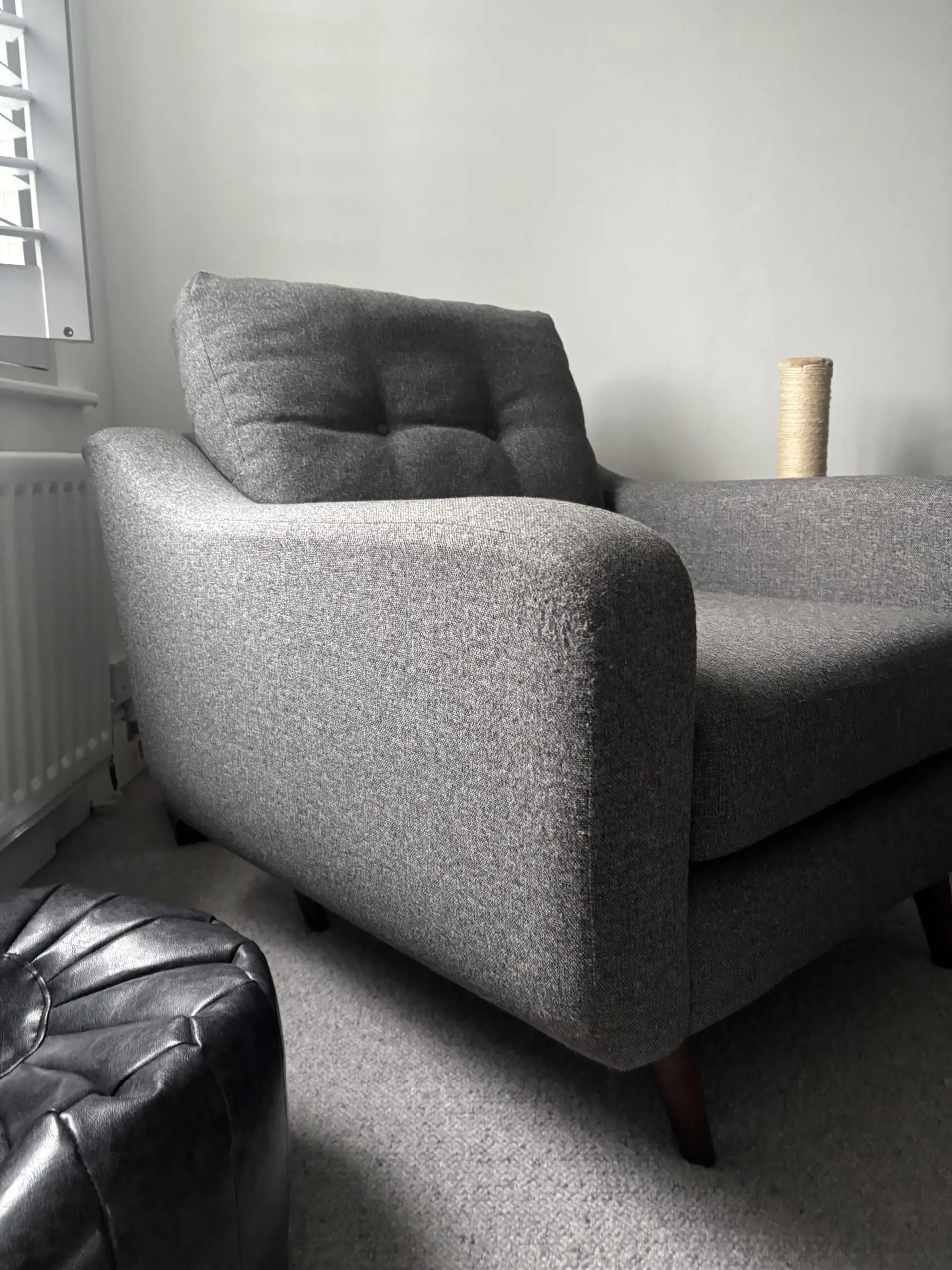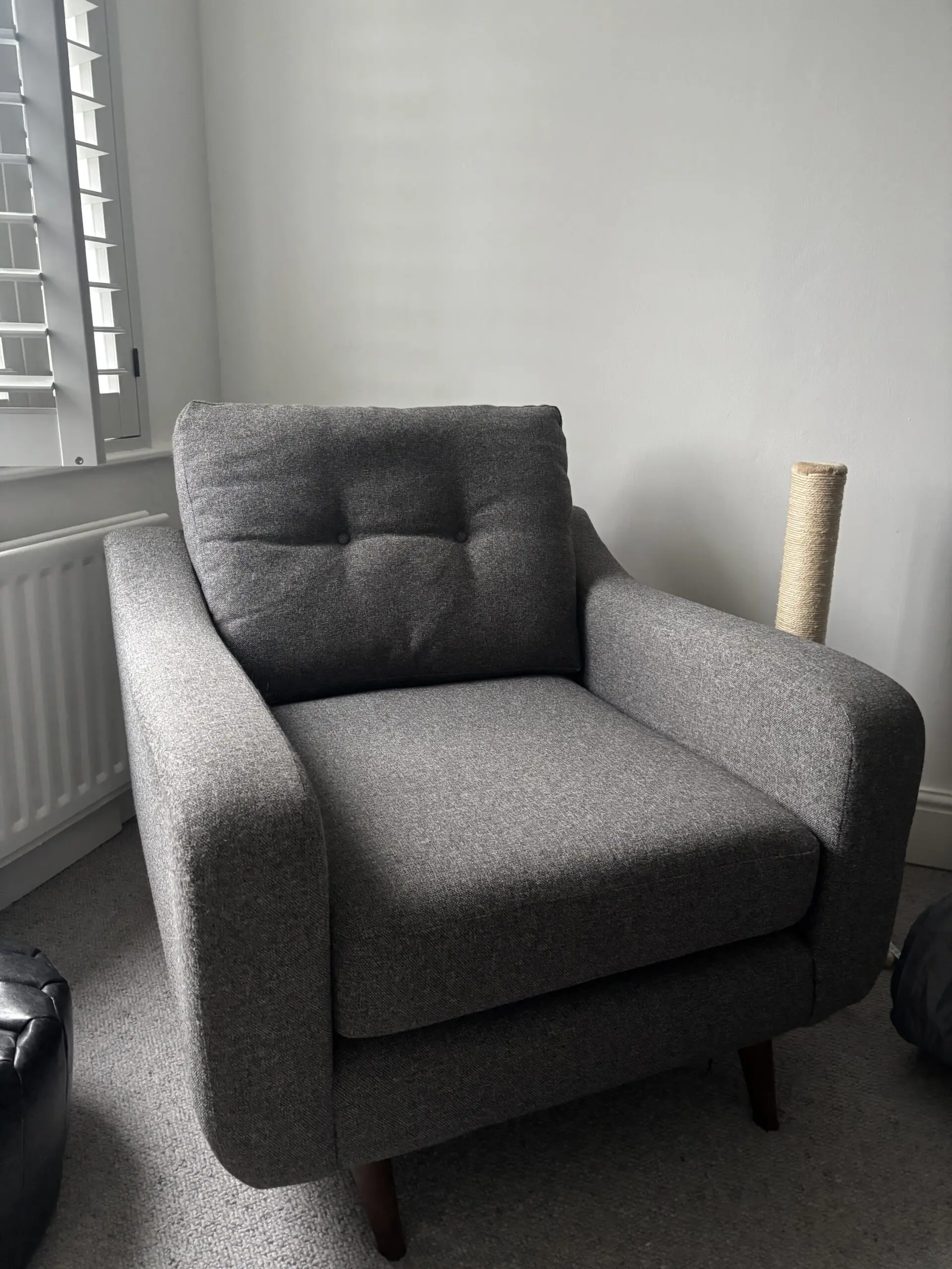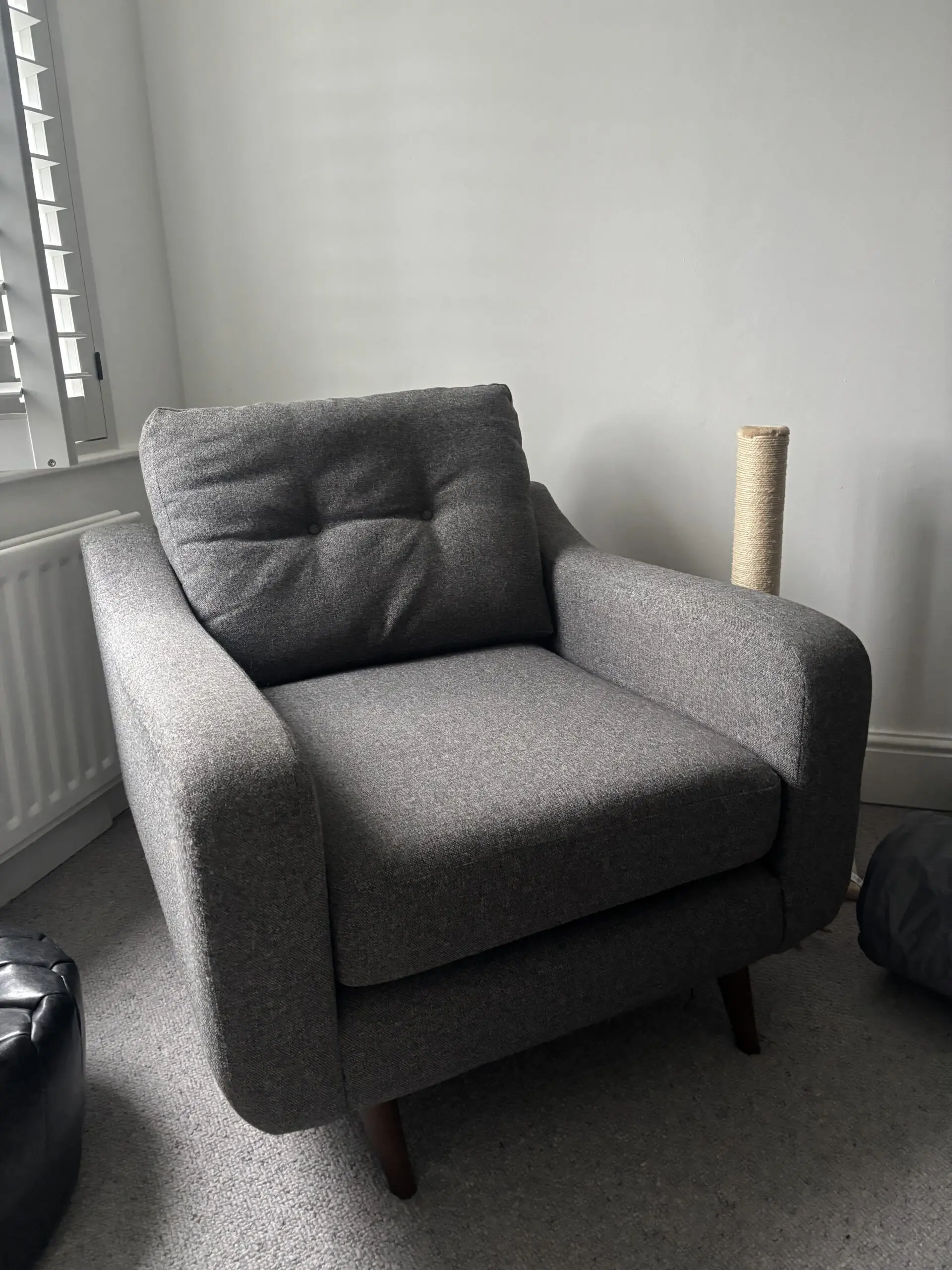 The Myers range from barker & stonehouse is still available to purchase. This has only ever been in a one person household. In a hard wearing upholstery grey fabric. Complete with wooden feet the style is very contemporary