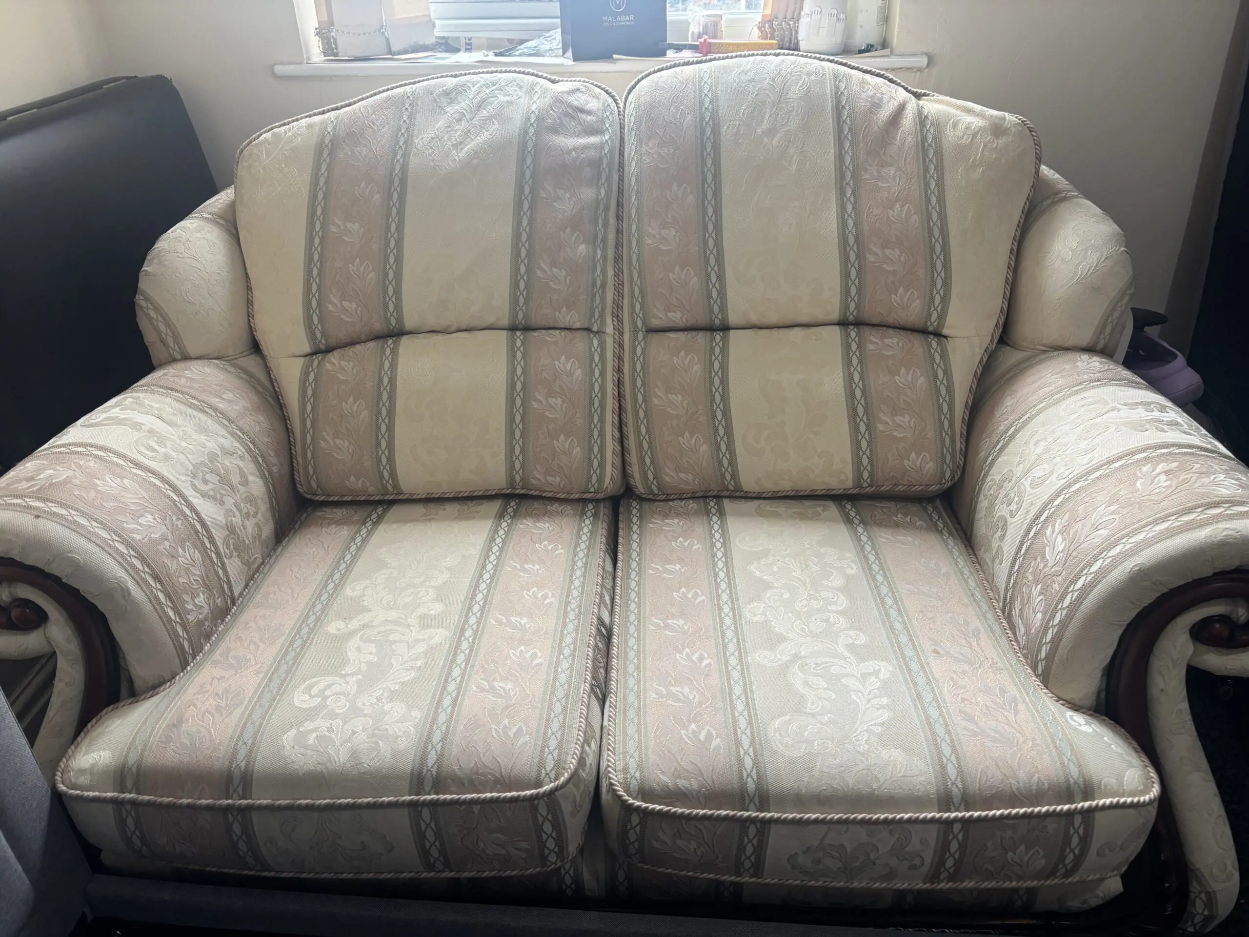 The sofa and chair I bought was as described by the seller - excellent condition. Delivery was quickly arranged and without any incidents. I was kept well informed of the delivery time on the day. Highly recommended.