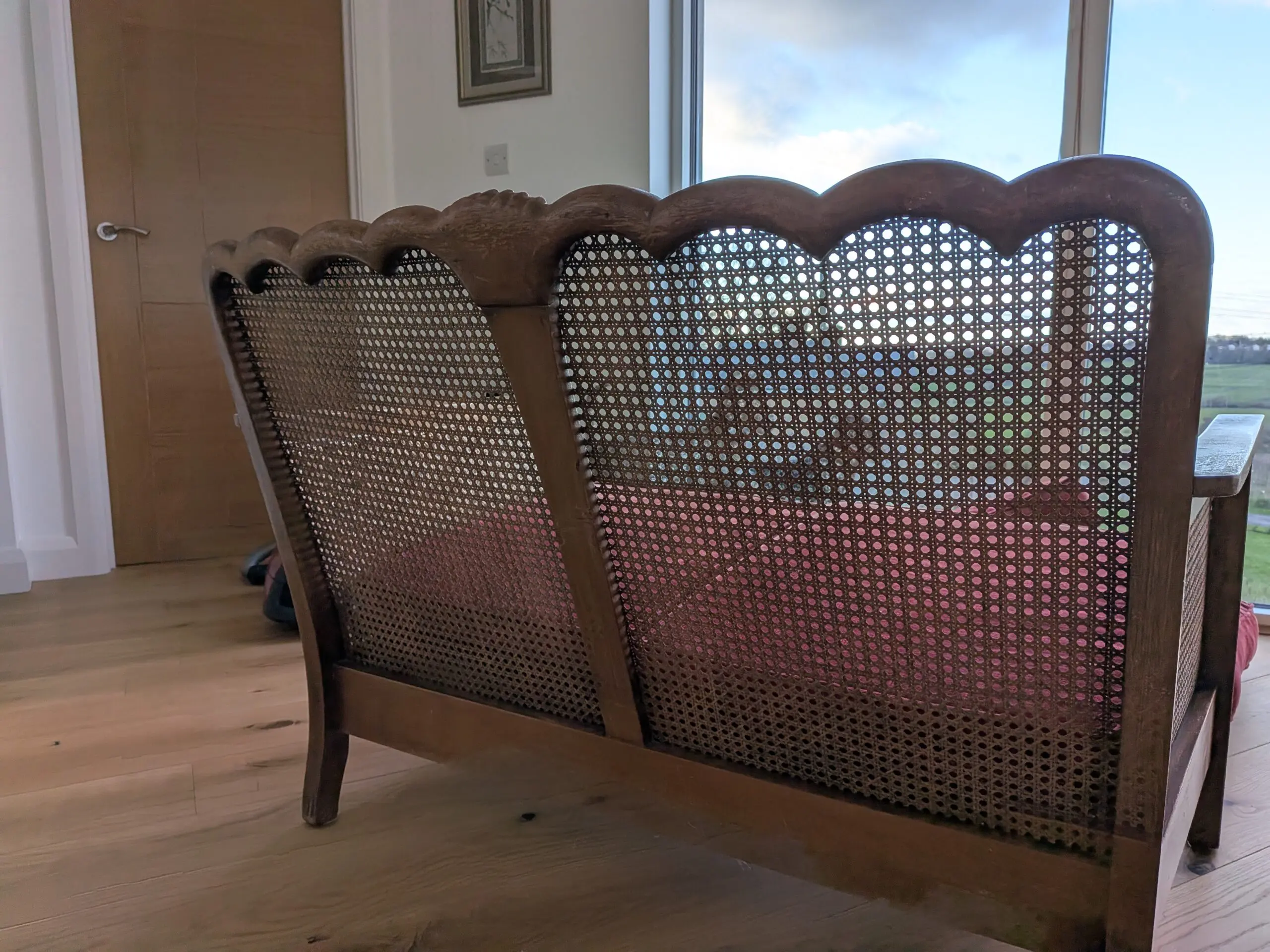 Vintage 2 seater Bergere sofa.
