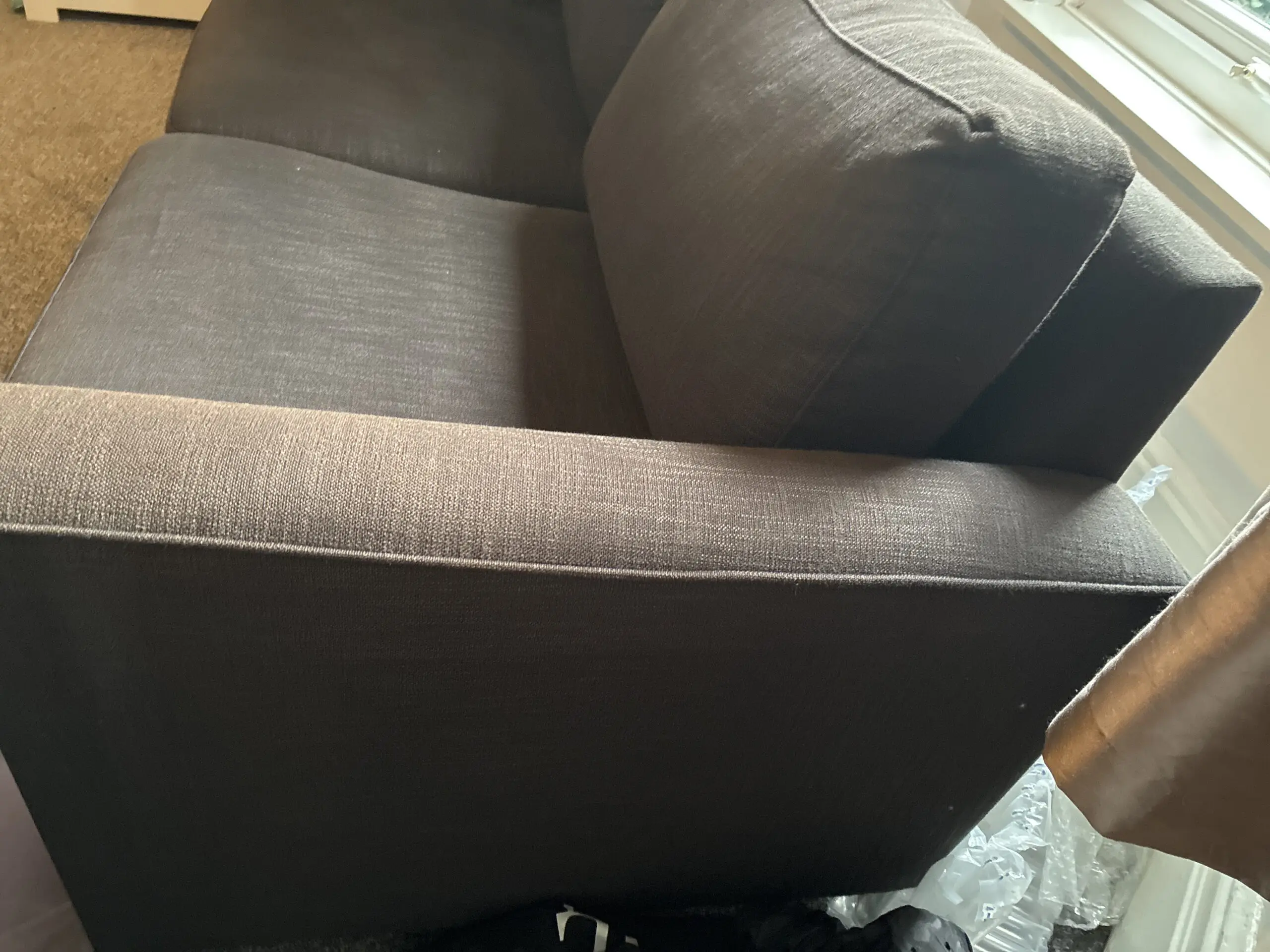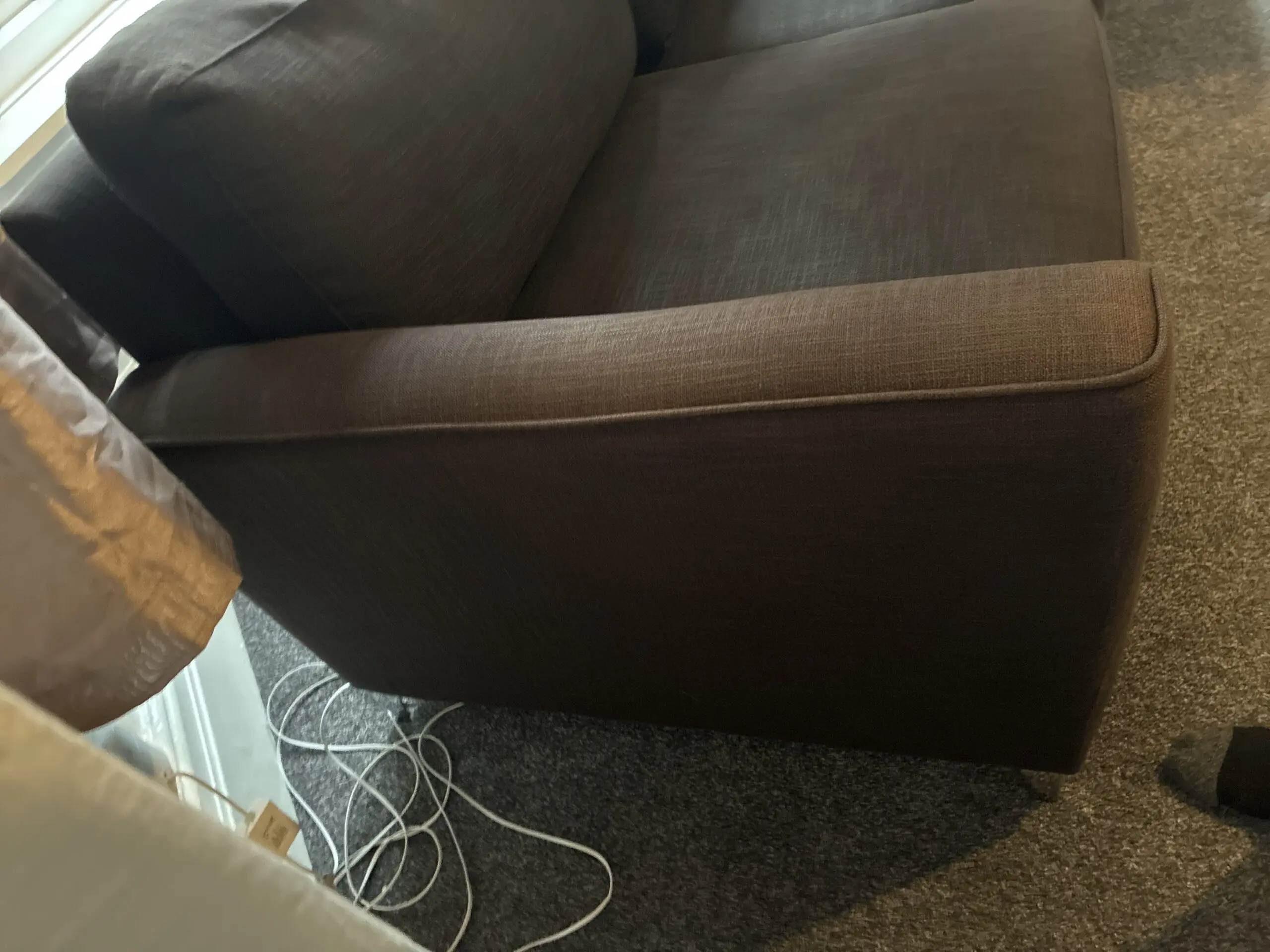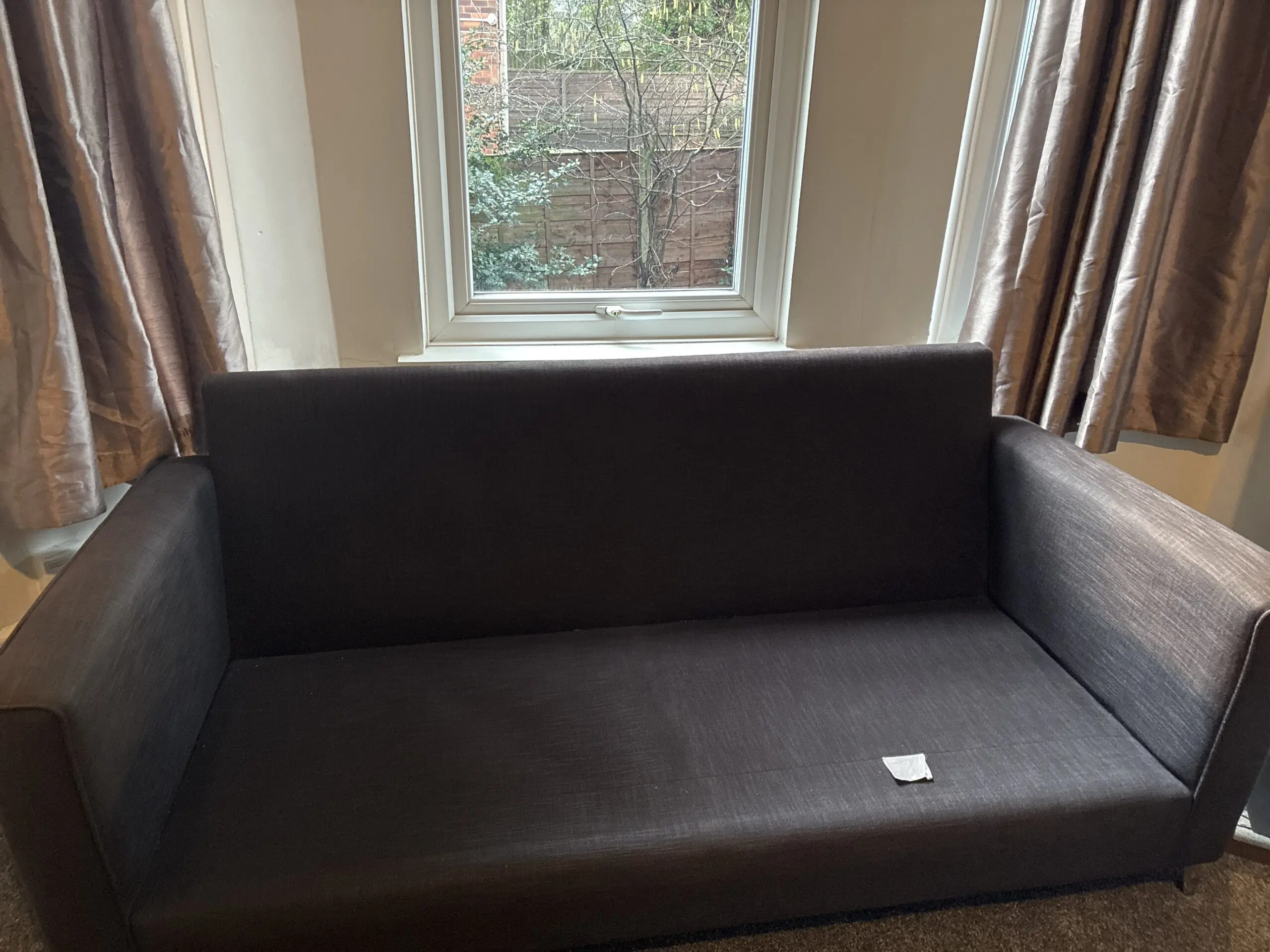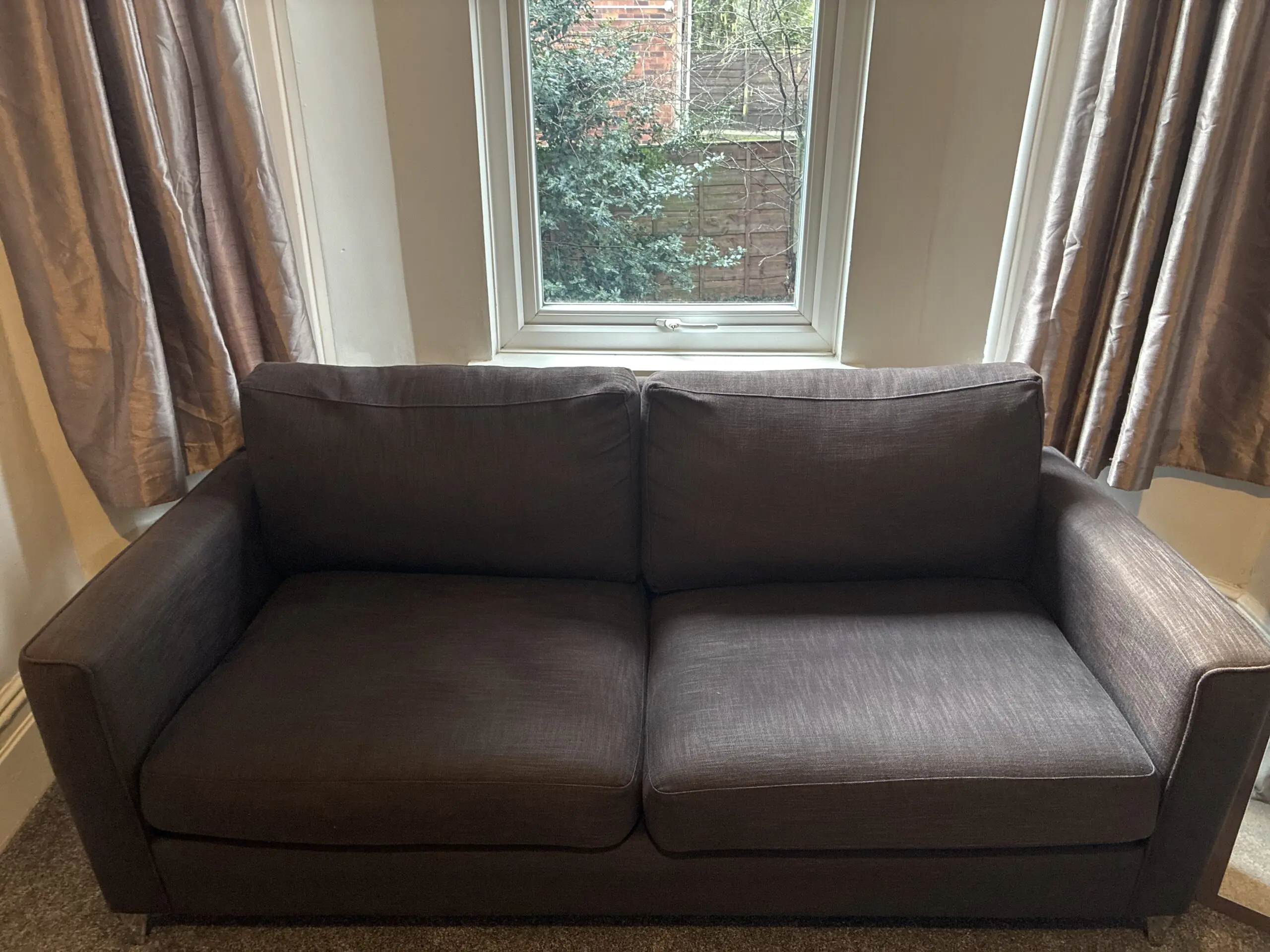 Sofa was acquired when family member bought a new build show home and paid for the furniture to remain in the house. Unsure of brand as it was from a show home.