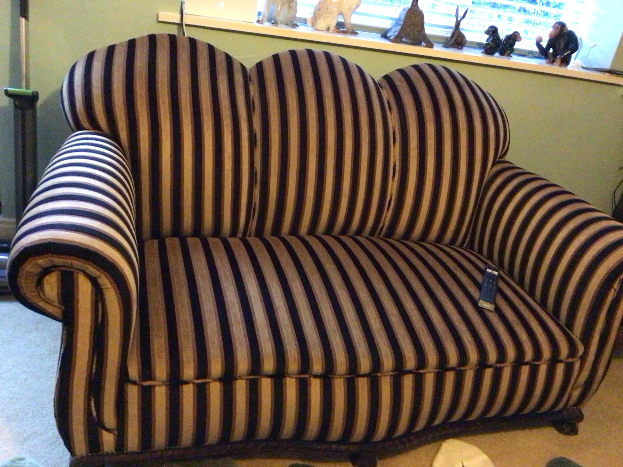 Art deco striped gold and black two seater sofa excellent condition it really re upholstered by master upholsterers
