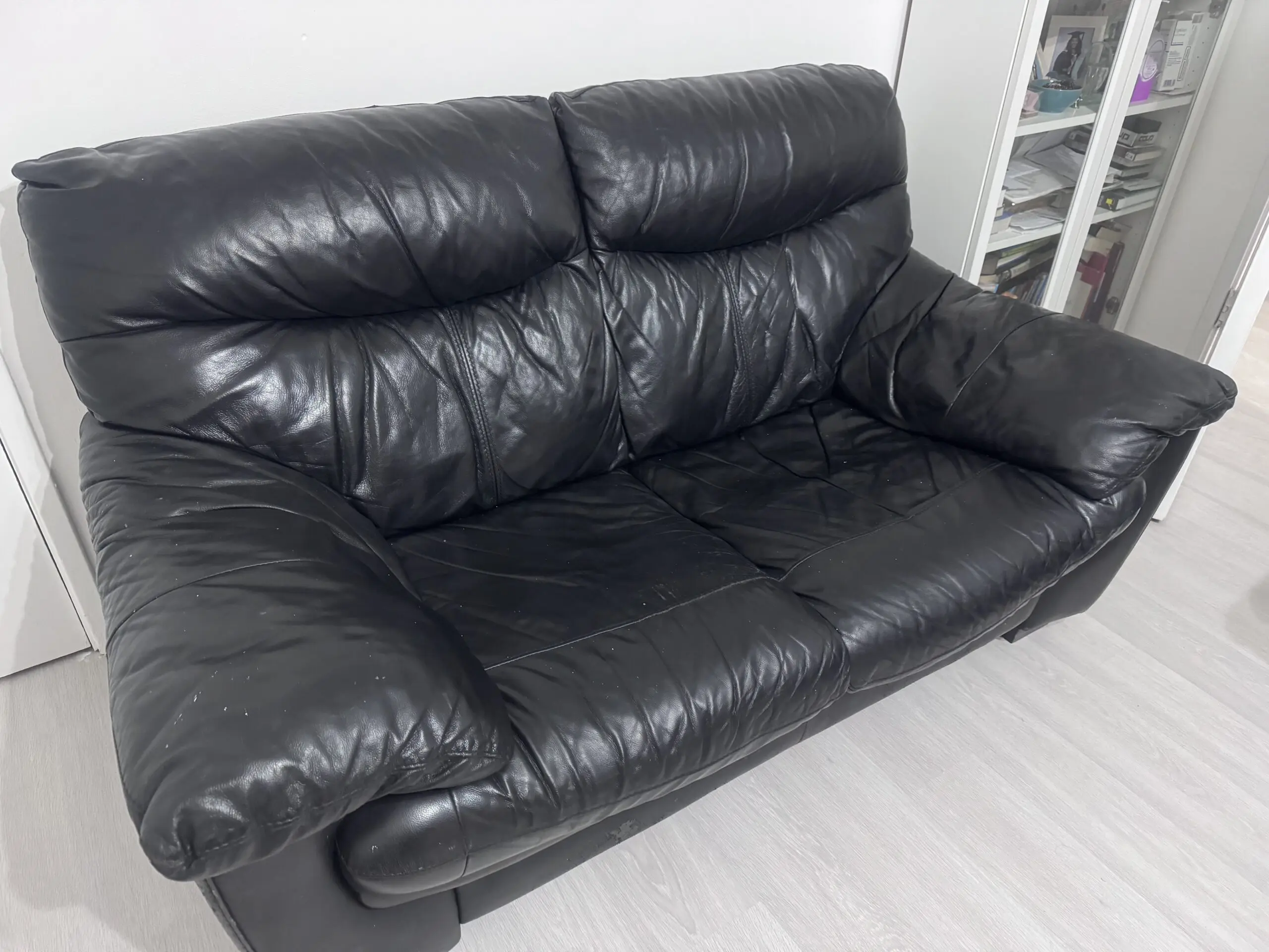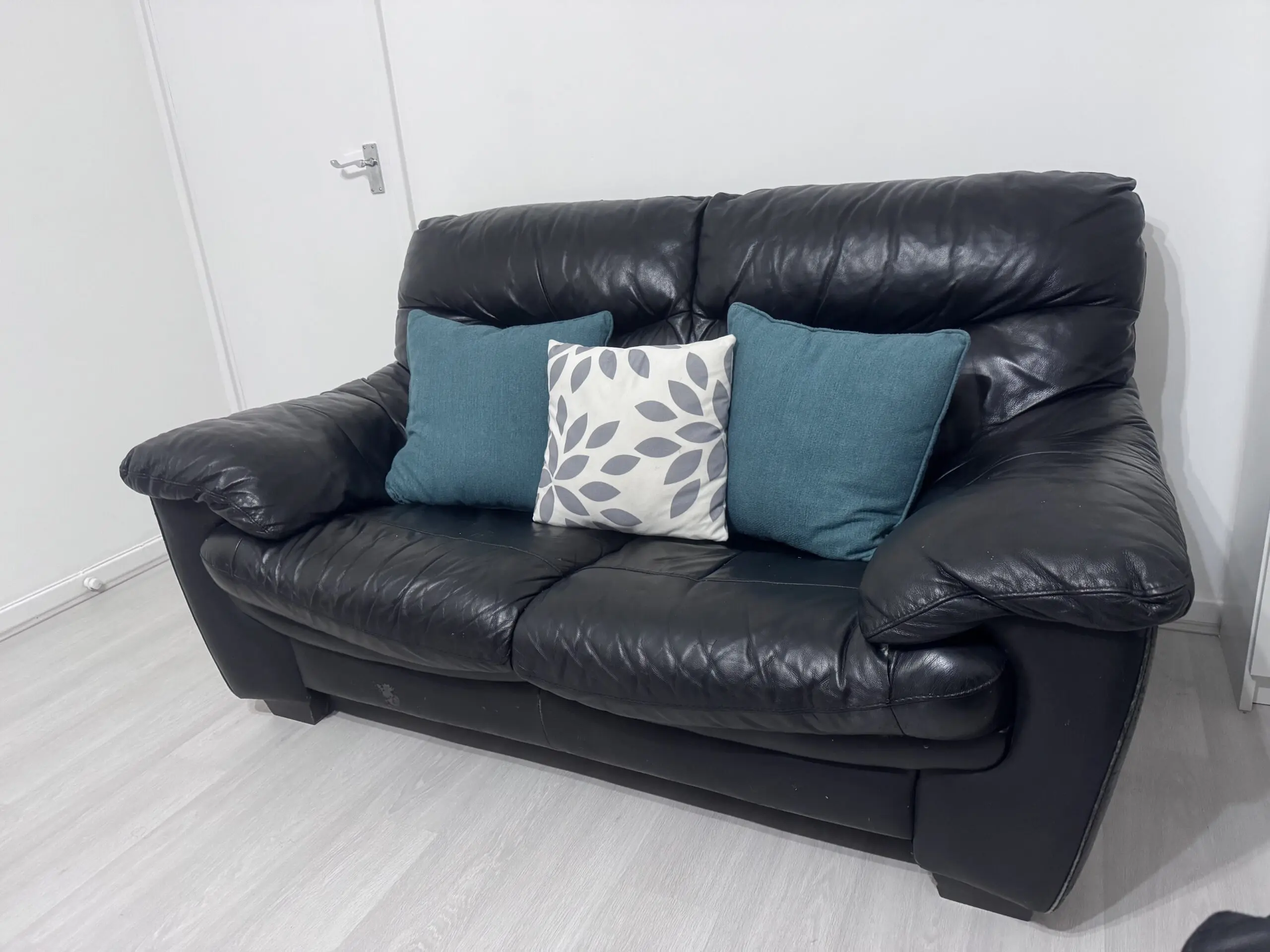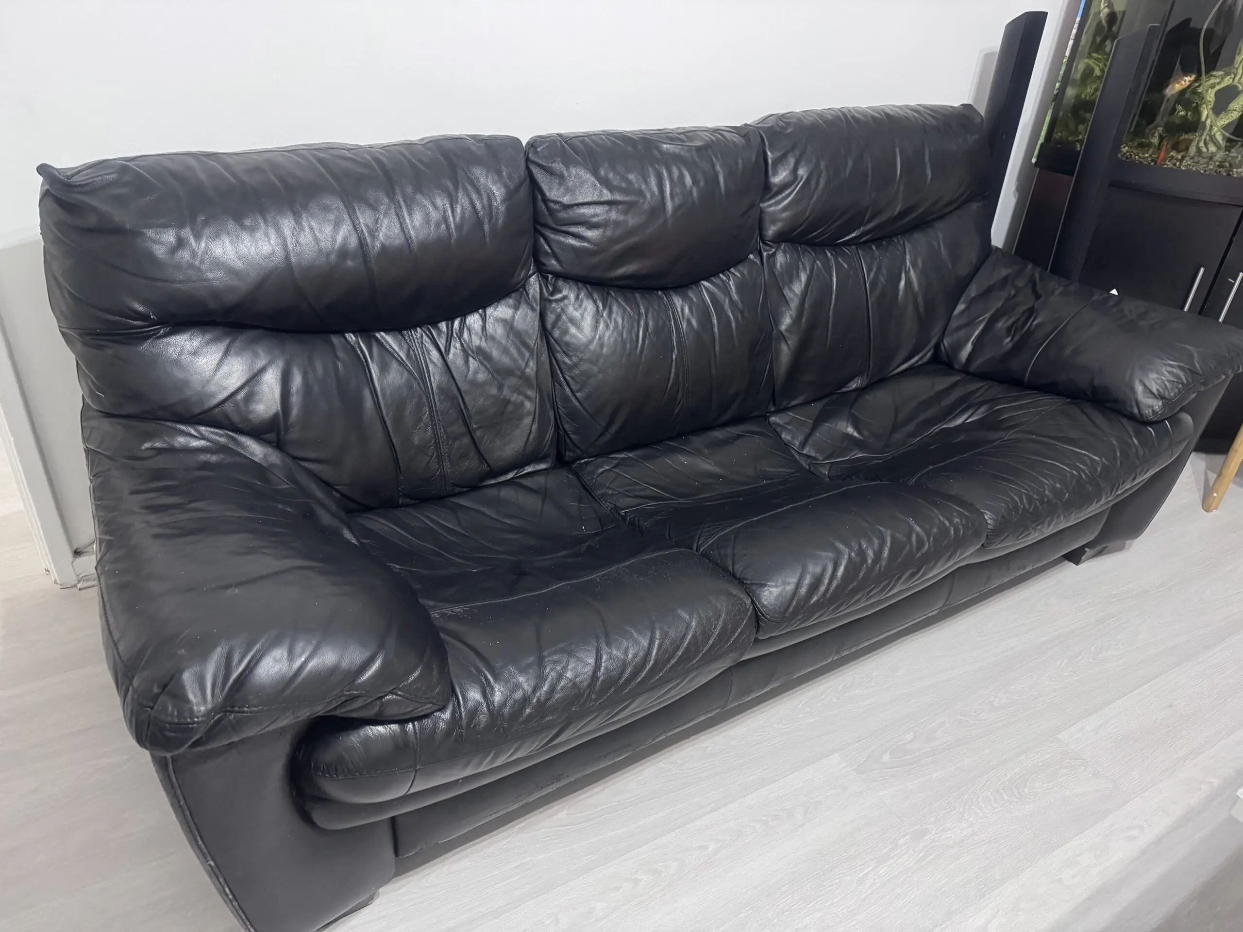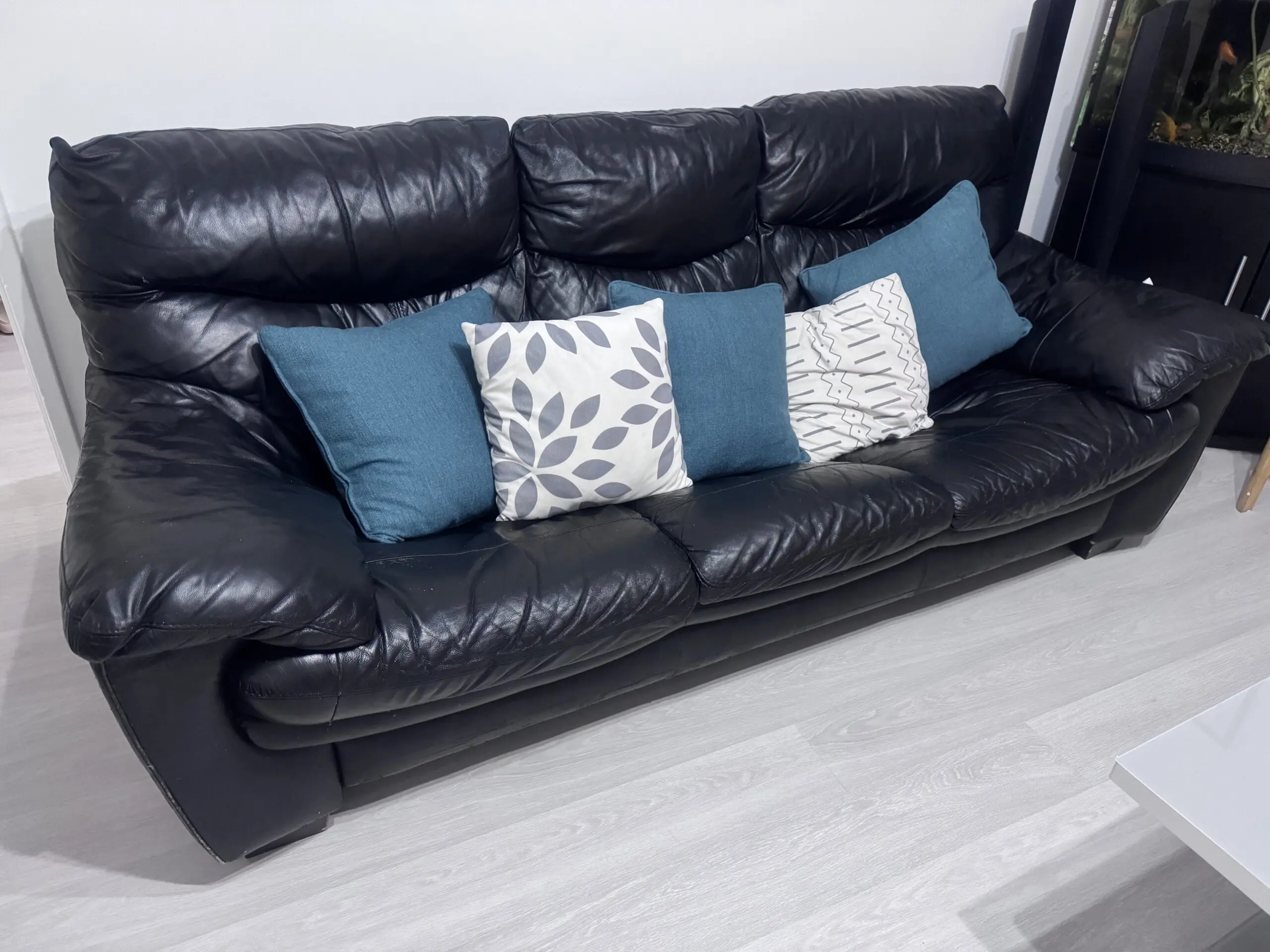 Real Black leather 2-seater and 3-seater sofas for sale.