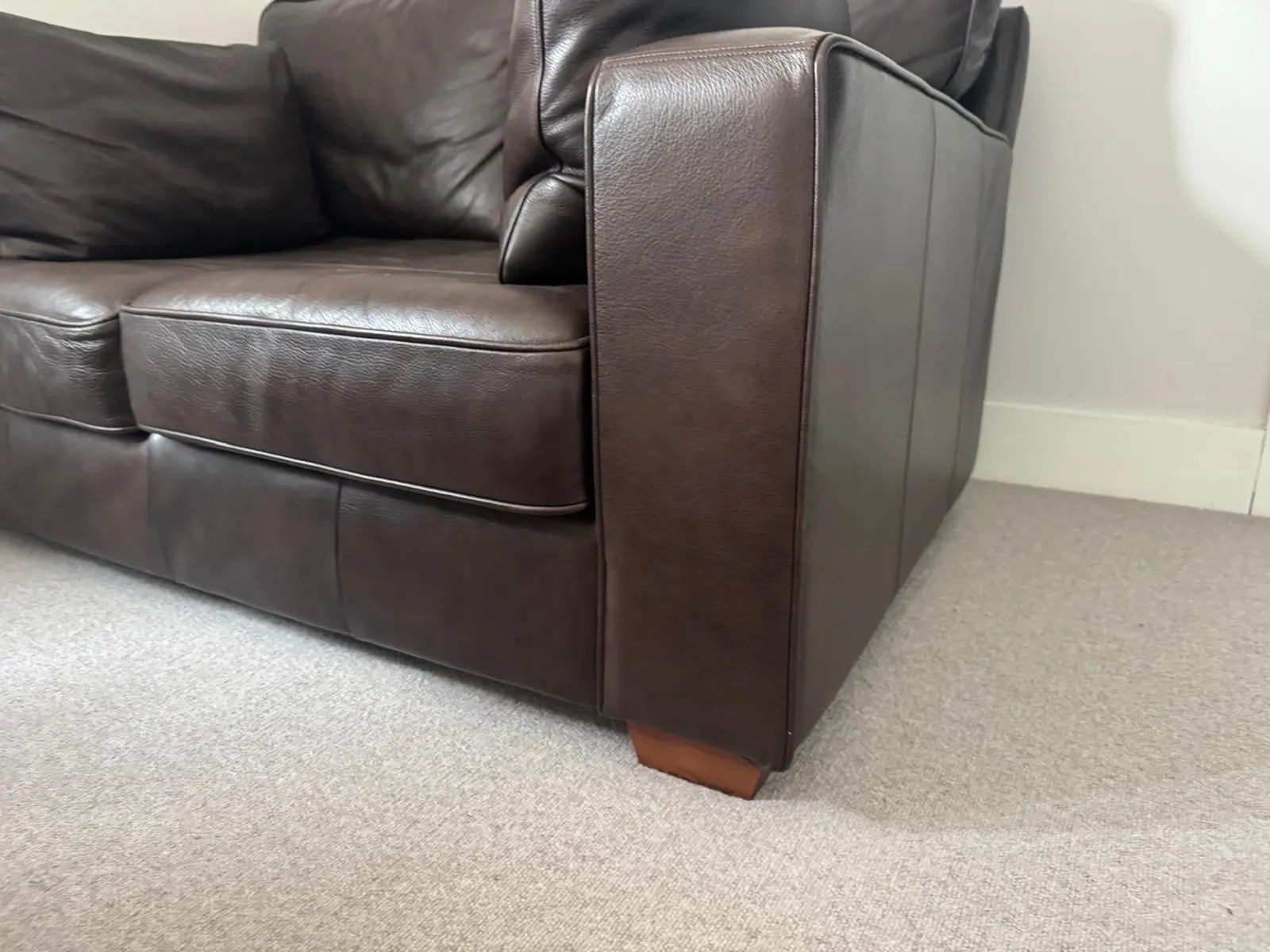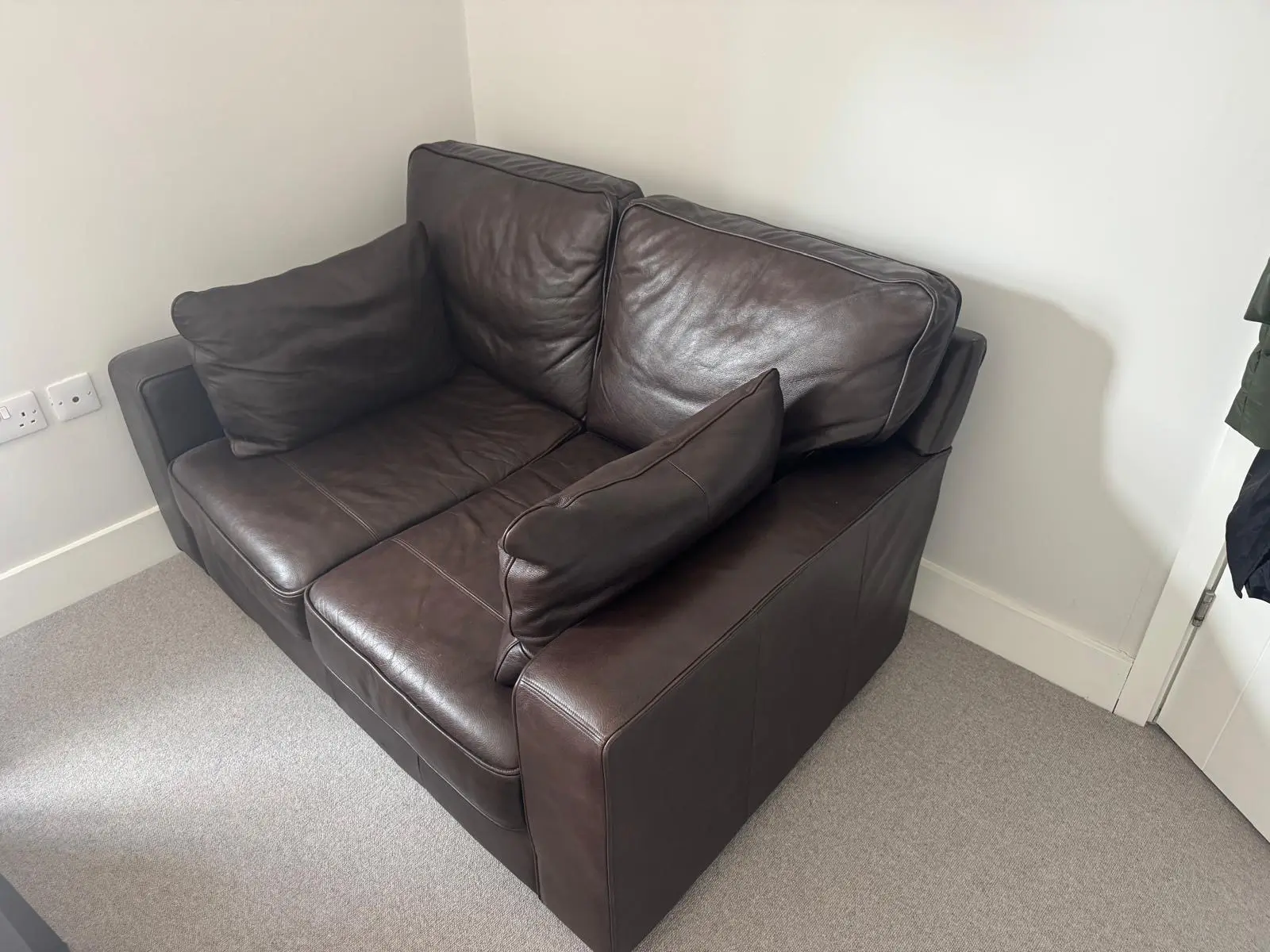 Brown 2 seater leather sofa, perfect condition, sits in a spare room, never used