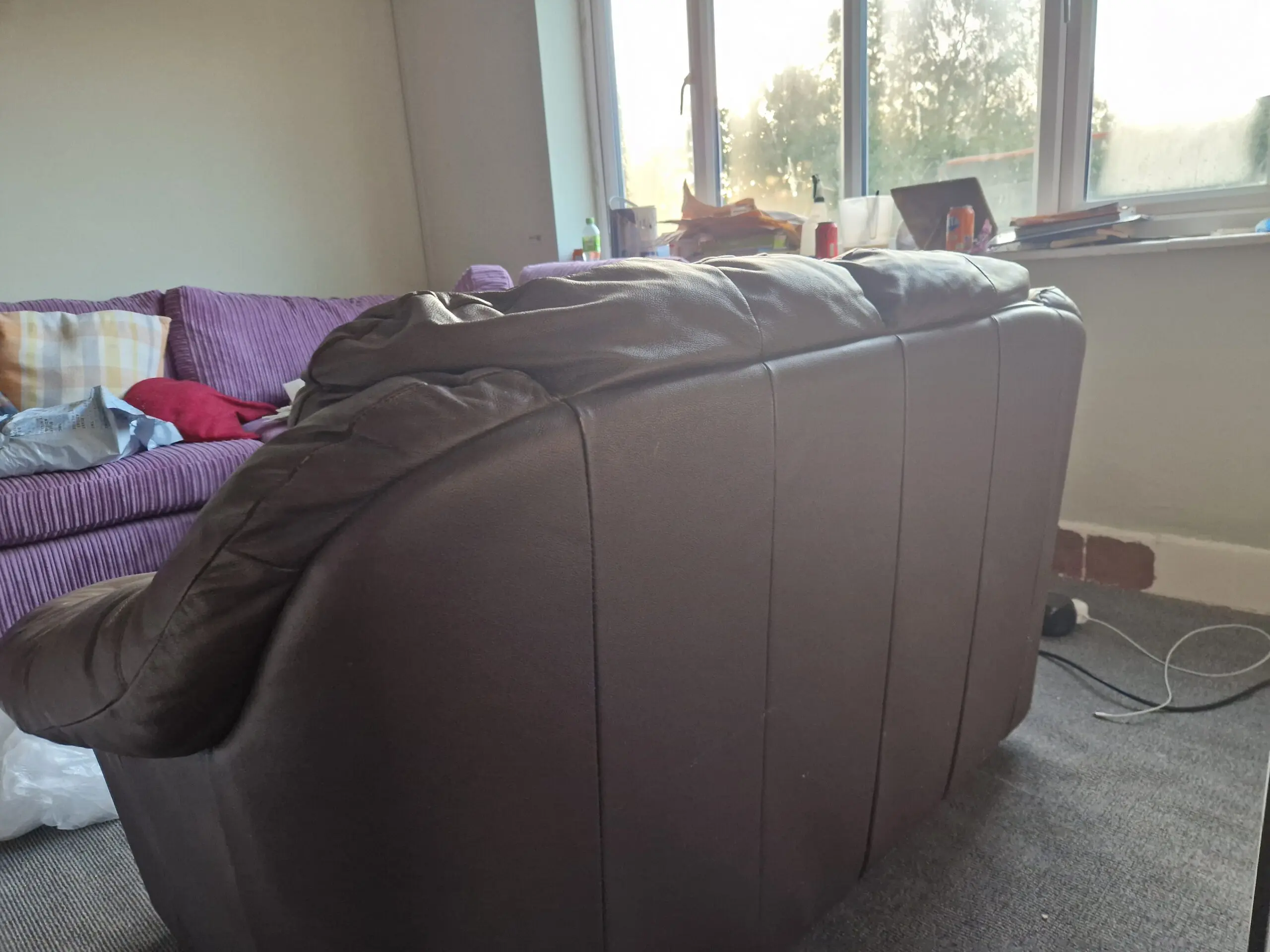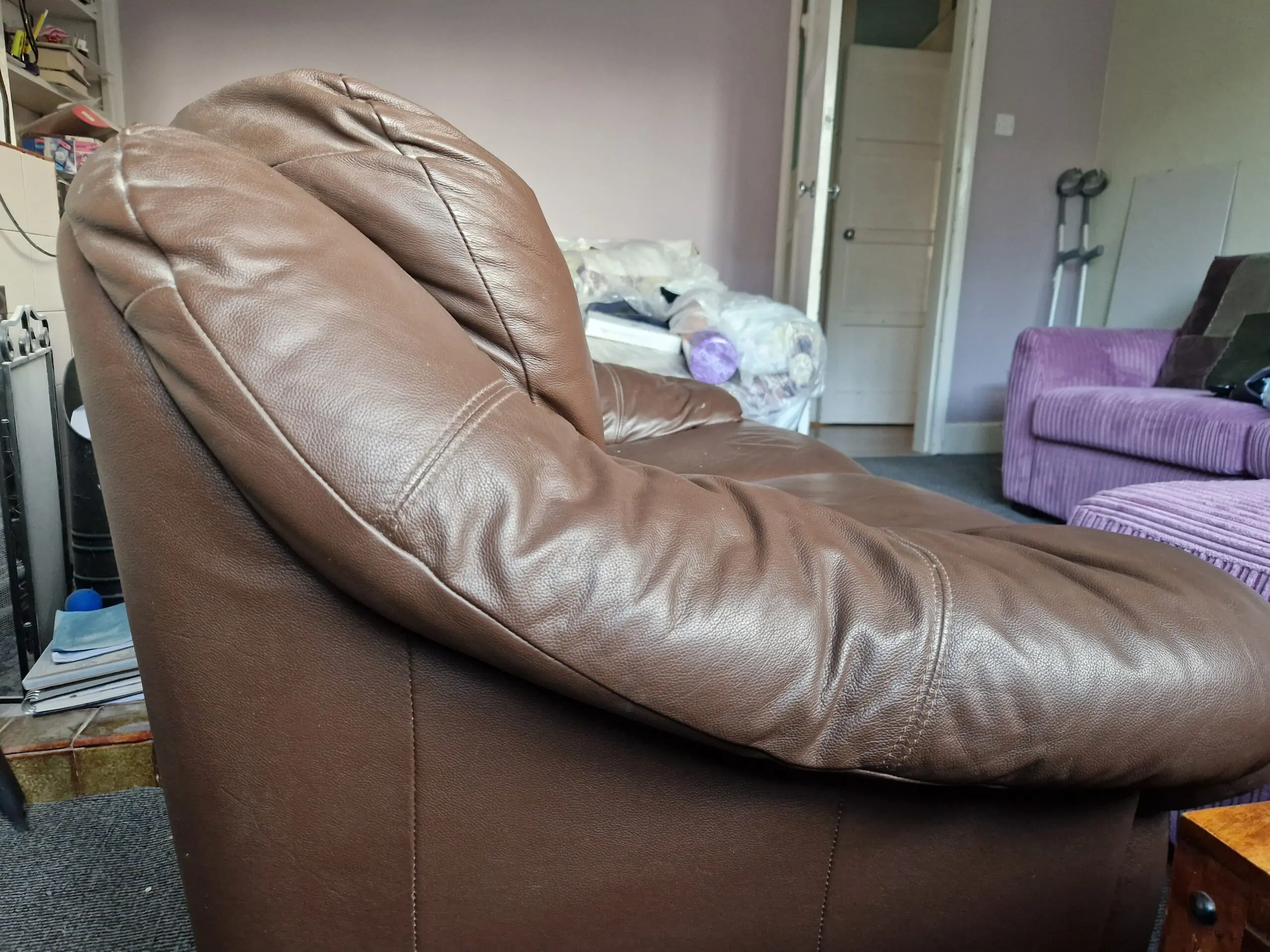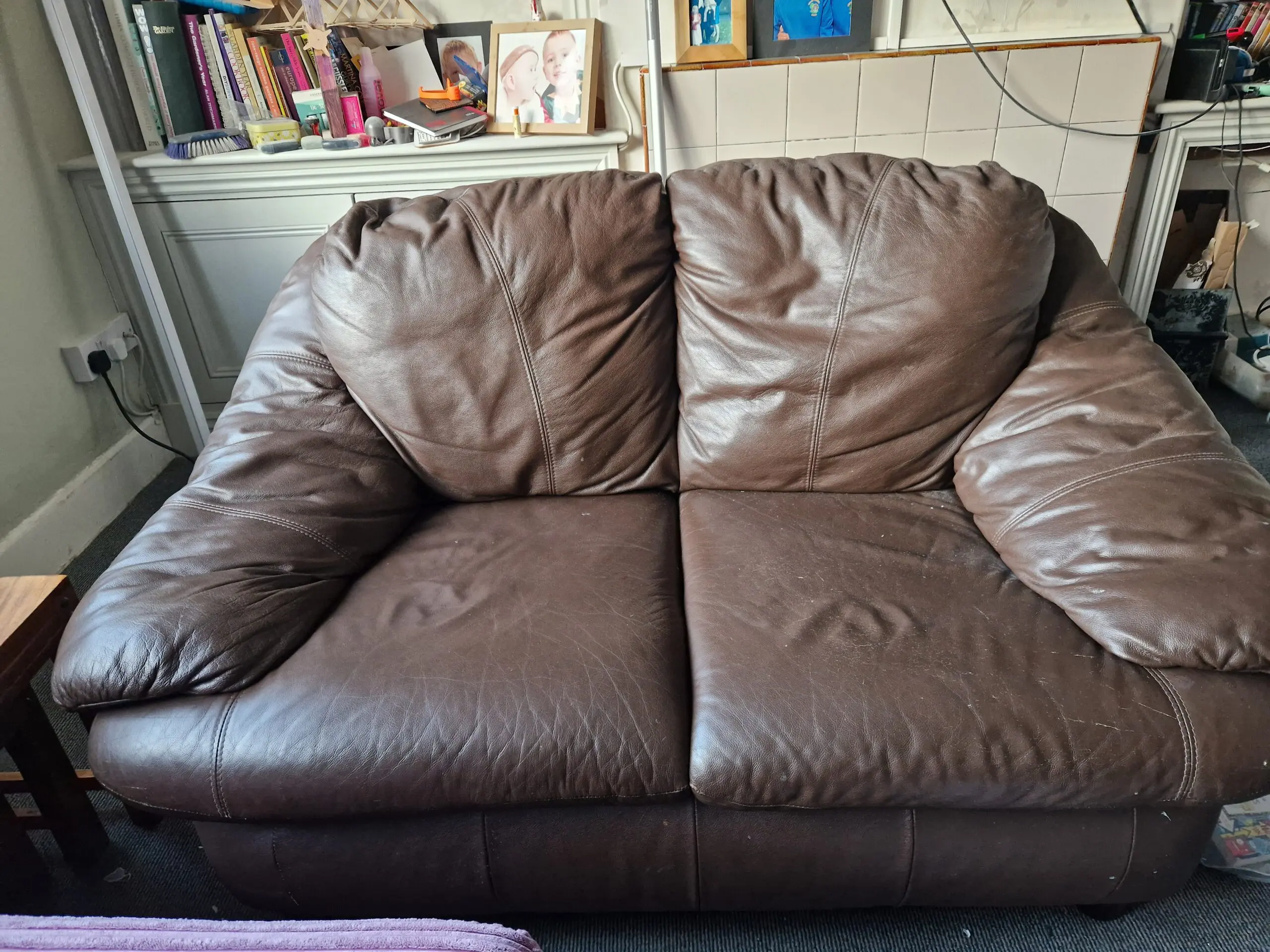 Brown leather 2 seater sofa. Barely used as we used the main sofa, so tge padding is in excellent condition & firm.
