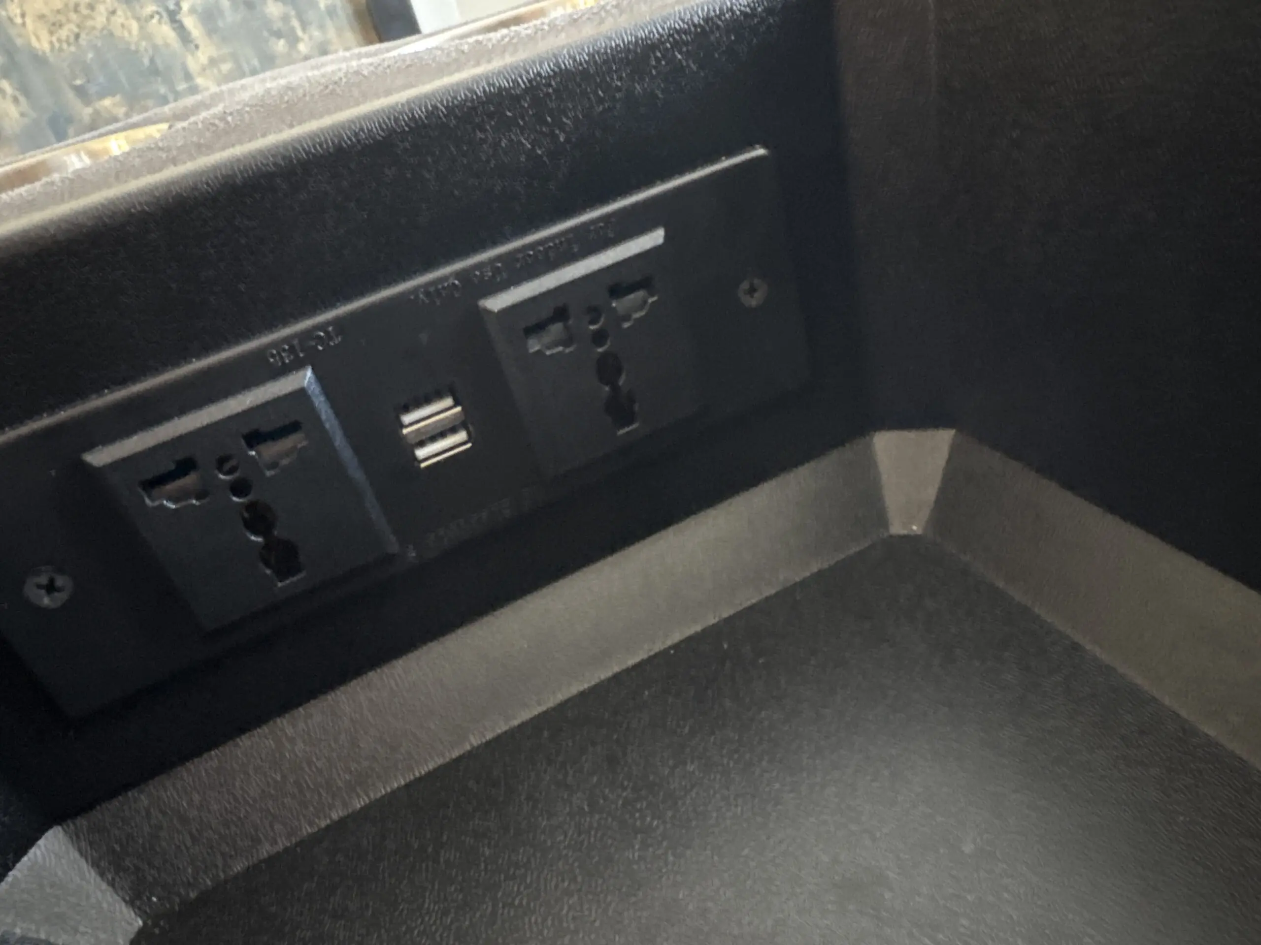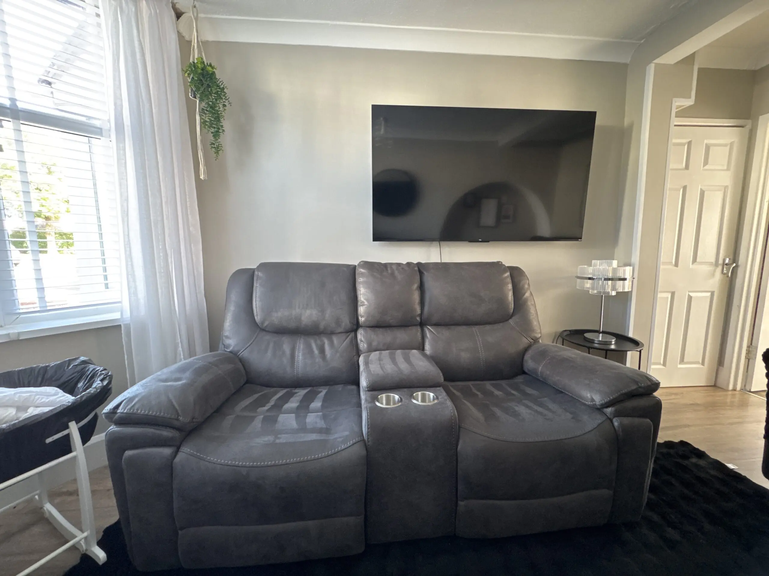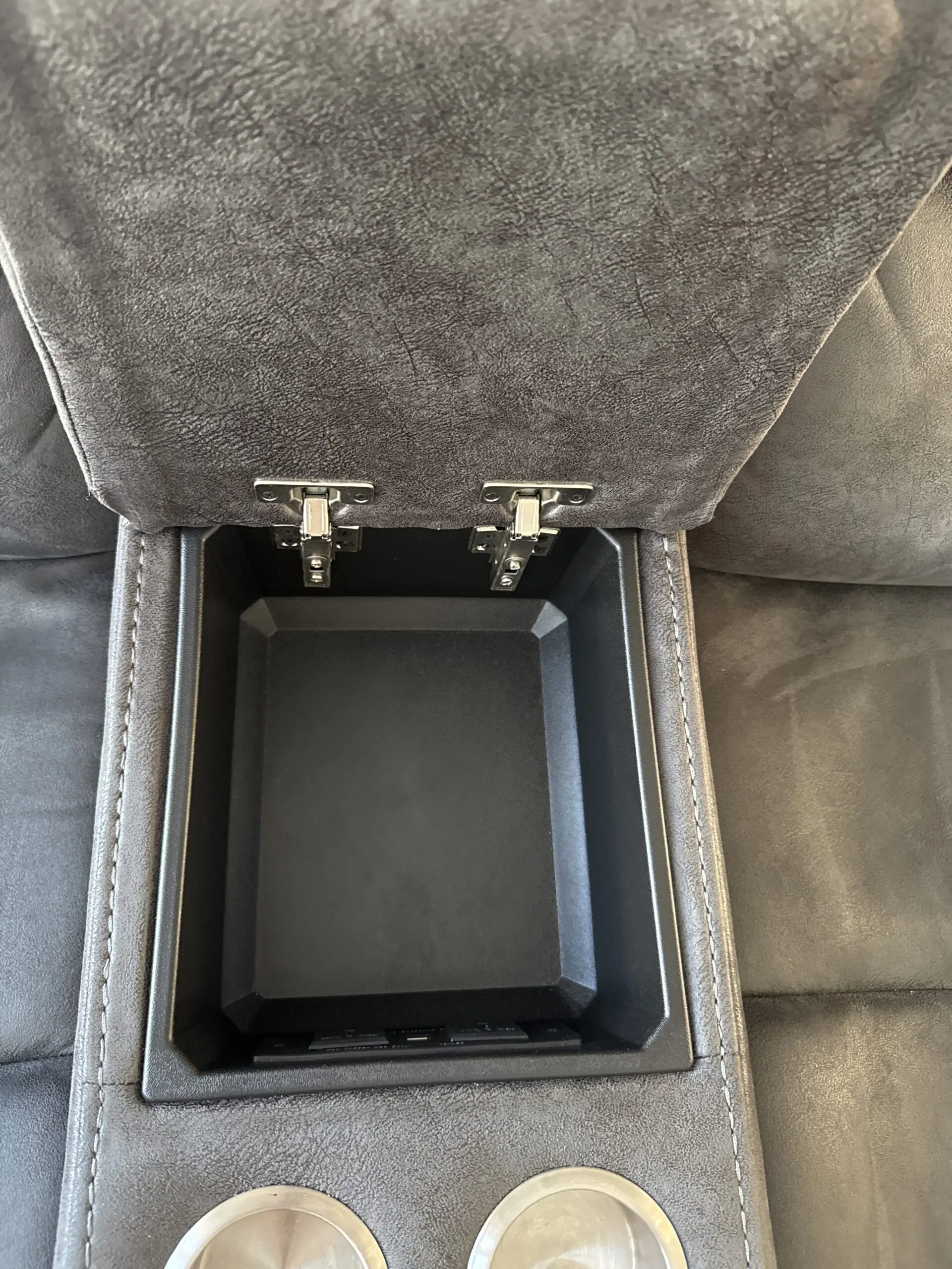 Brown suede electric recliners with console middle sections drinks holders usb ports and plug sockets. Head rest reclines and also footrest