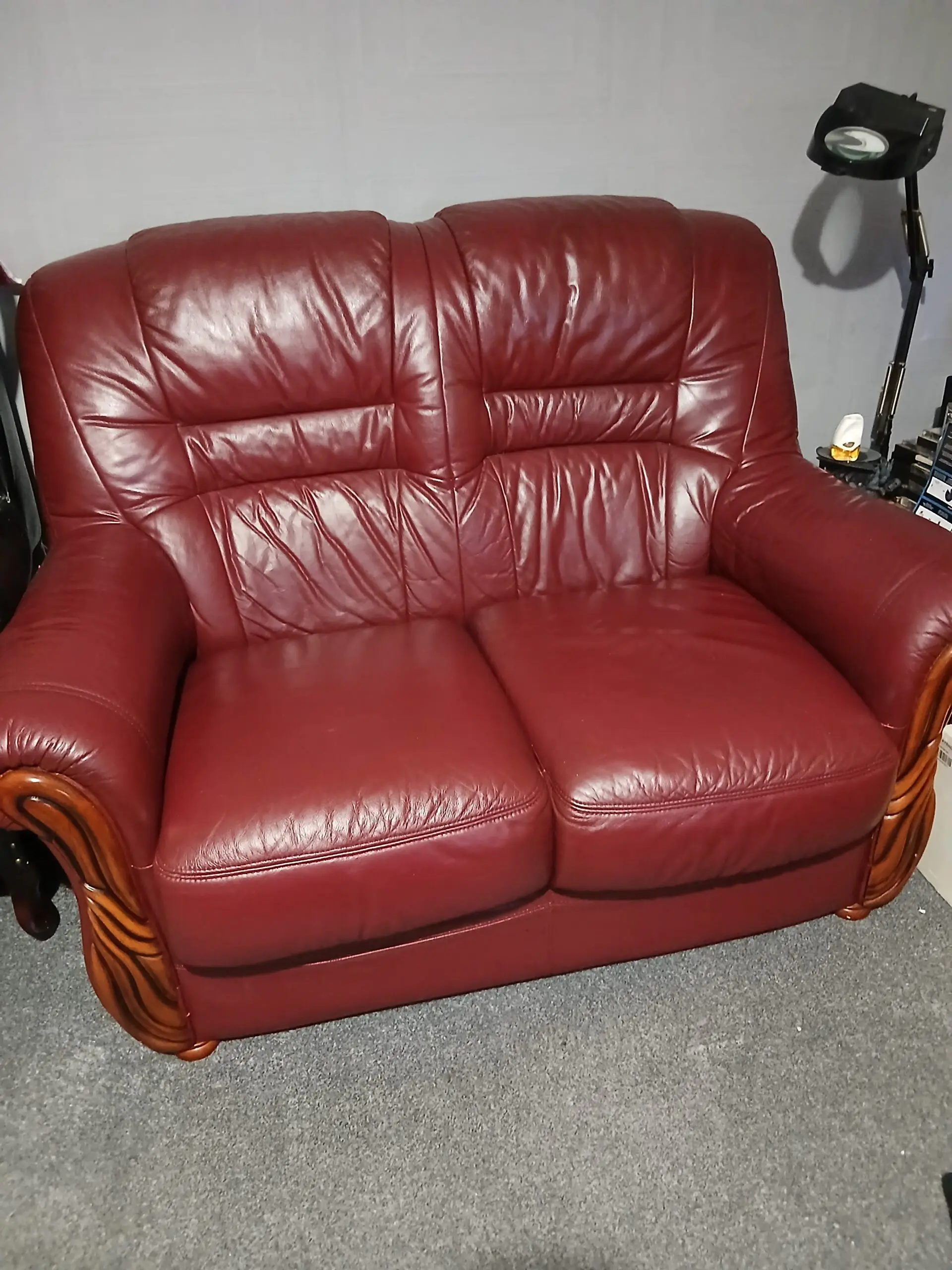 Burgundy leather 2 seater sofa