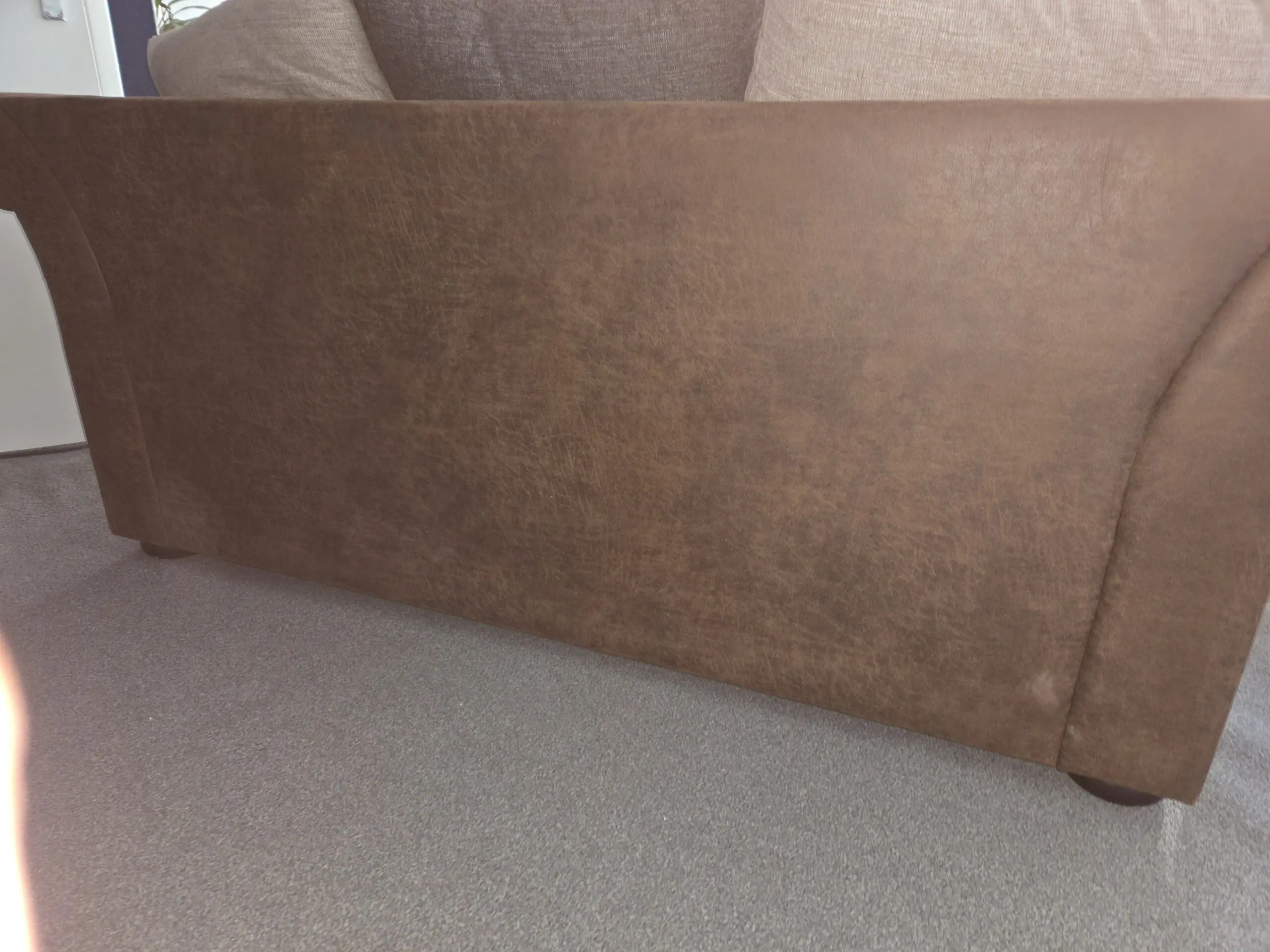 This sofa is in excellent condition. Well-cared for and comfortable to sit in. It’s made by the Swedish sofa manufacturer Burhéns and is a solid, well-made and sturdy sofa. It will last many, many years. It’s been in a second reception room without the usual everyday use most sofas endure.
