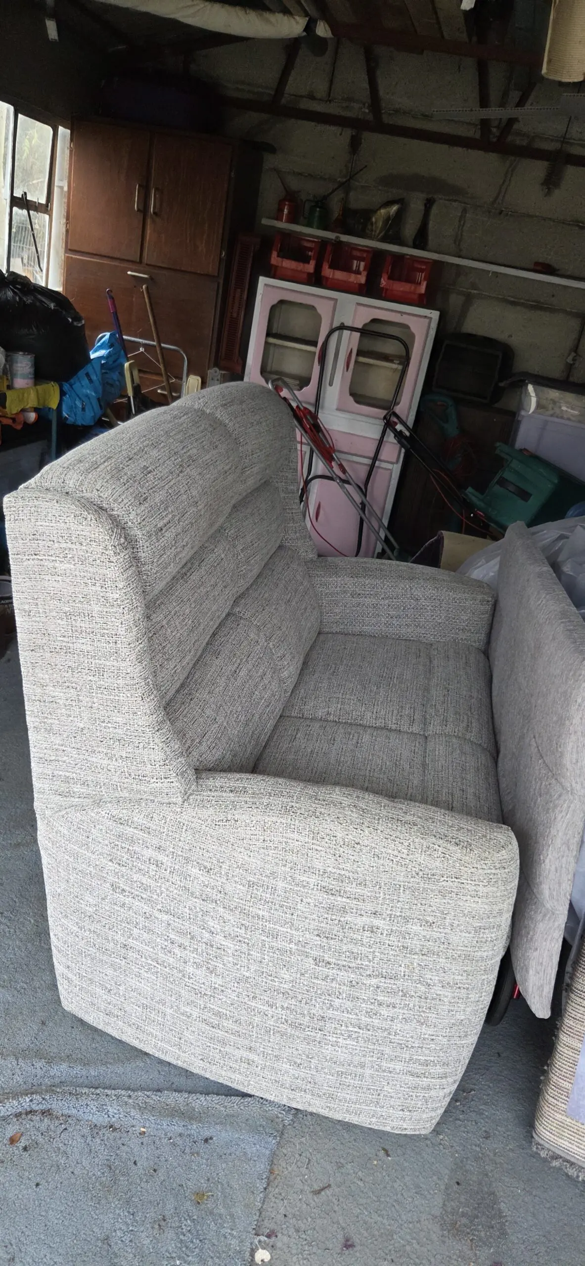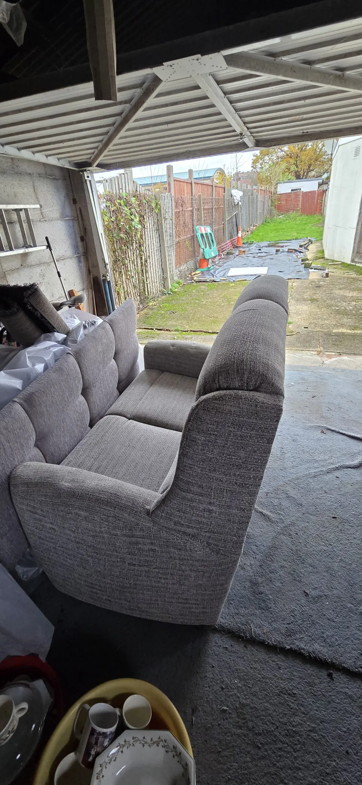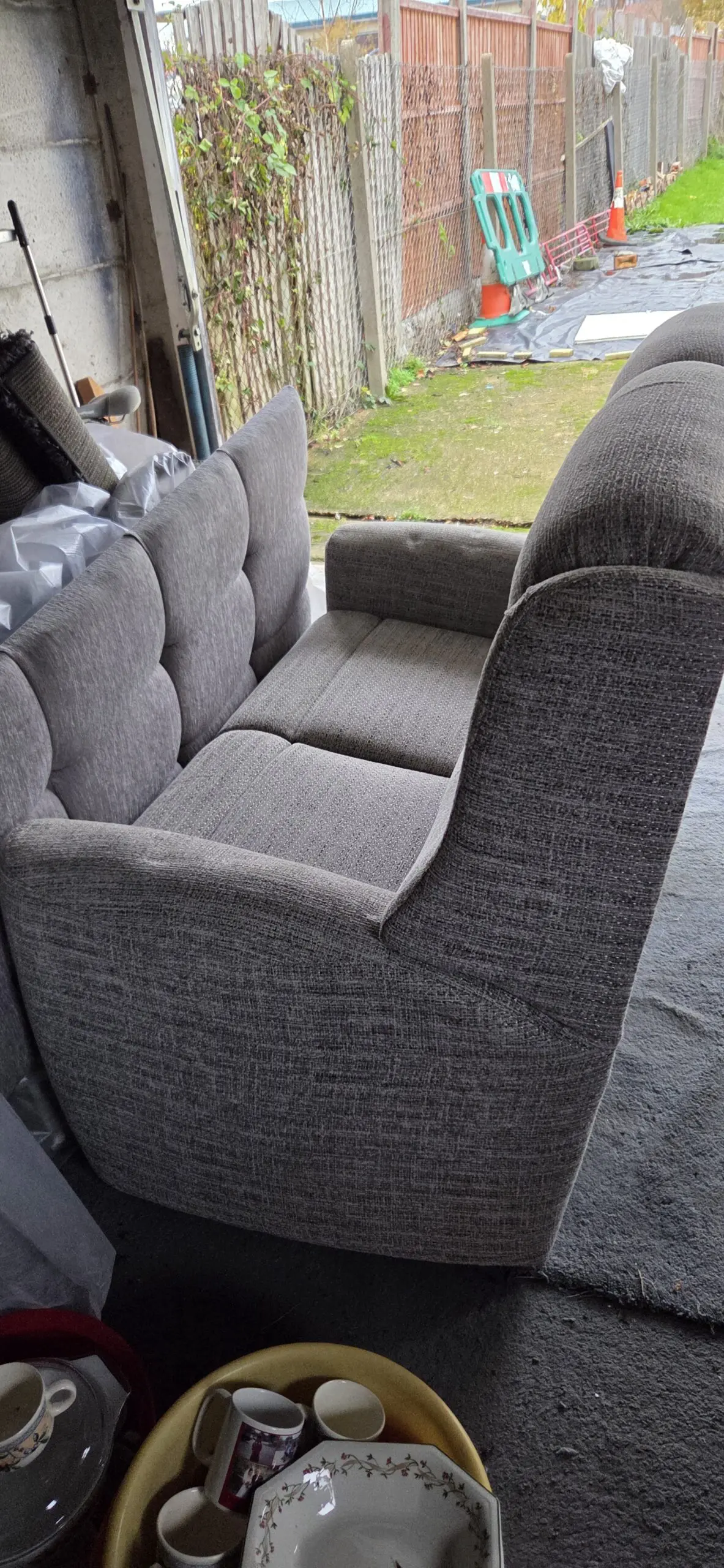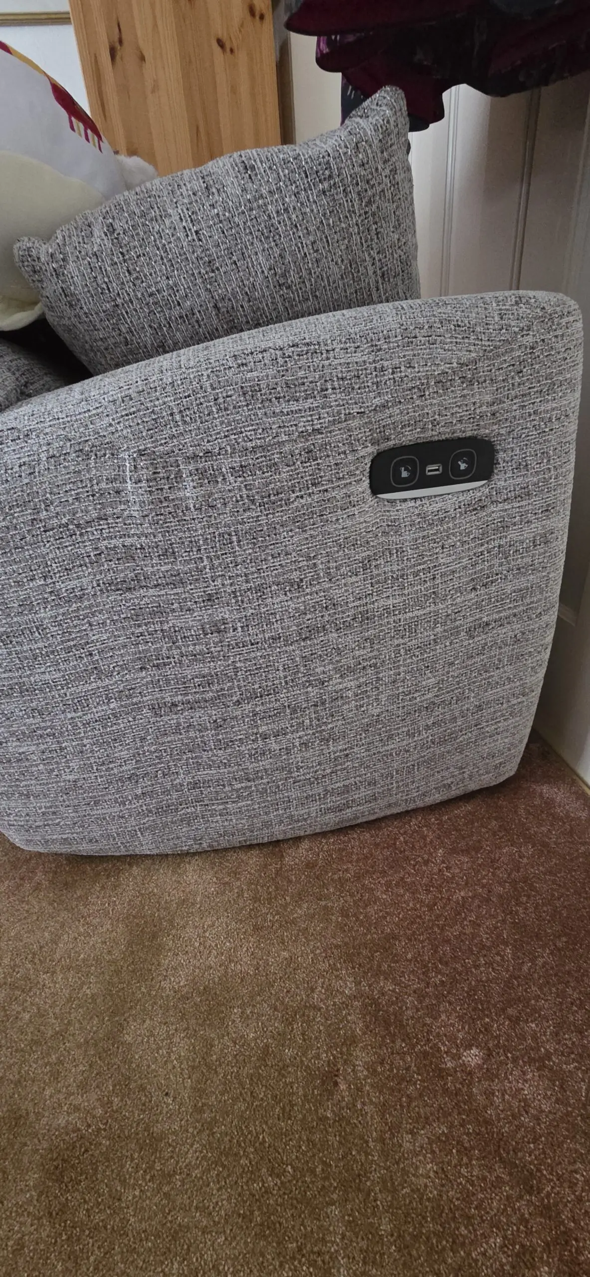 In as New fantastic condition The Celebrity Somersby Fixed 2 seater Chair and 1 seater electric fully recliner chair in matching grey is a traditional style furniture set perfect for any room, living room, lounge, or conservatory. Made in the United Kingdom, these chairs feature a plain grey colour with a Byron Cappucino upholstery fabric. The recliner chair adds a touch of comfort and relaxation to the set, making it ideal for lounging. With no additional parts or assembly required, this set is ready to be enjoyed straight out of the box.