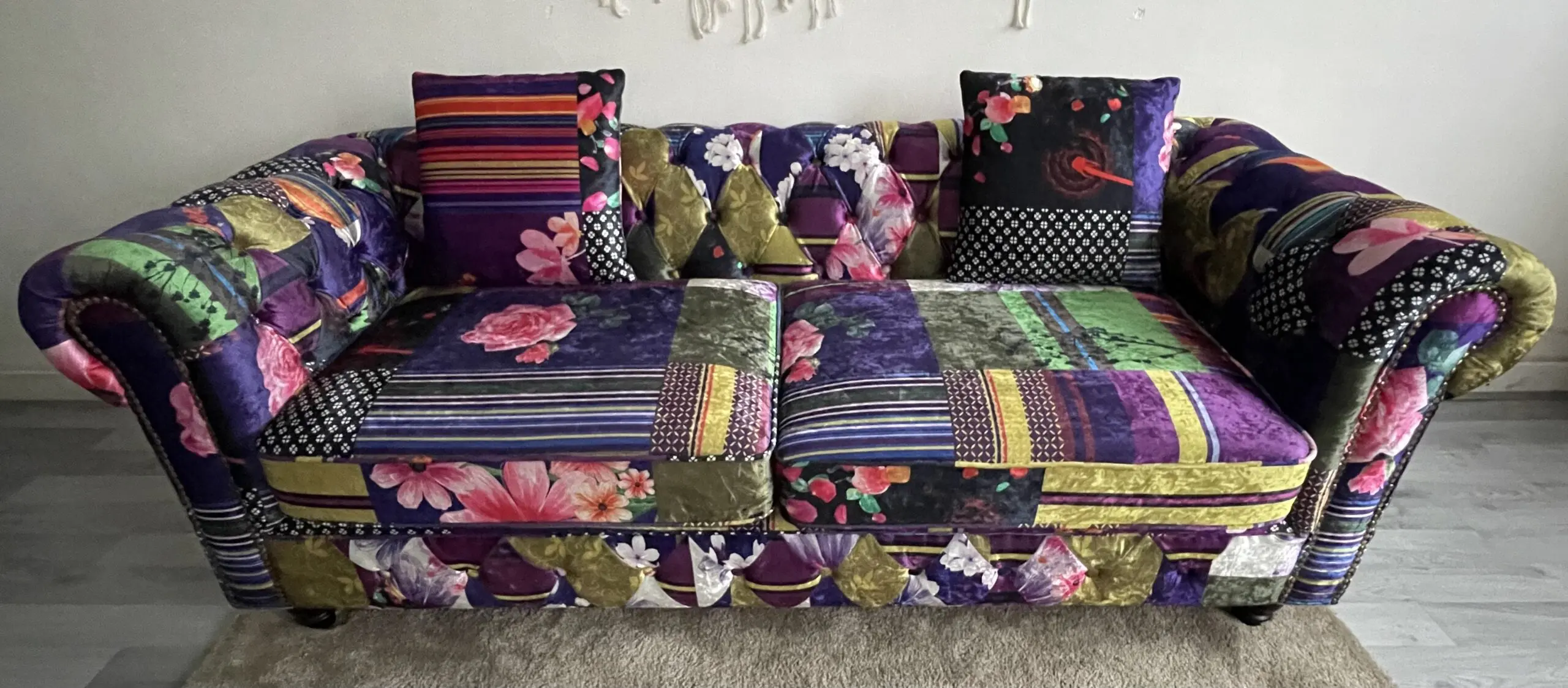 This brand new barely used patchwork 2 seater sofa was originally purchased from Wayfair in November 2025, so very recent. In great condition, pet free, smoke free home.