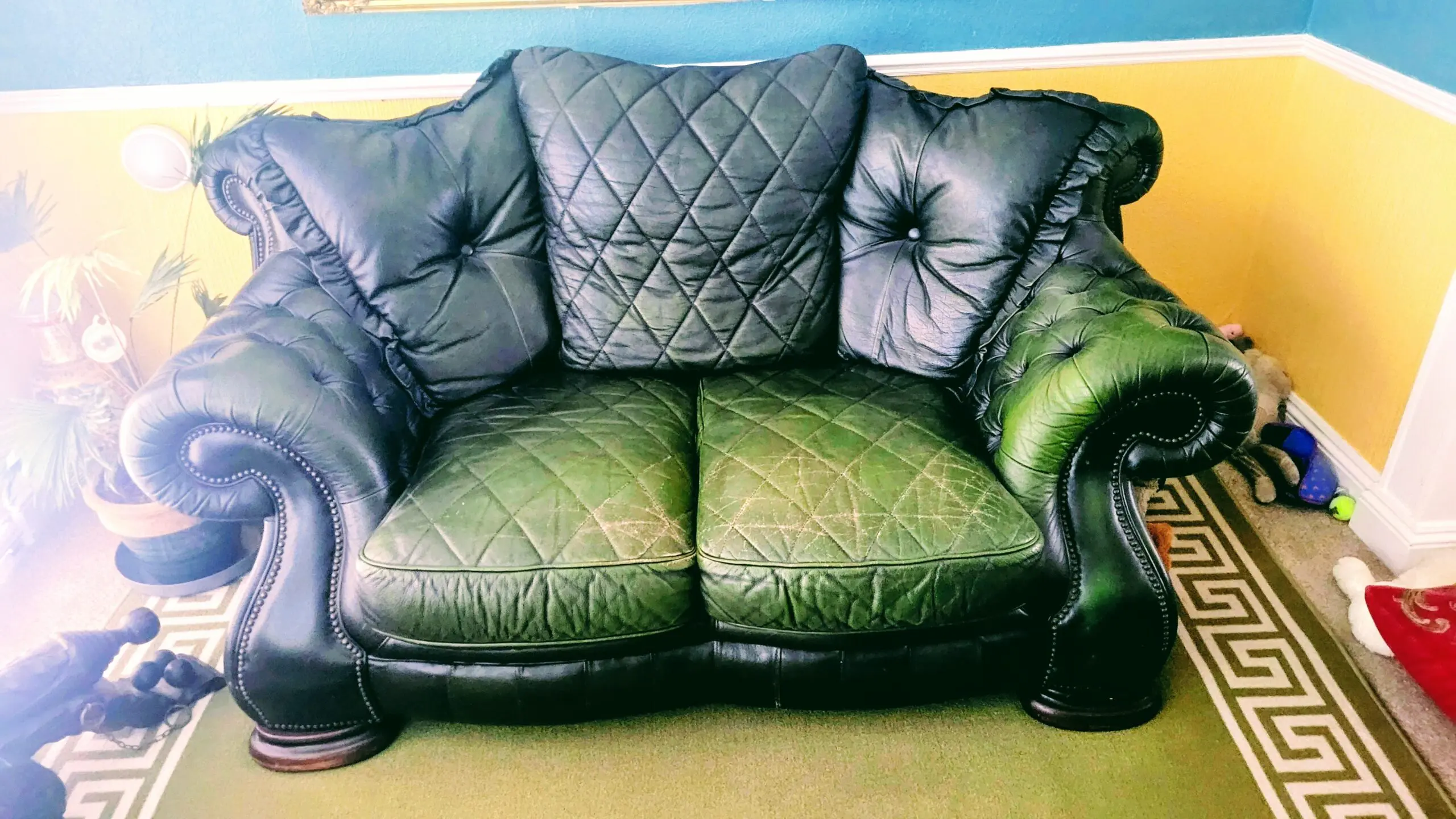 This striking 2-seater sofa combines classic Chesterfield styling with contemporary comfort features. The diamond quilted backrest and button-tufted arms create an eye-catching design that would make a real statement piece in any living room. Built with traditional rolled arms and decorative stud detailing, it offers both character and comfort for two people. Perfect for those looking to add a touch of vintage elegance to their home while maintaining modern comfort standards. Also comes with matching double footstool.