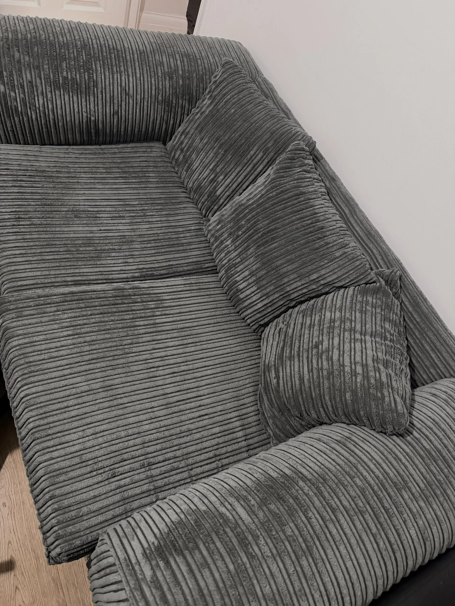 Grey fabric sofa in excellent condition, very clean and well maintained. Super comfortable with soft, supportive cushions and a modern, neutral design that suits most living rooms.