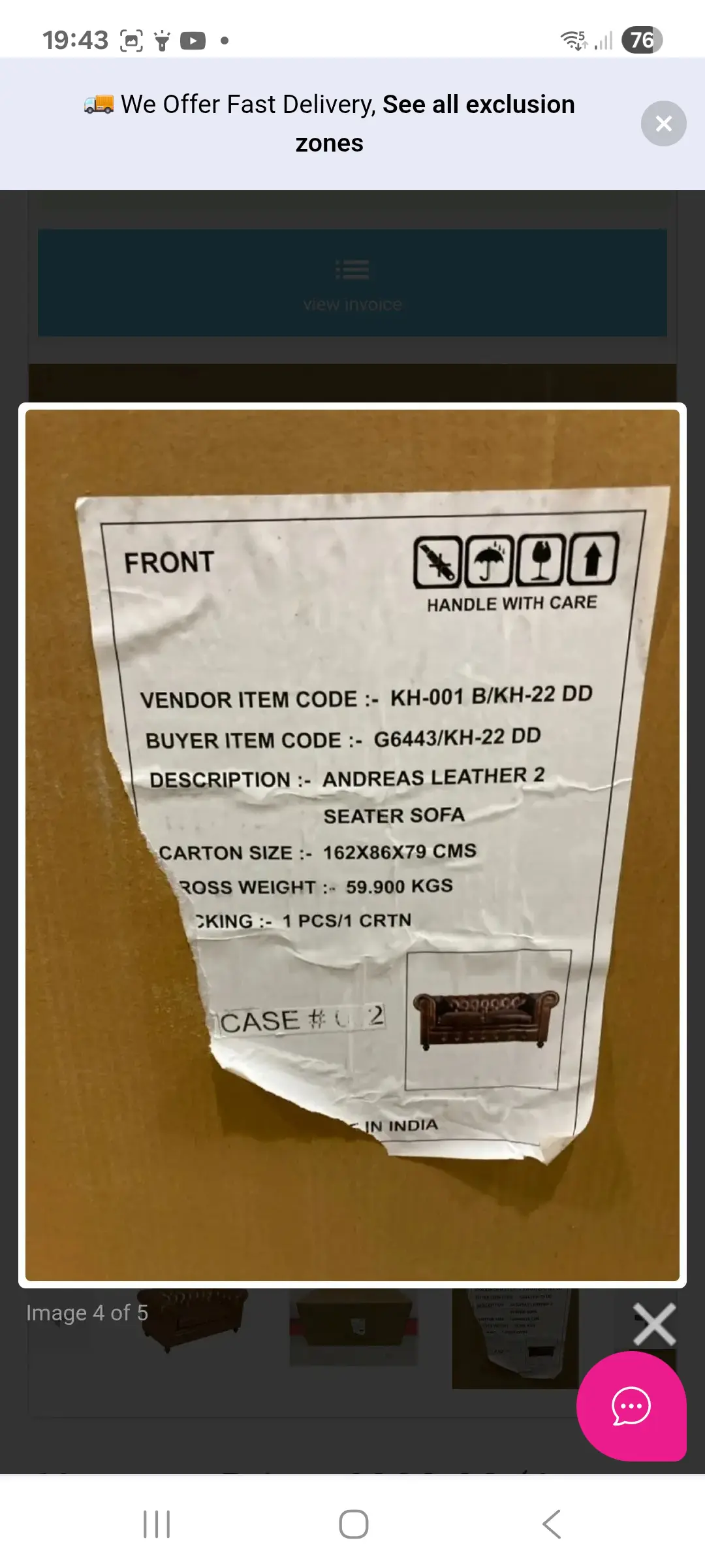 From start to finish this company was amazing. We were unsure about choosing online without trying first so took a chance. We are thrilled with our choice . Delivery was great was in touch with sofalistic all the way. They were fabulous thank you