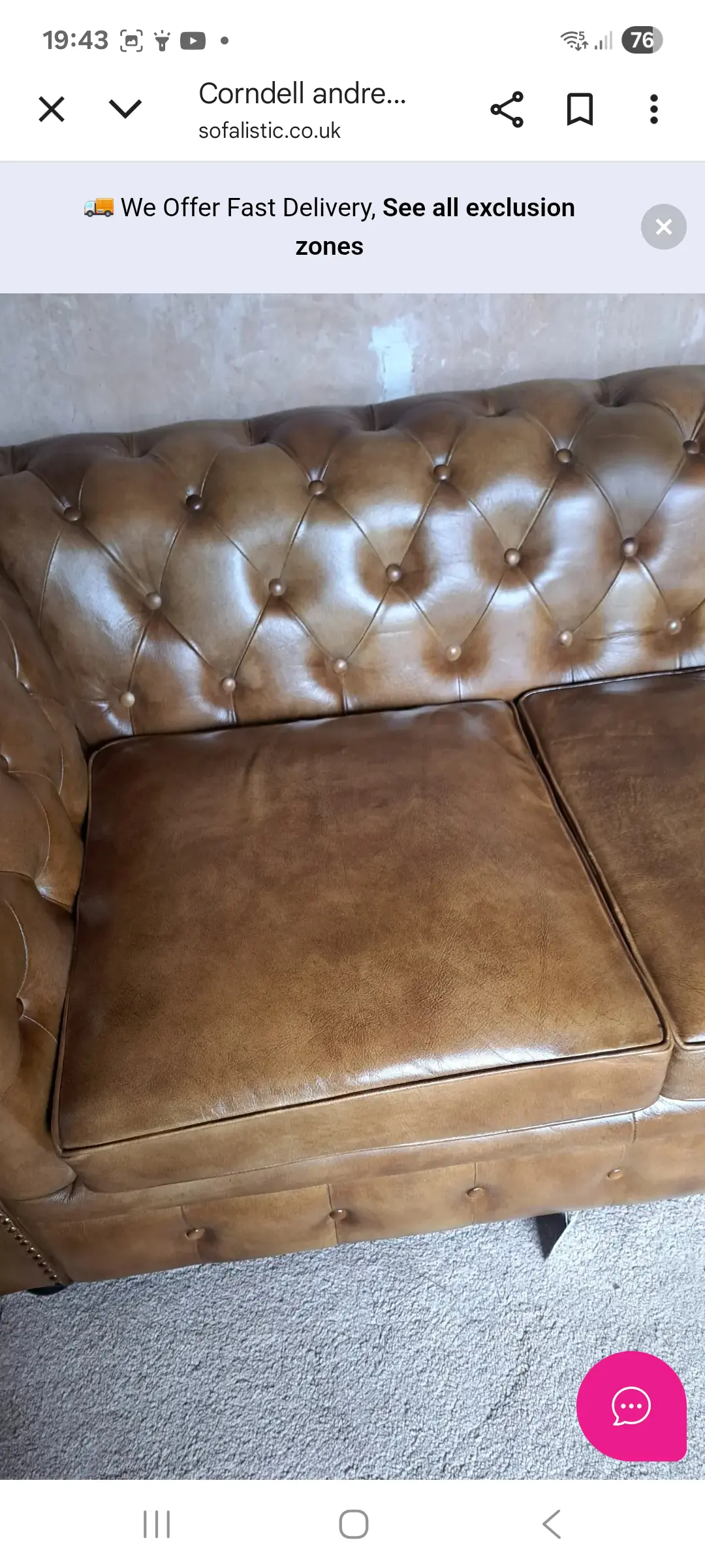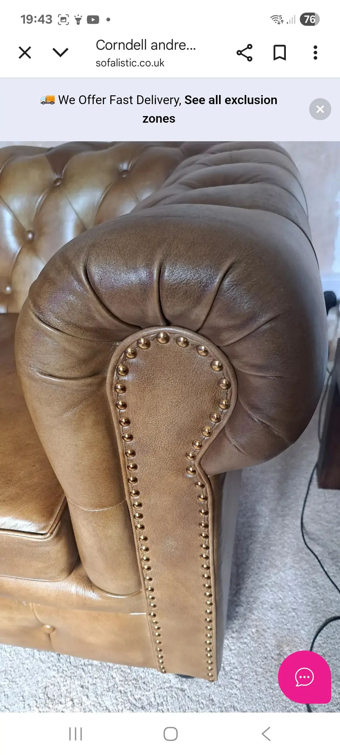 Just had my sofa delivered from Sofalistic. I was slightly nervous but it’s absolutely immaculate, delivery was great and even though it was quite difficult to get through the doors the guys did a great job. The whole experience has been very simple and I would definitely recommend.