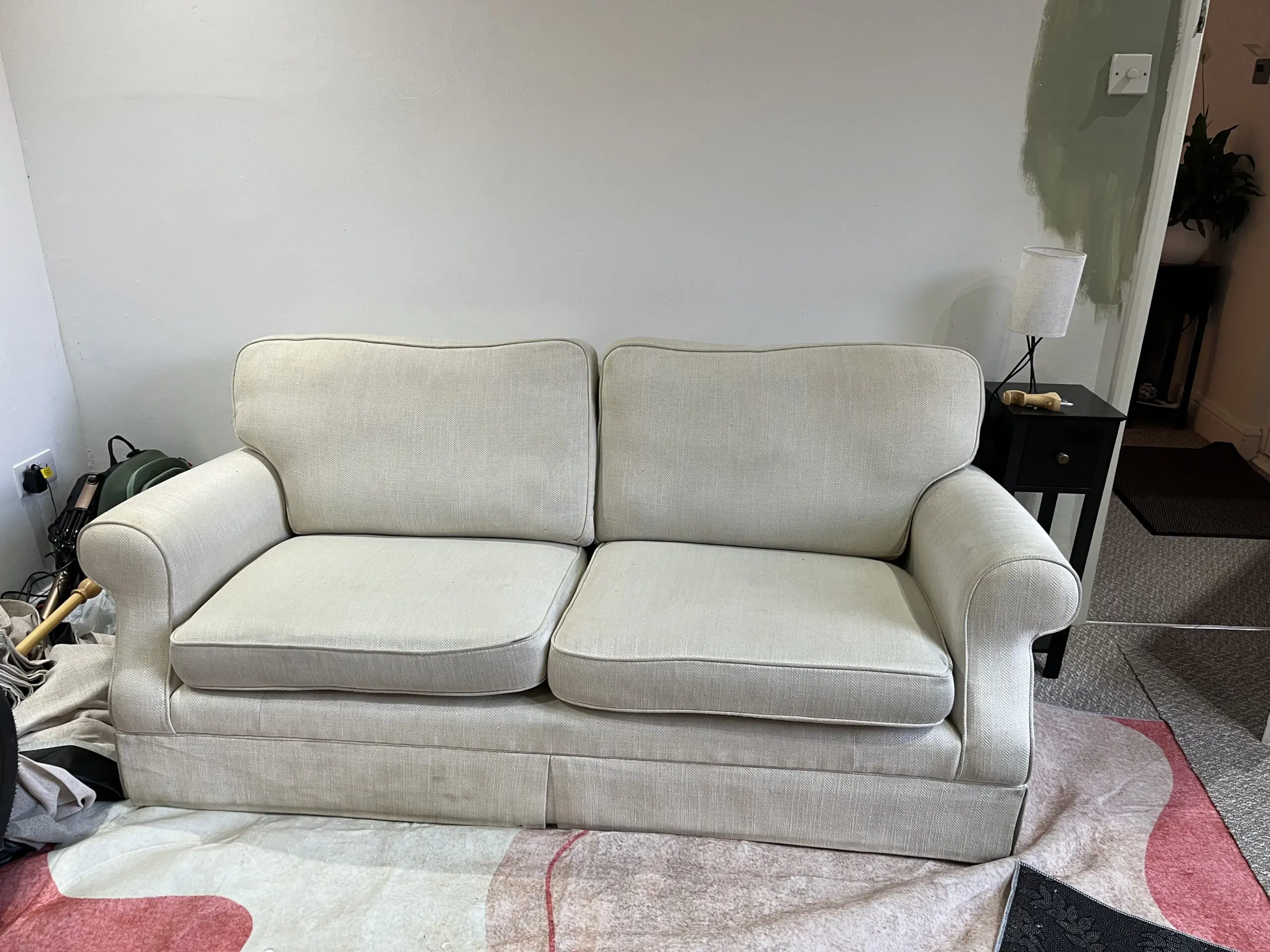 Structurally perfect. Some wear and tear discolouration as can be seen in the photos. A dry cleaning would remove this. No tears or damage to fabric