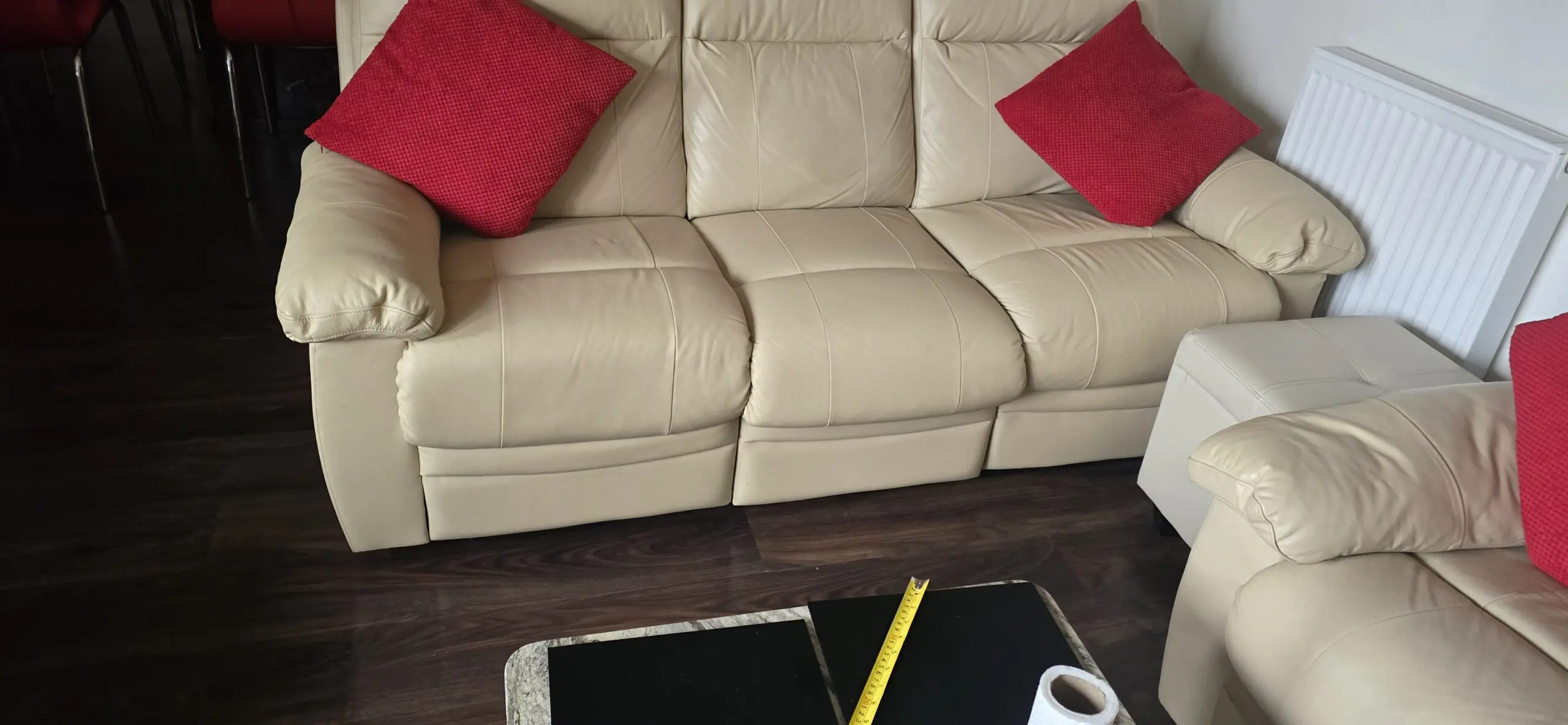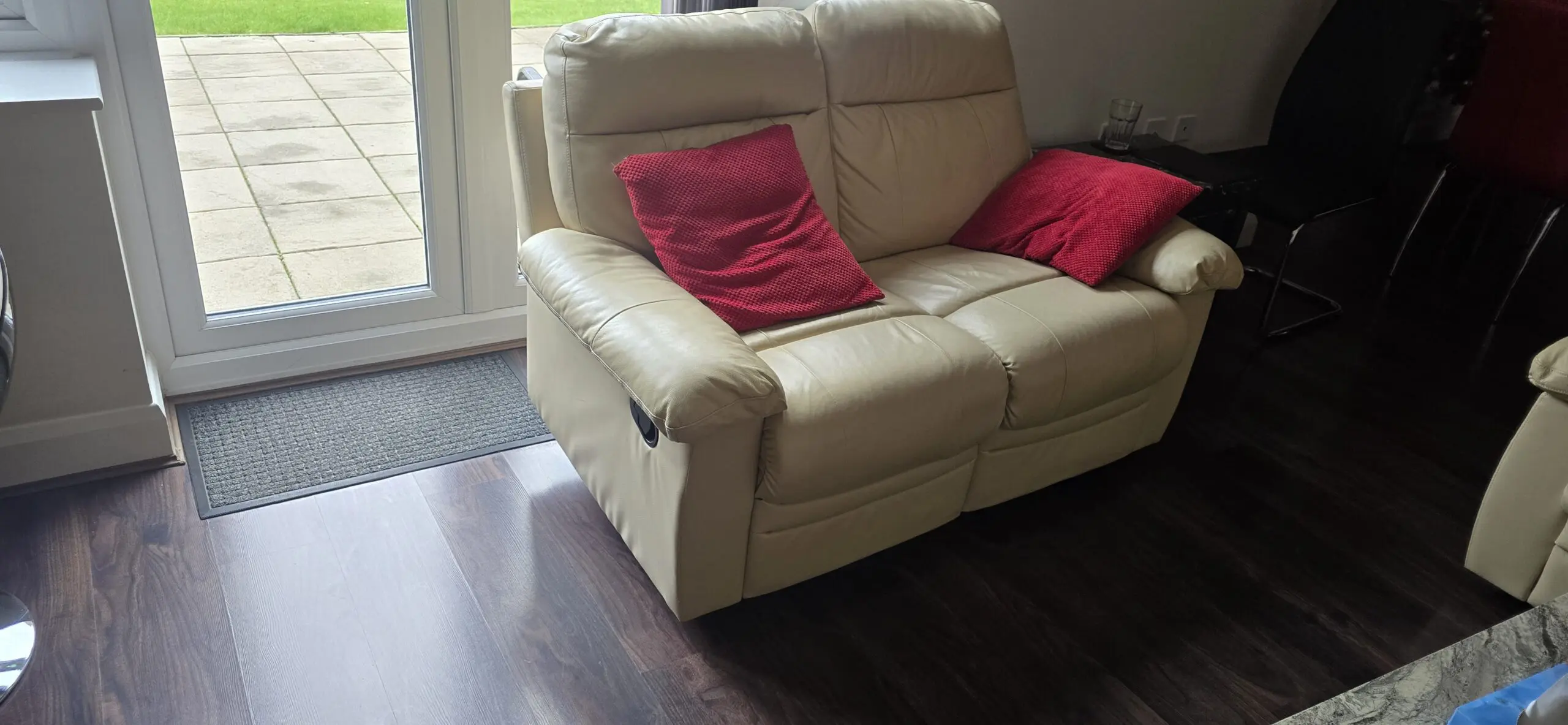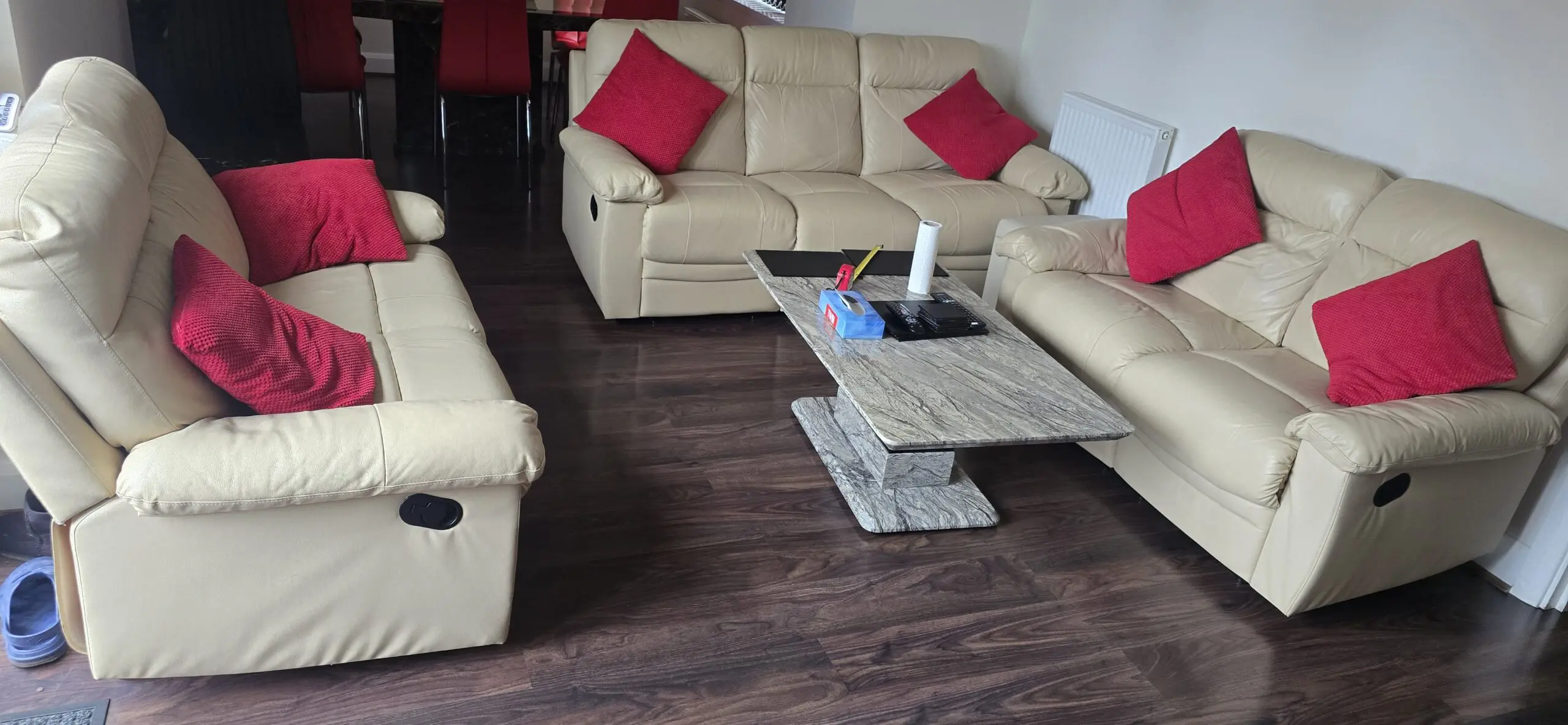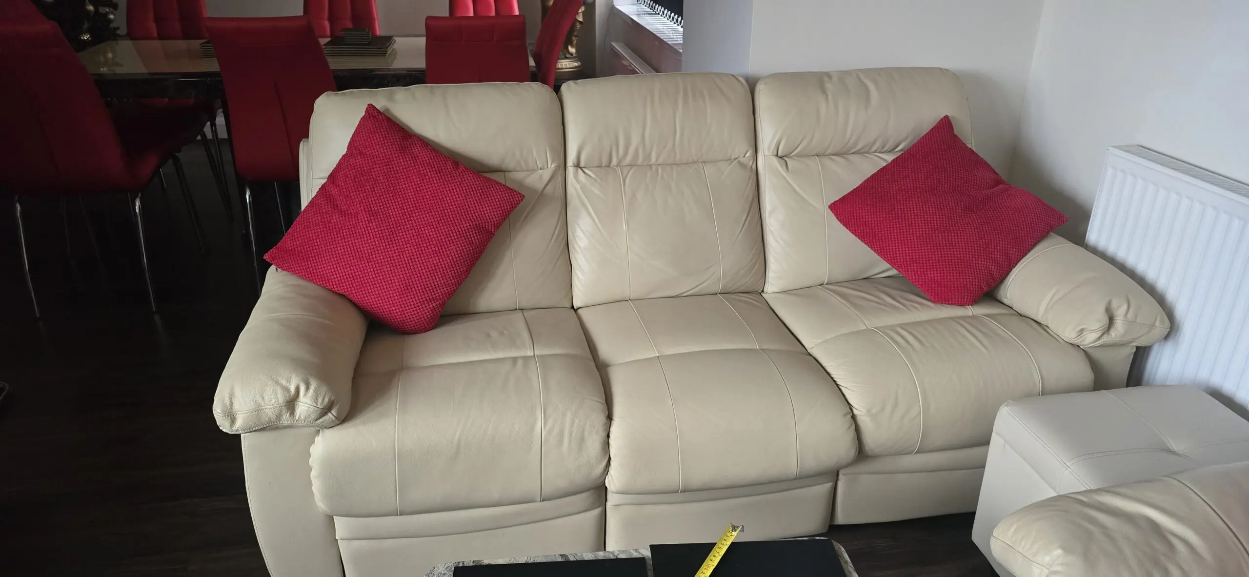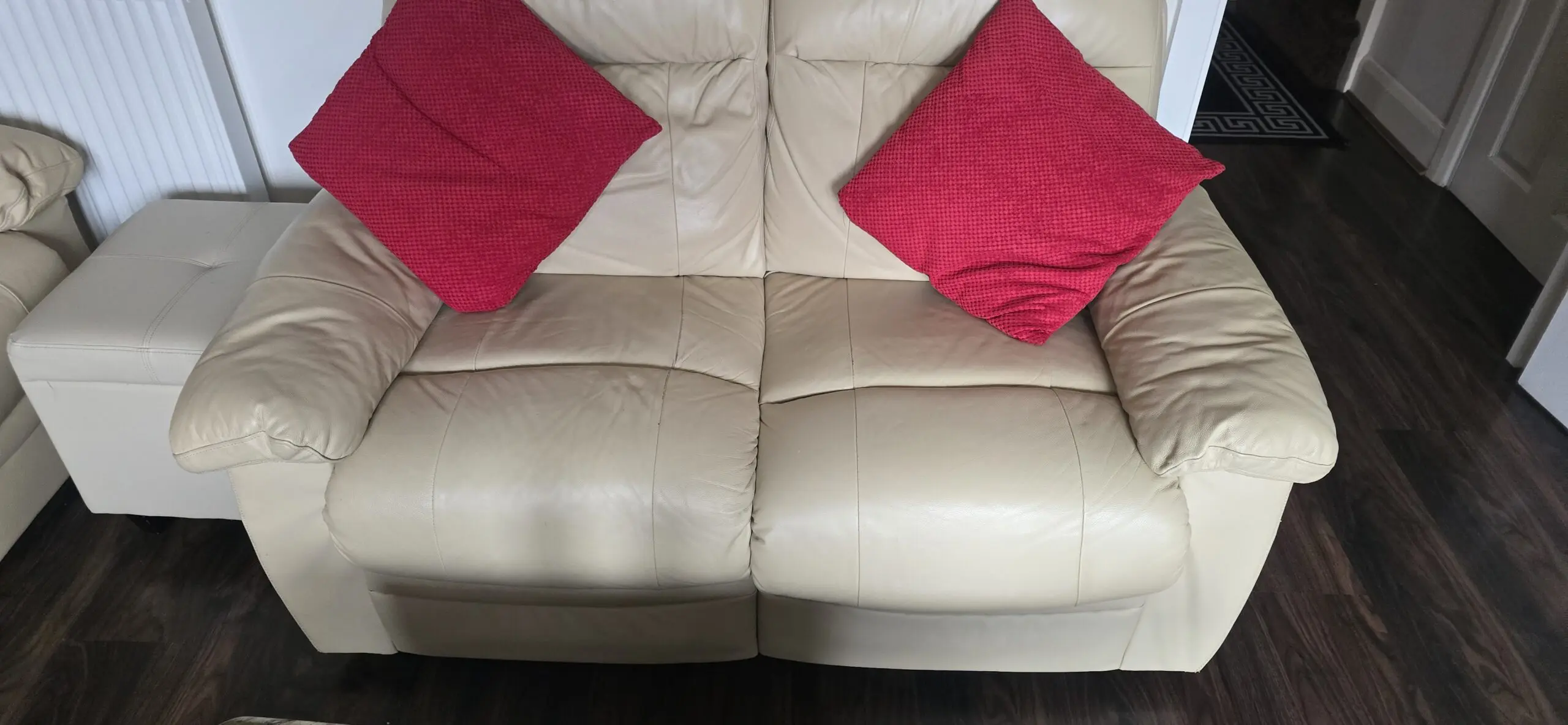 3 seated cream leather recliner and 2 x 2 seated recliners. Good condition.