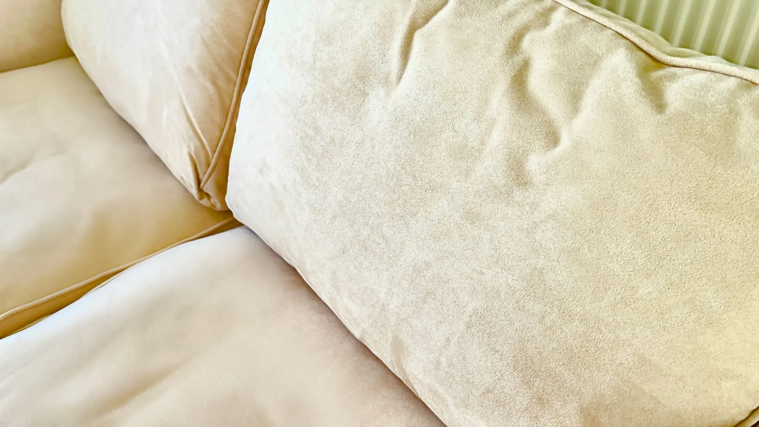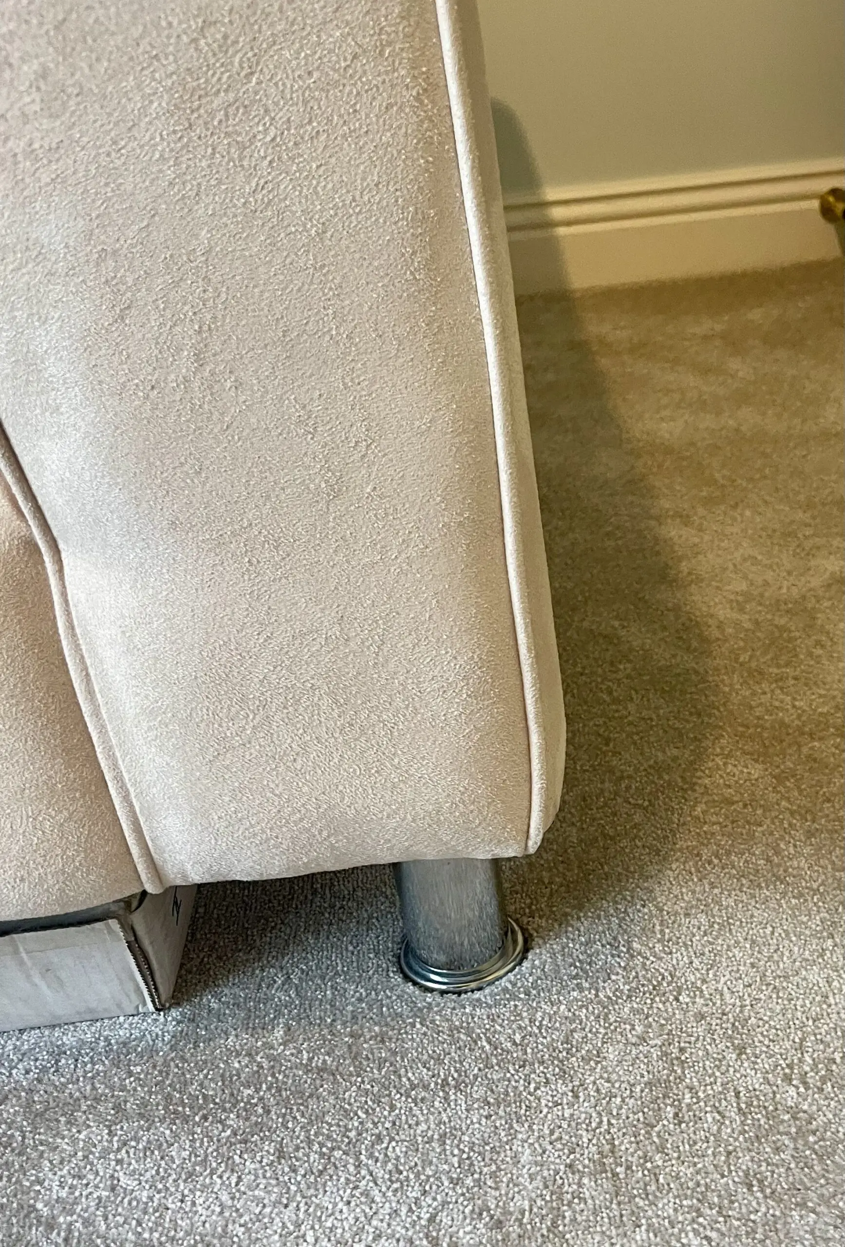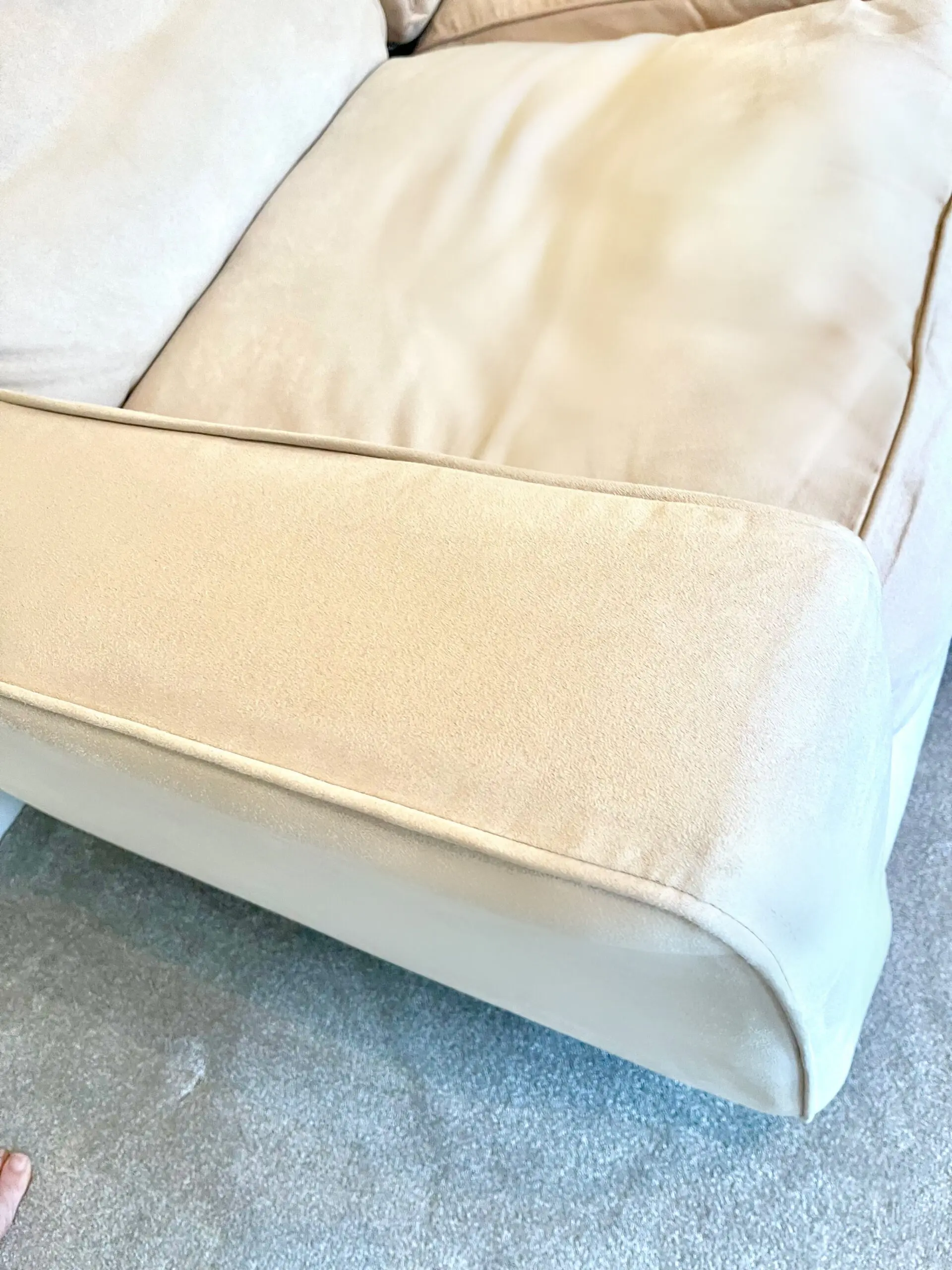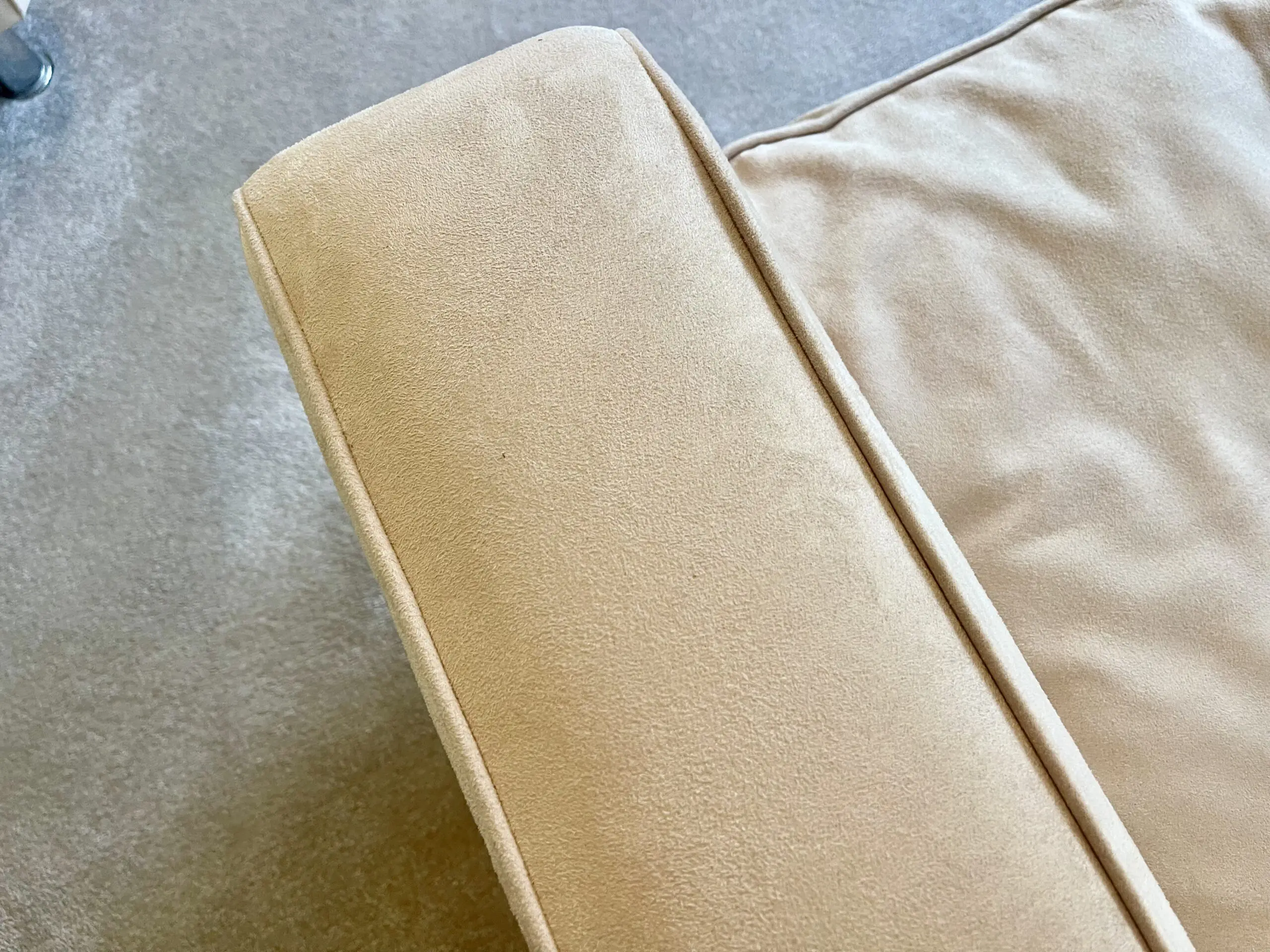 These gorgeous cream mock suede 2 seater sofas come with chrome legs. They were treated with scotsguard stain prevention and. as they are in a little used guest room, they have hardly been used at all.