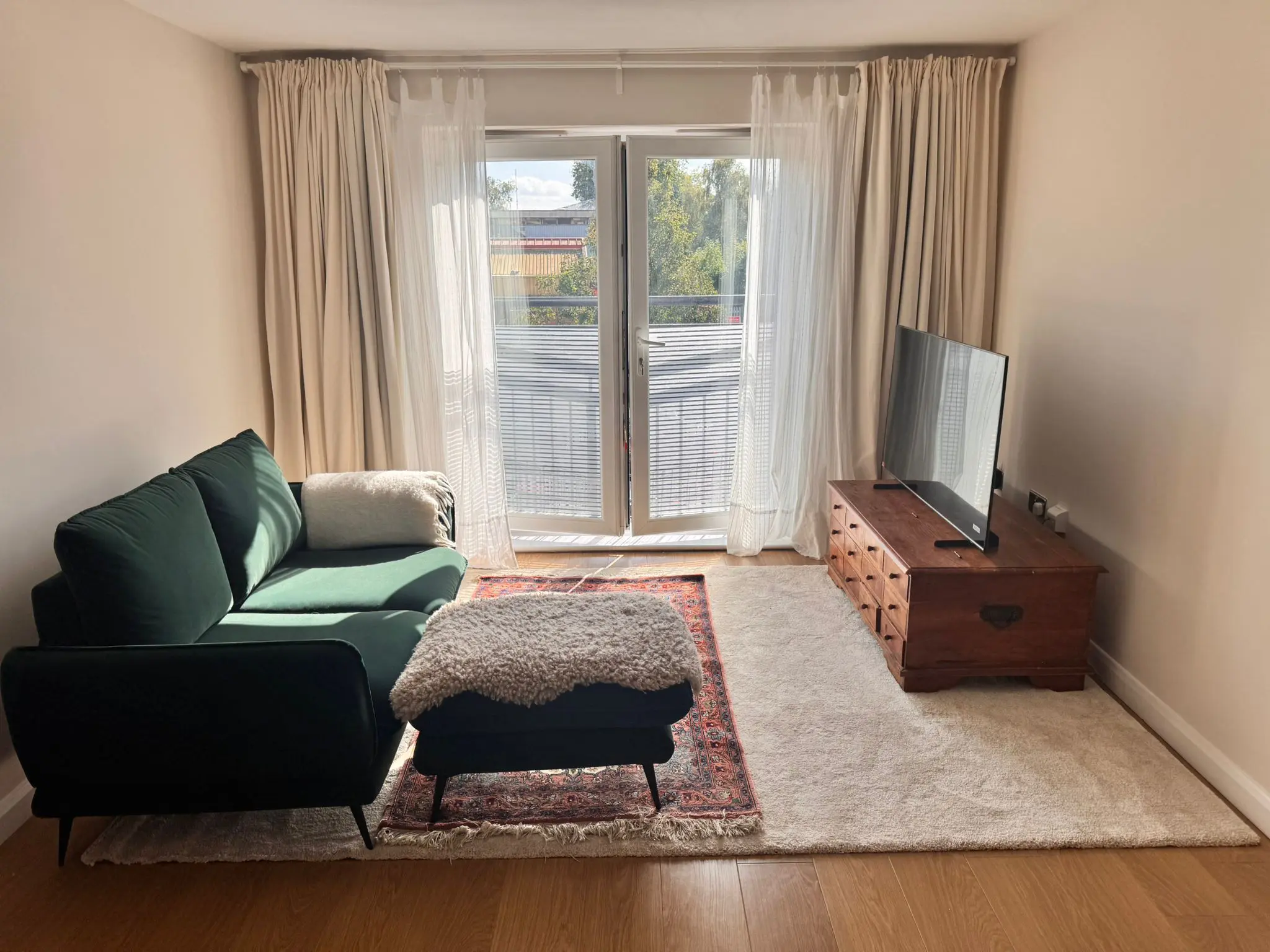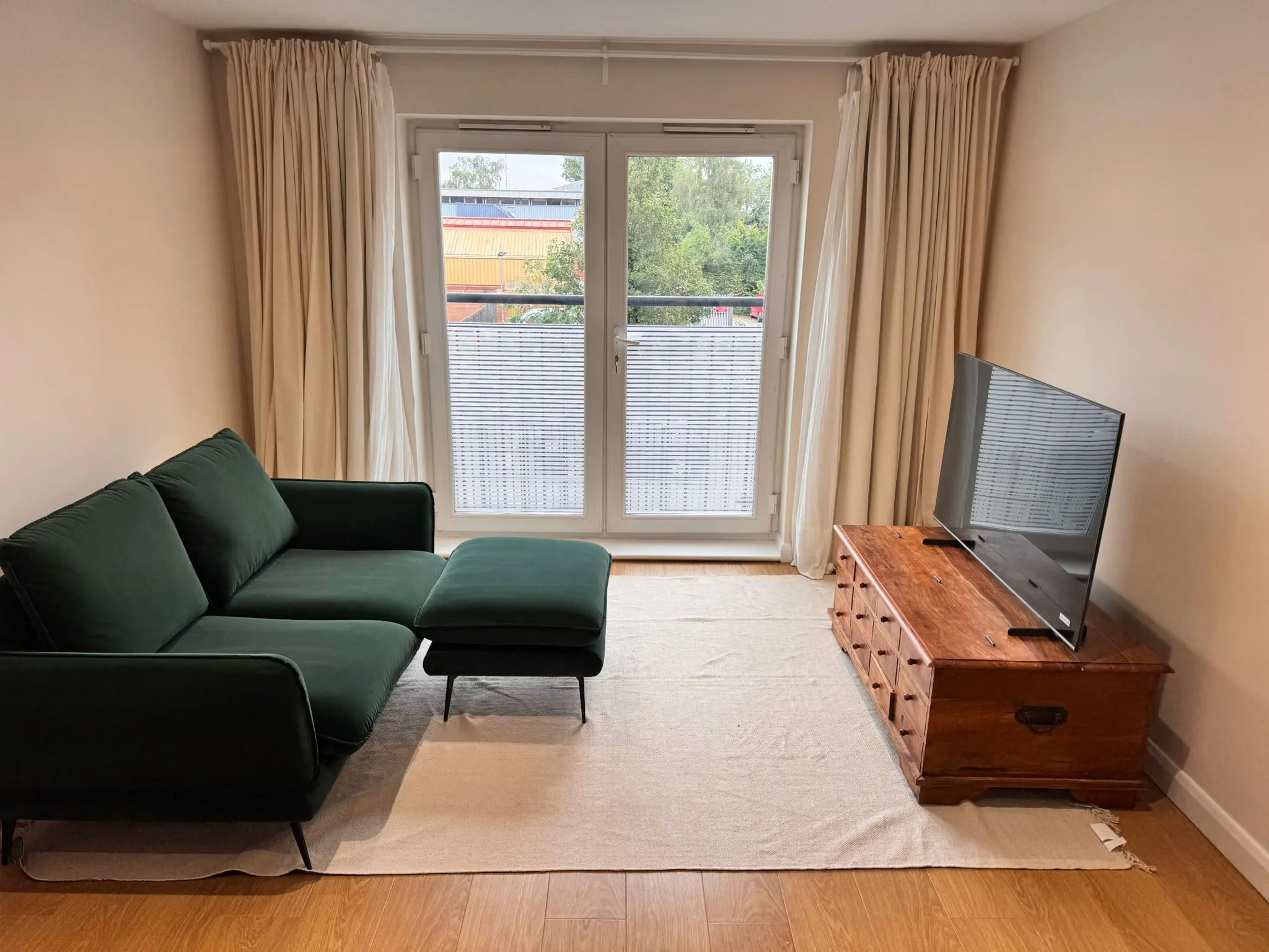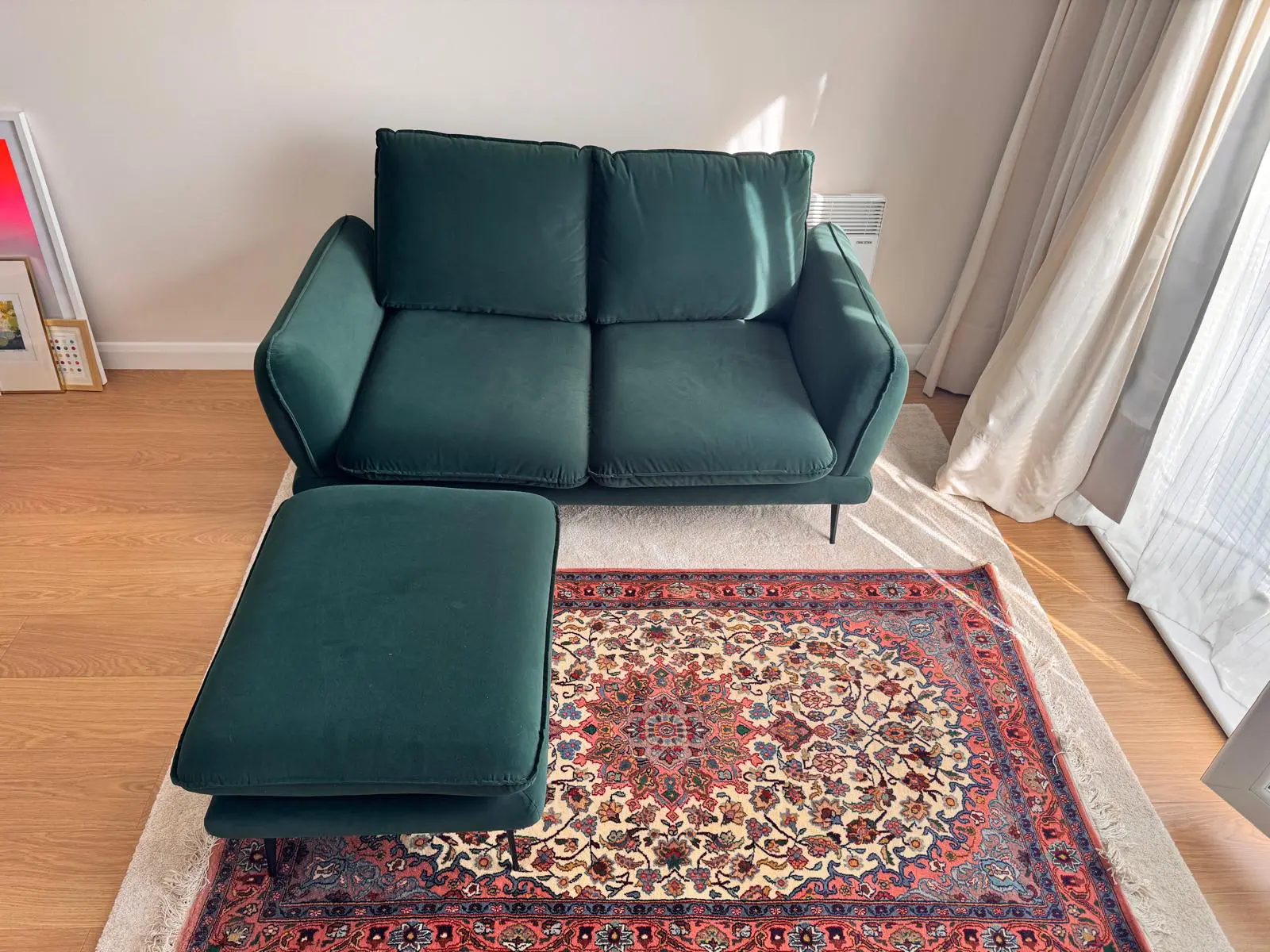 A beautiful modern and inviting Obriel Forest Green Velvet sofa. The cushions are plump and the frame sleek.
