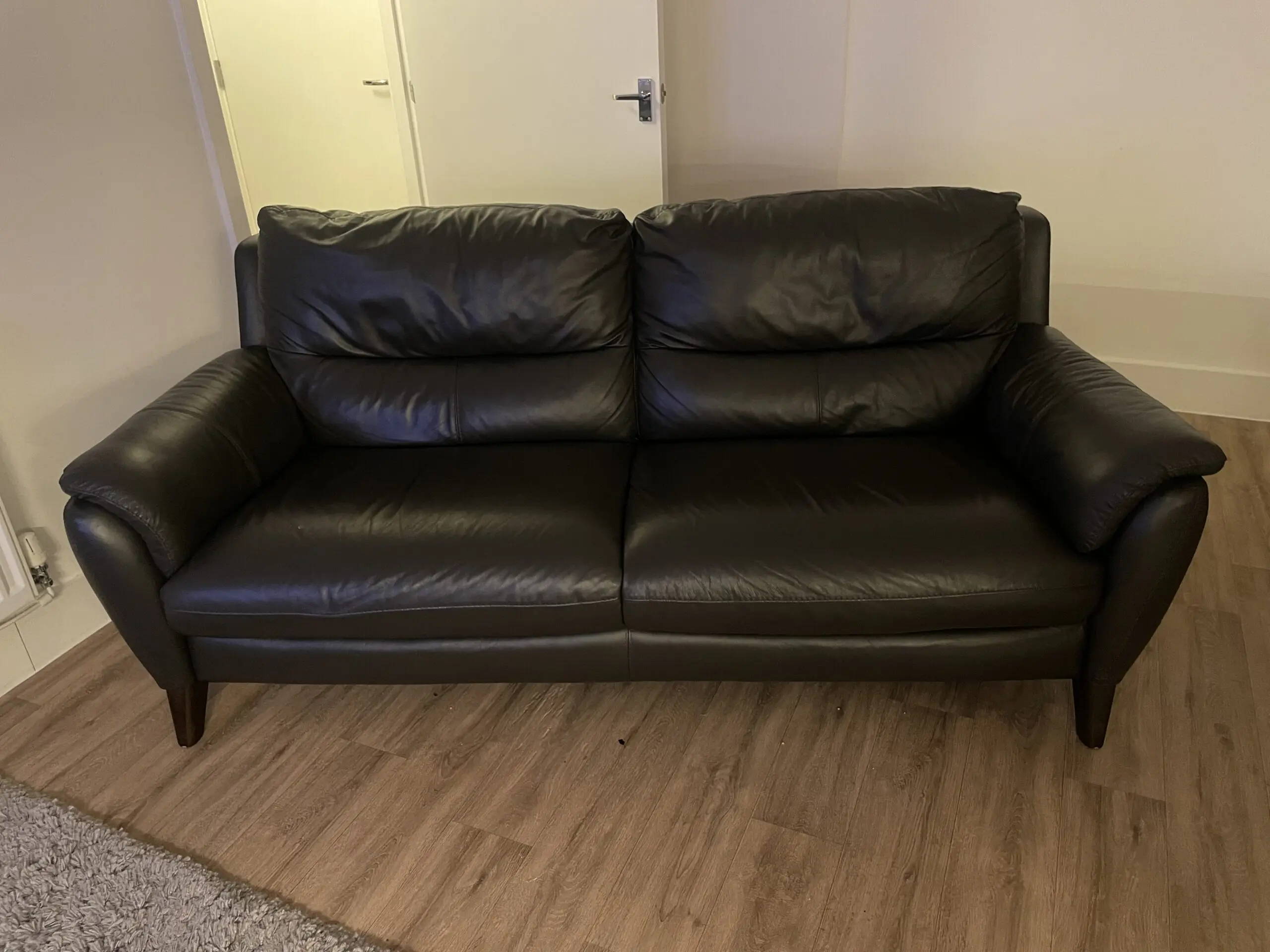 Good condition large 2 seater that can seat 3 adults. Sofa comes with leather cleansing set