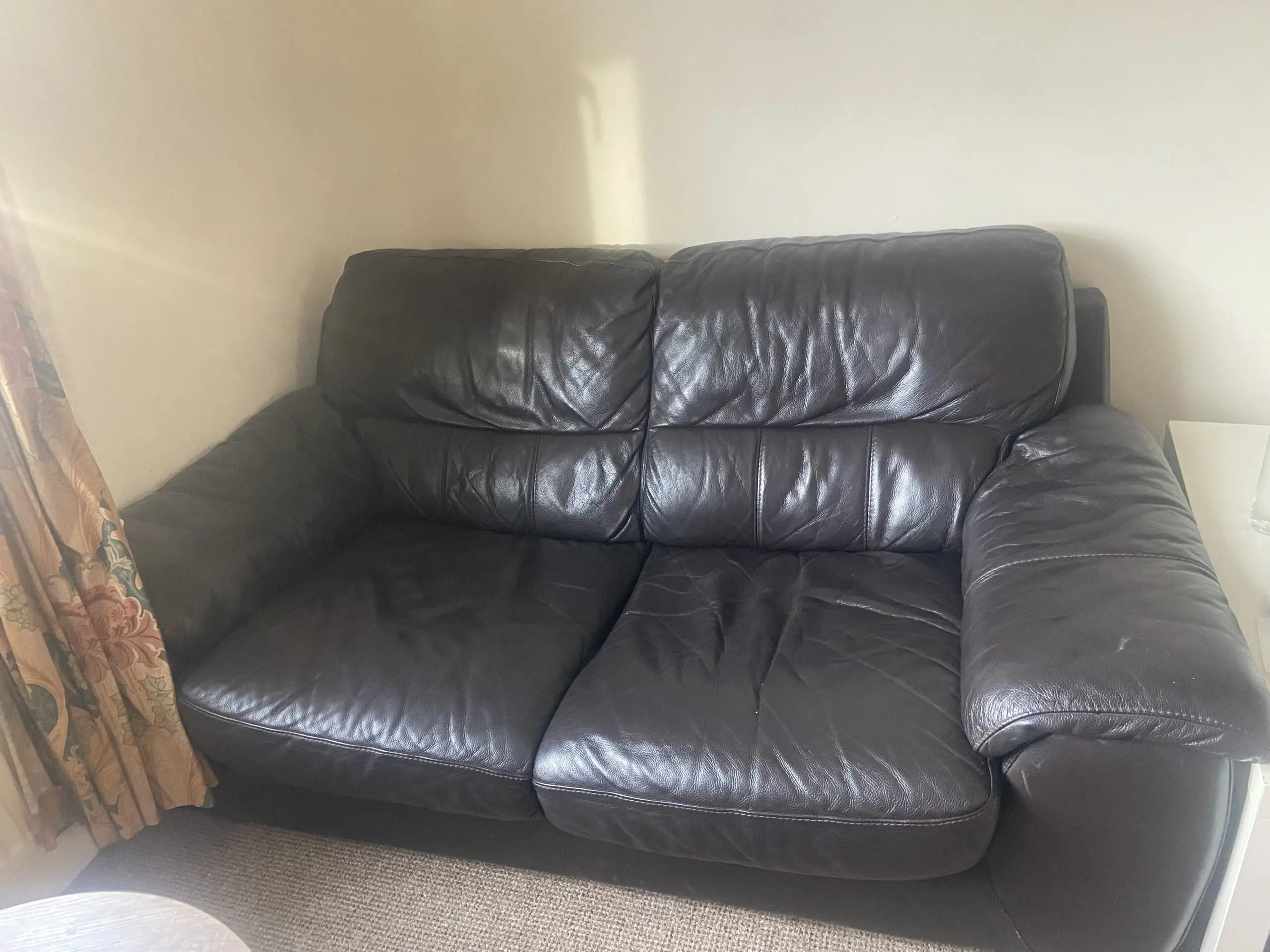 Comfortable and stylish dark brown genuine leather 2-seater sofa in good condition.