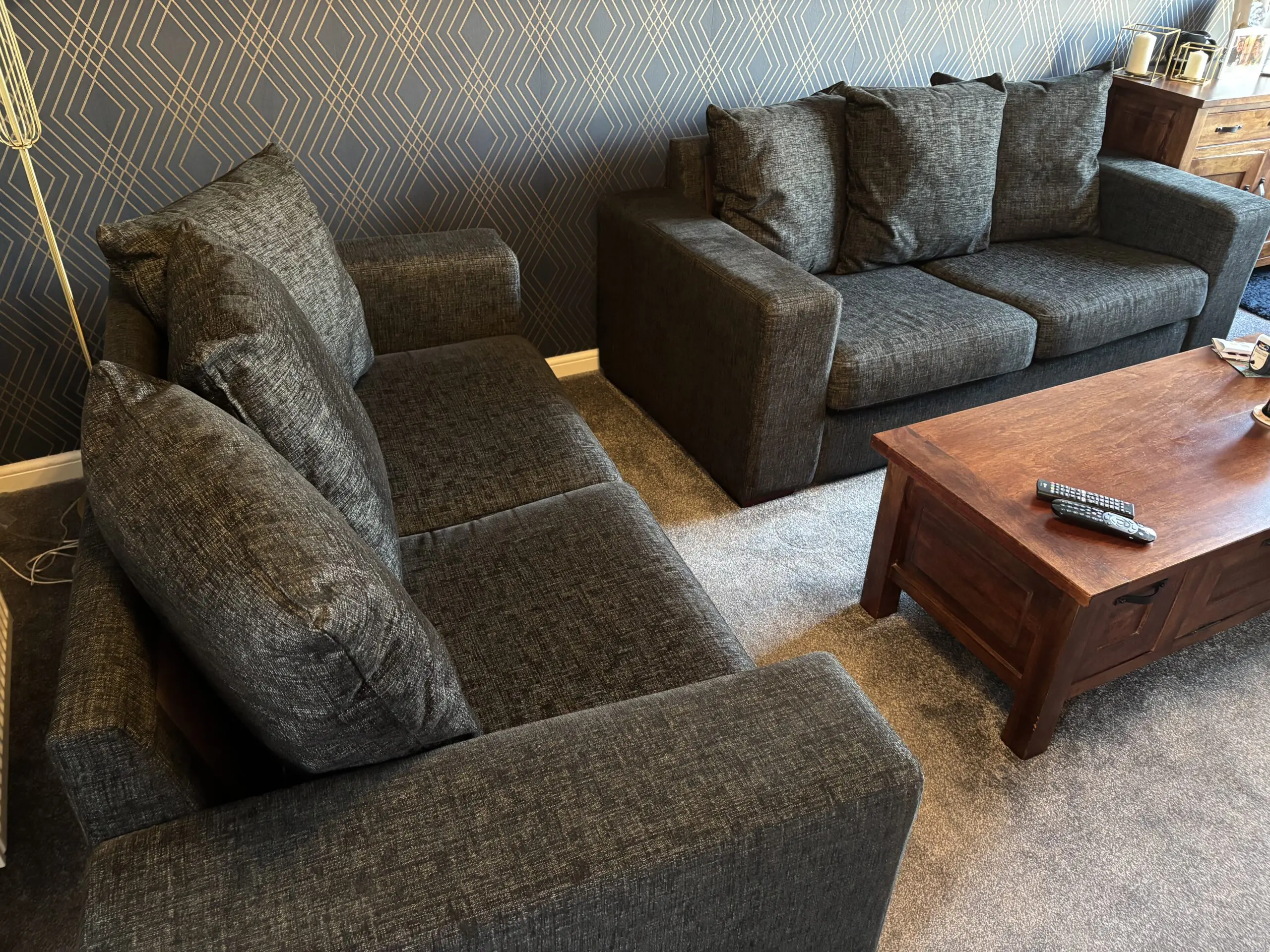 2 couches, very good condition, pillow back, dark wood feet, can be sold separately, available immediately.