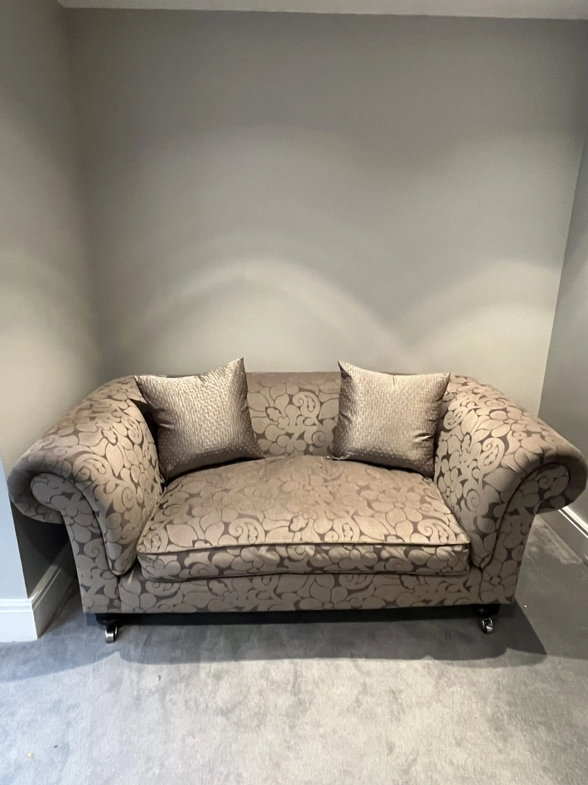 A stunning two seater chesterfield style sofa. Dark grey/charcoal. Excellent condition. Has been in a room which was not used at all. Selling due to downsizing. Been in a home with no pets and no smoking. This is a stunning piece of furniture with no defects at all.
