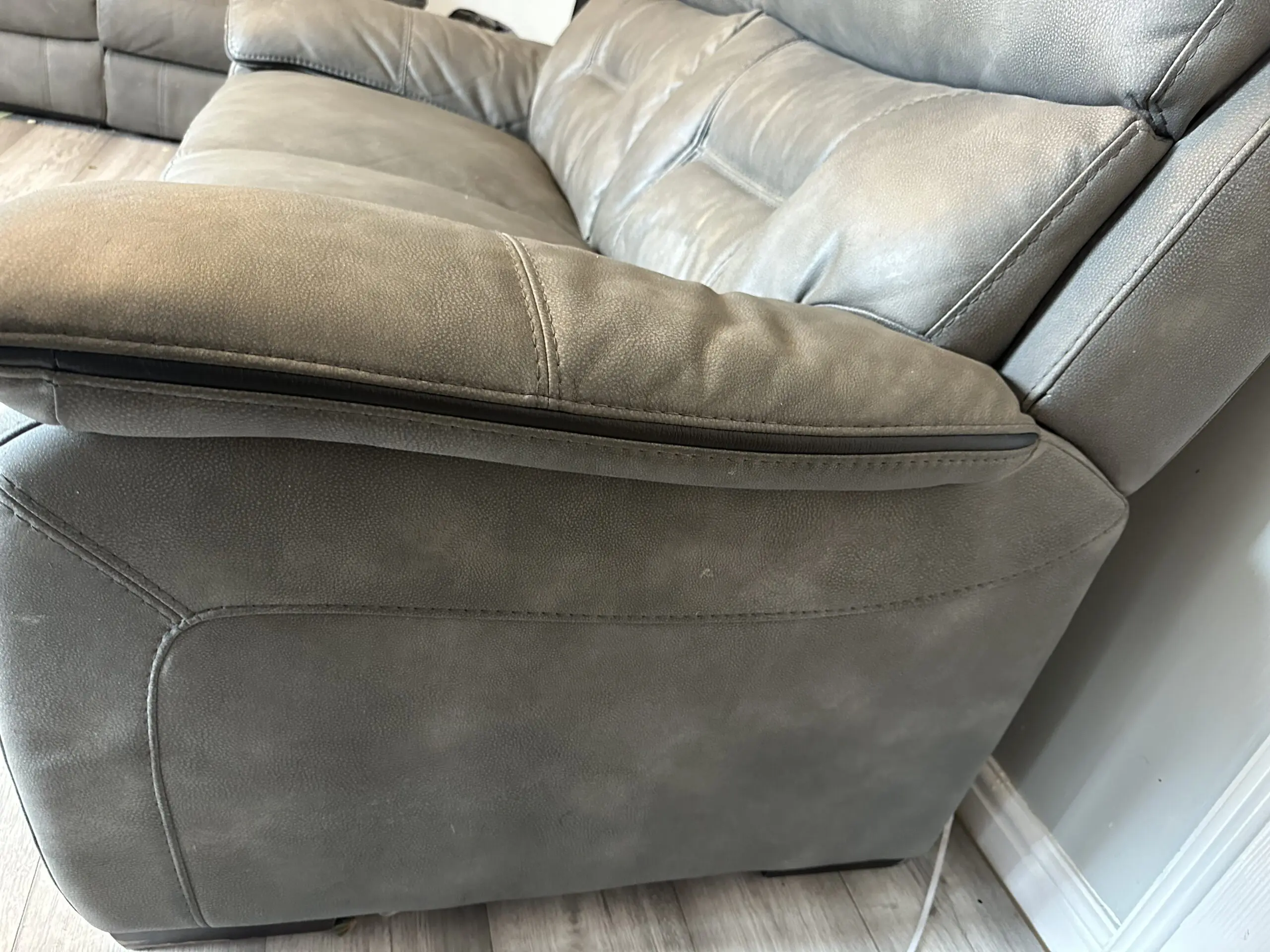 Few marks on the little feet of the sofa but not noticeable. There is a slight purple pen line on the couch. Nothing wrong it as barley been sat in since having it