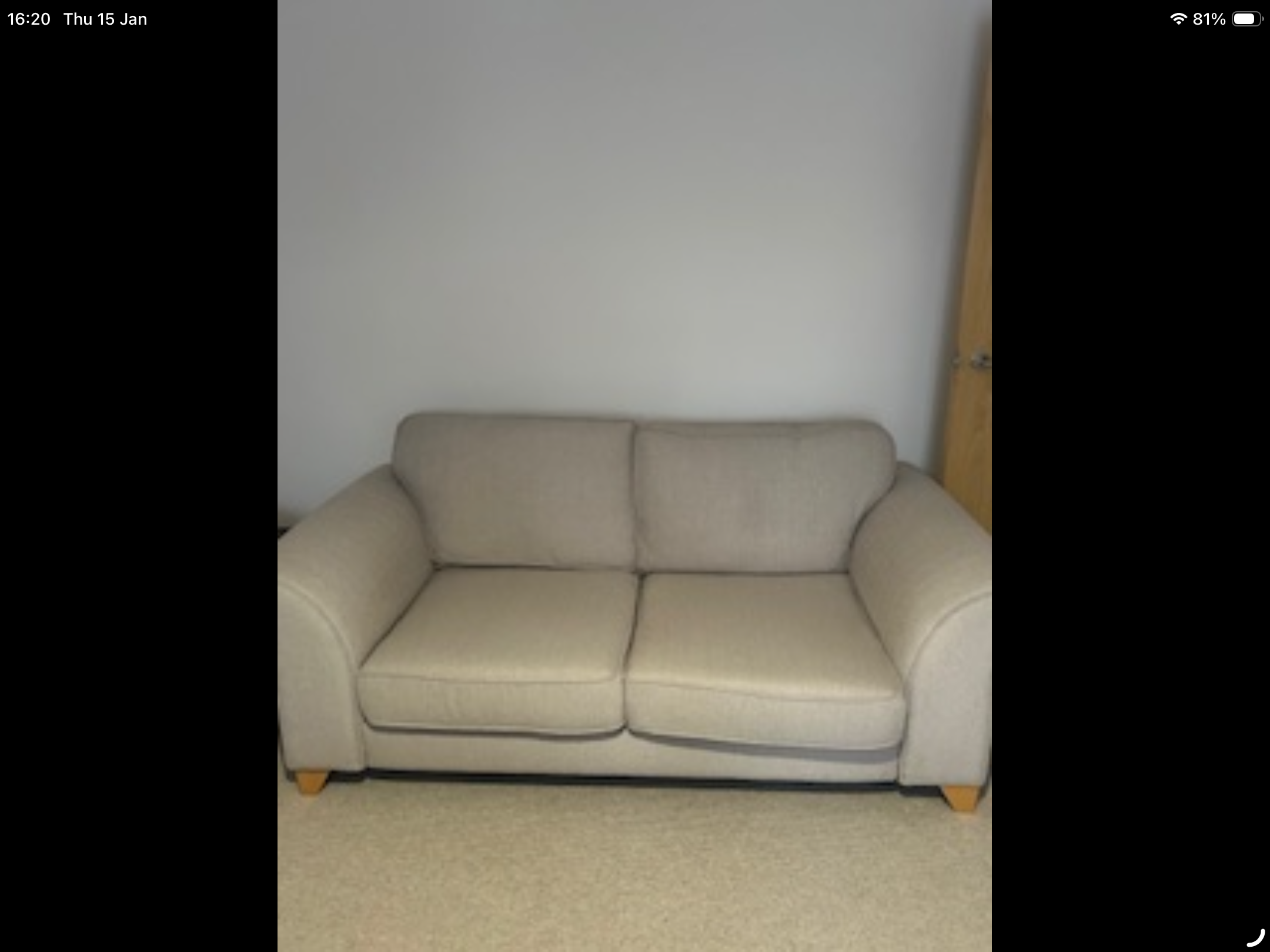 The sofa and chair I bought was as described by the seller - excellent condition. Delivery was quickly arranged and without any incidents. I was kept well informed of the delivery time on the day. Highly recommended.